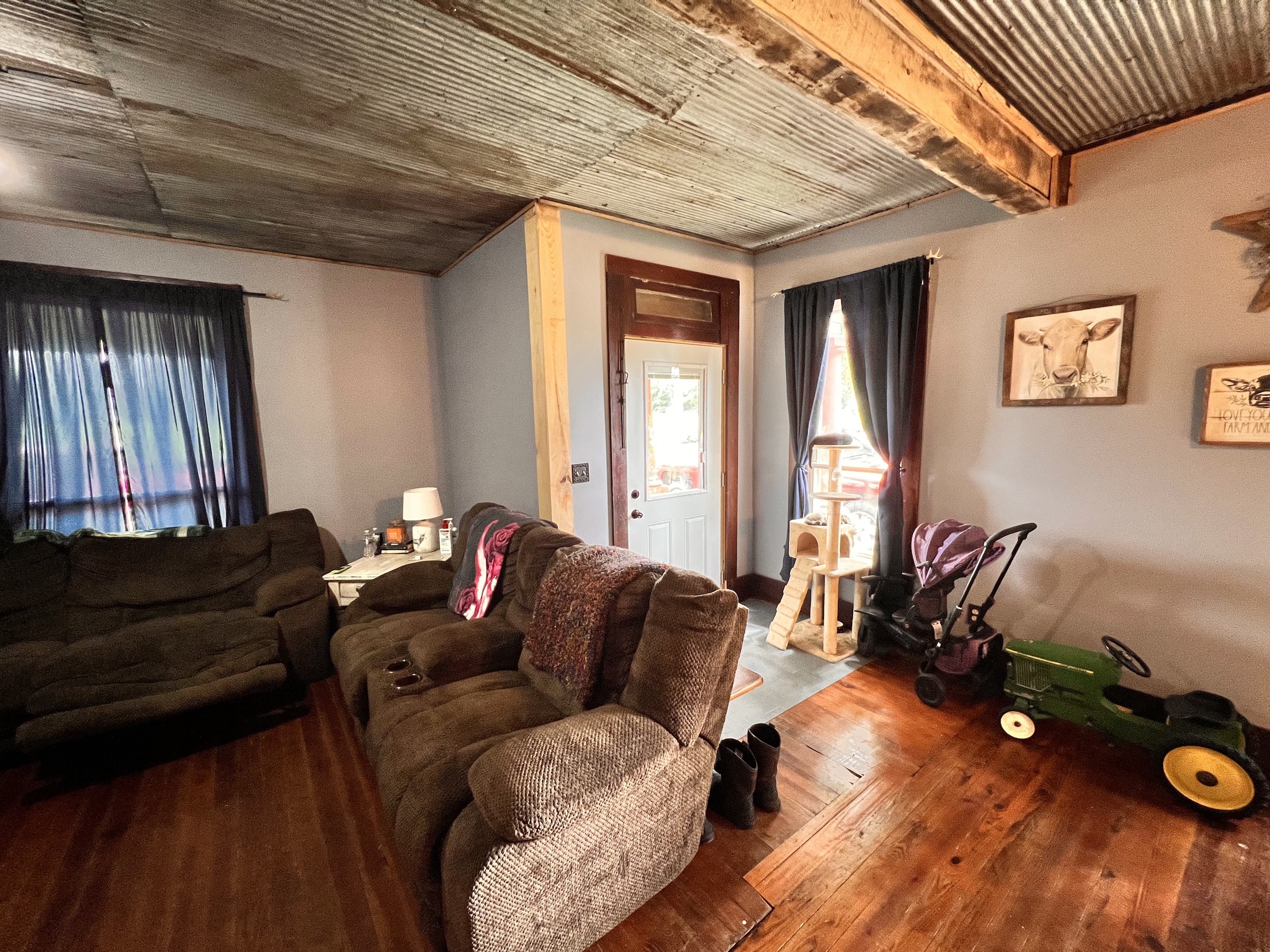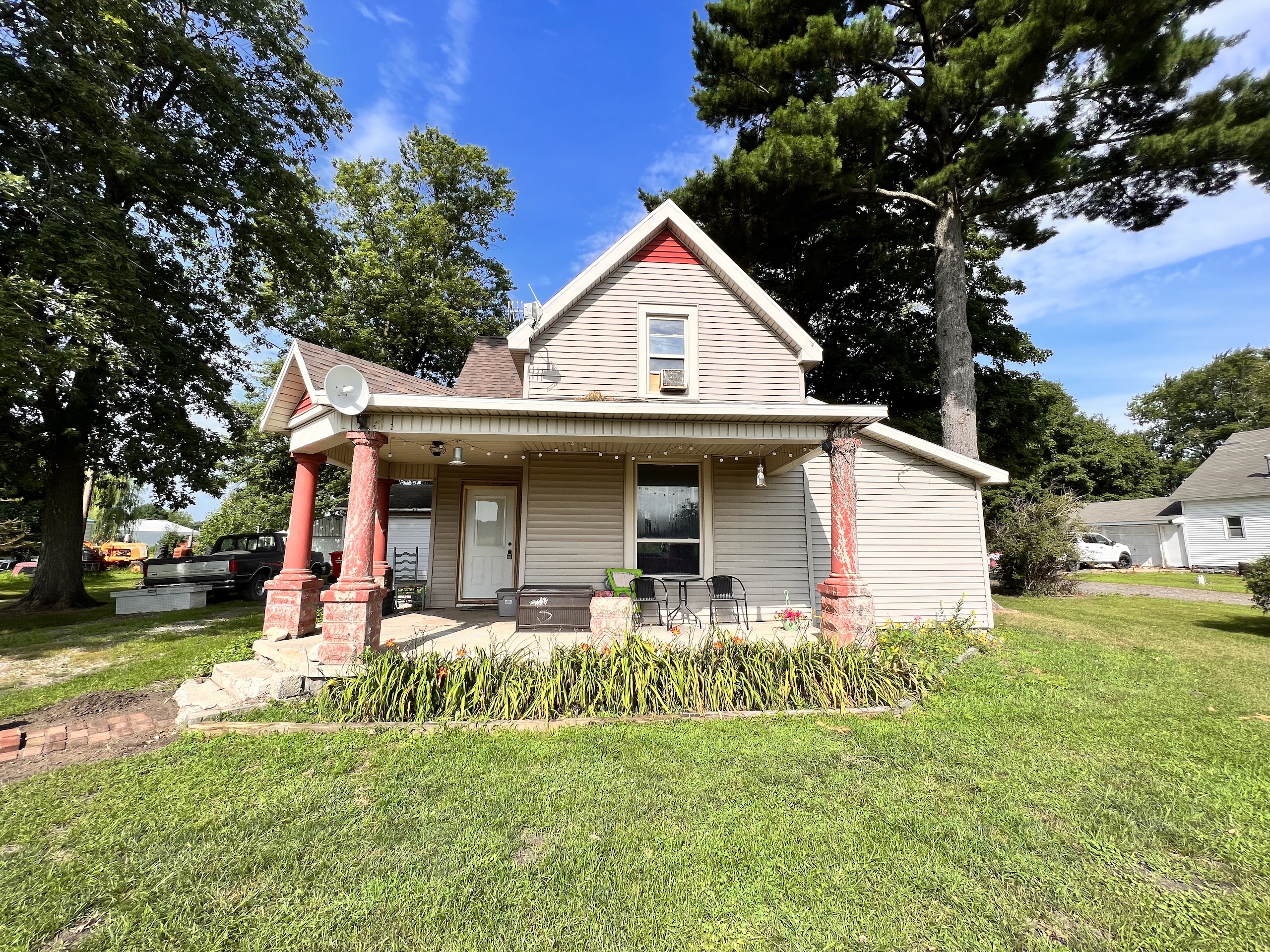 Listed for sale is a home located on the north side of the small town of Star City. This home features 1717 sq. ft. of living space that has 4 bedrooms, 1 and a half bathrooms, and an open concept living and dining area. Step in the front door and admire the original hardwood flooring as well as the rustic feel this home offers. As you walk in, you will step into the dining and living area that offers plenty of space to entertain family and friends. Through the dining room, you will enter the spacious kitchen with plenty of cabinets and counter space to store all your pantry items. Off to the side of the kitchen you will find your main level laundry and utility room, making doing laundry an easy chore! Through the utility room you can enter your attached two-car garage, providing easy access to your vehicles on those cold winter days! Off the other side of the kitchen you will find the main level full bathroom. This bathroom also connects to the main bedroom, accessed through the living room. Next to the living room, you will notice a bonus room that currently acts as a fourth bedroom but could be perfect for an office or recreational room. Back out to the dining area and you will notice that located in the corner of the room are the “L” shaped stairs that lead you to the second level where you will find two more bedrooms as well as the large half bathroom. During the warmer months of the year, you can step outside your front door and sit on the large front porch this home offers. You also have a large back patio that sits behind the home and an attached garage which leads you to your spacious back yard providing you plenty of space! This home sits close to town but offers scenic country views as you are surrounded by corn and soybean fields. This home is just 0.25 miles off Highway 35 which provides you great access to a major travel route, making that commute to work much easier! Please call Andrew Malott or Rob Styka for more details and a private showing today!