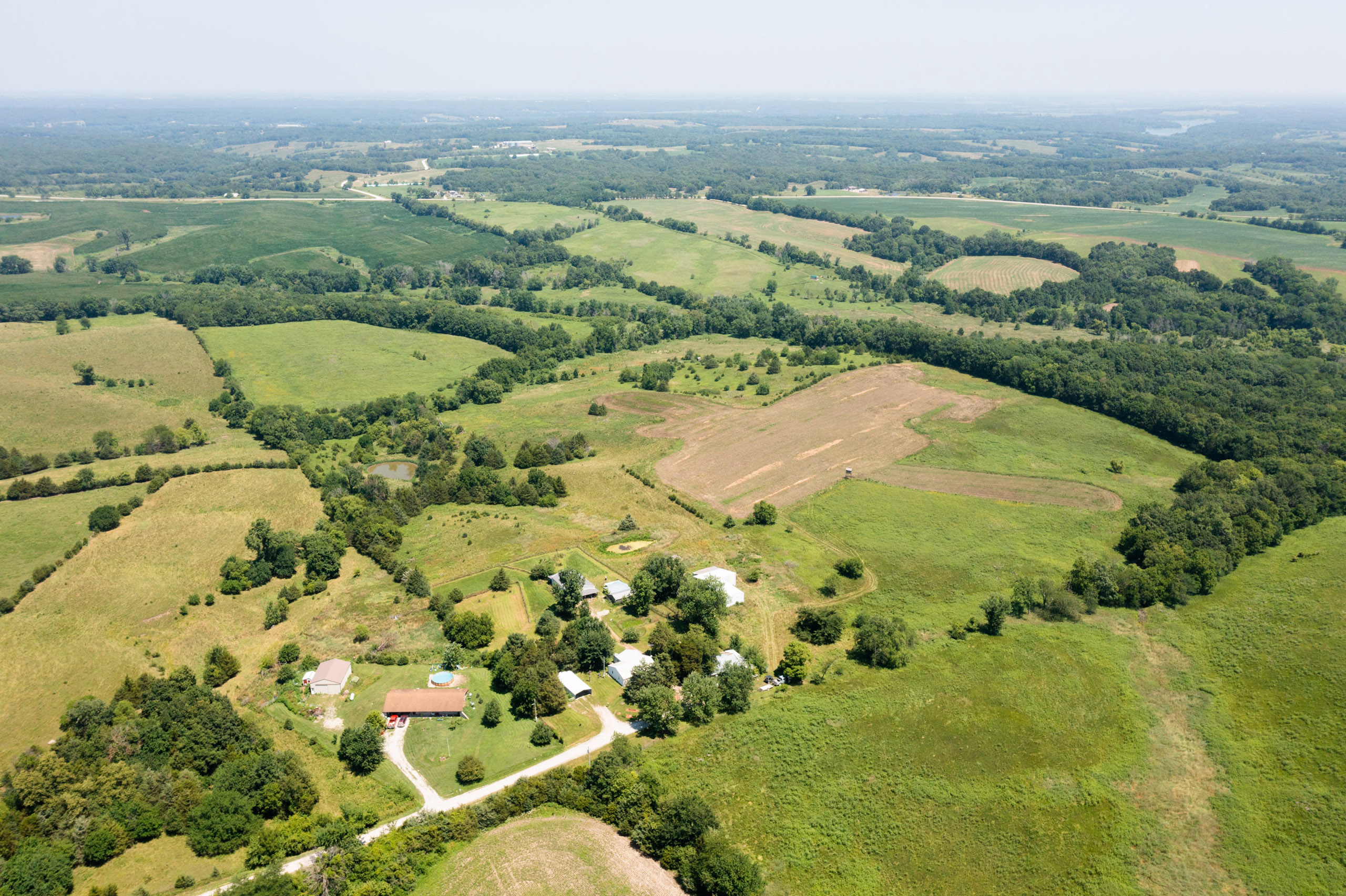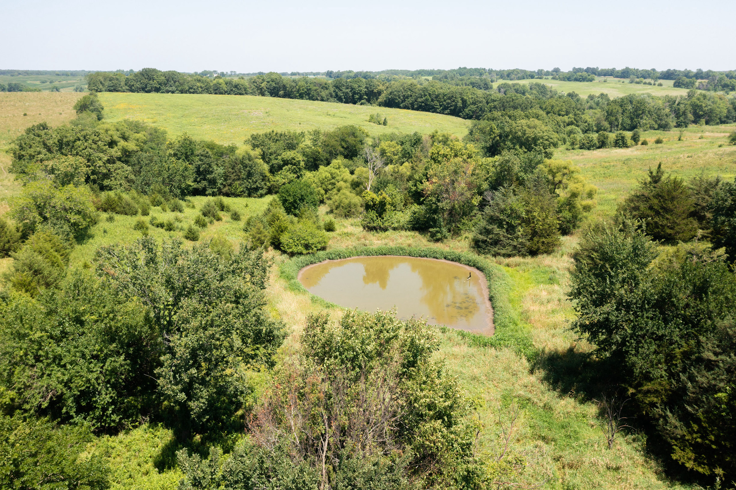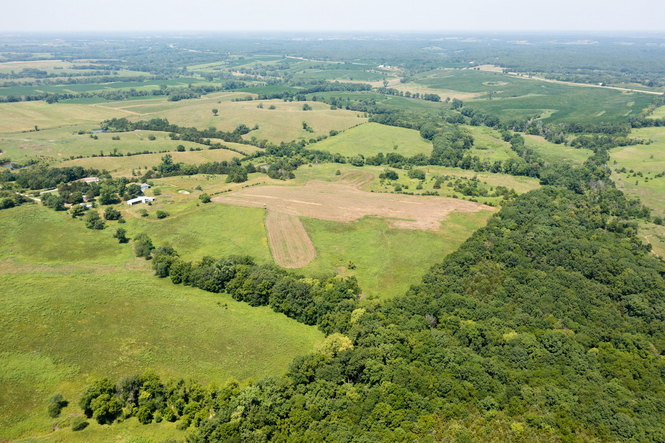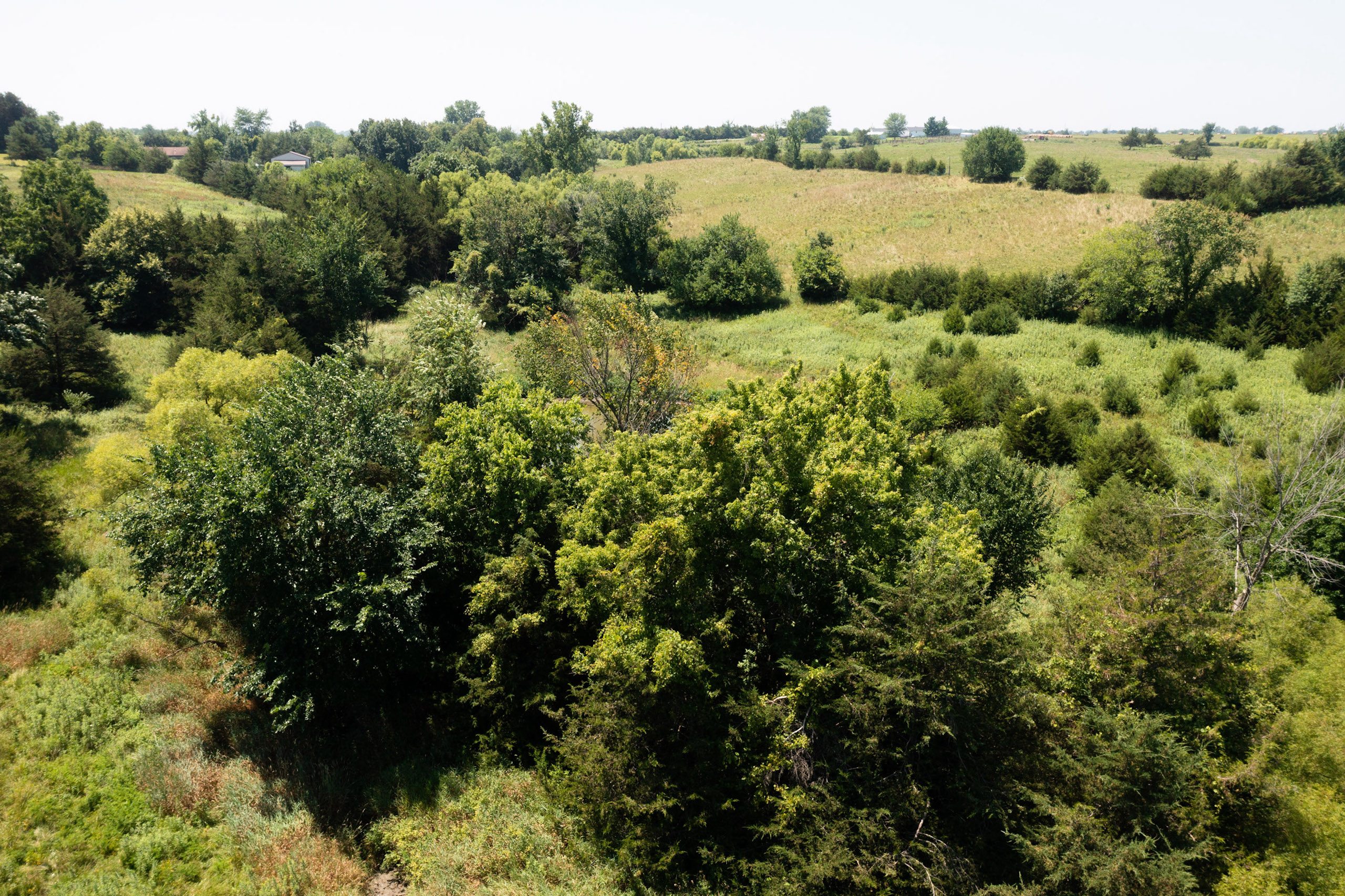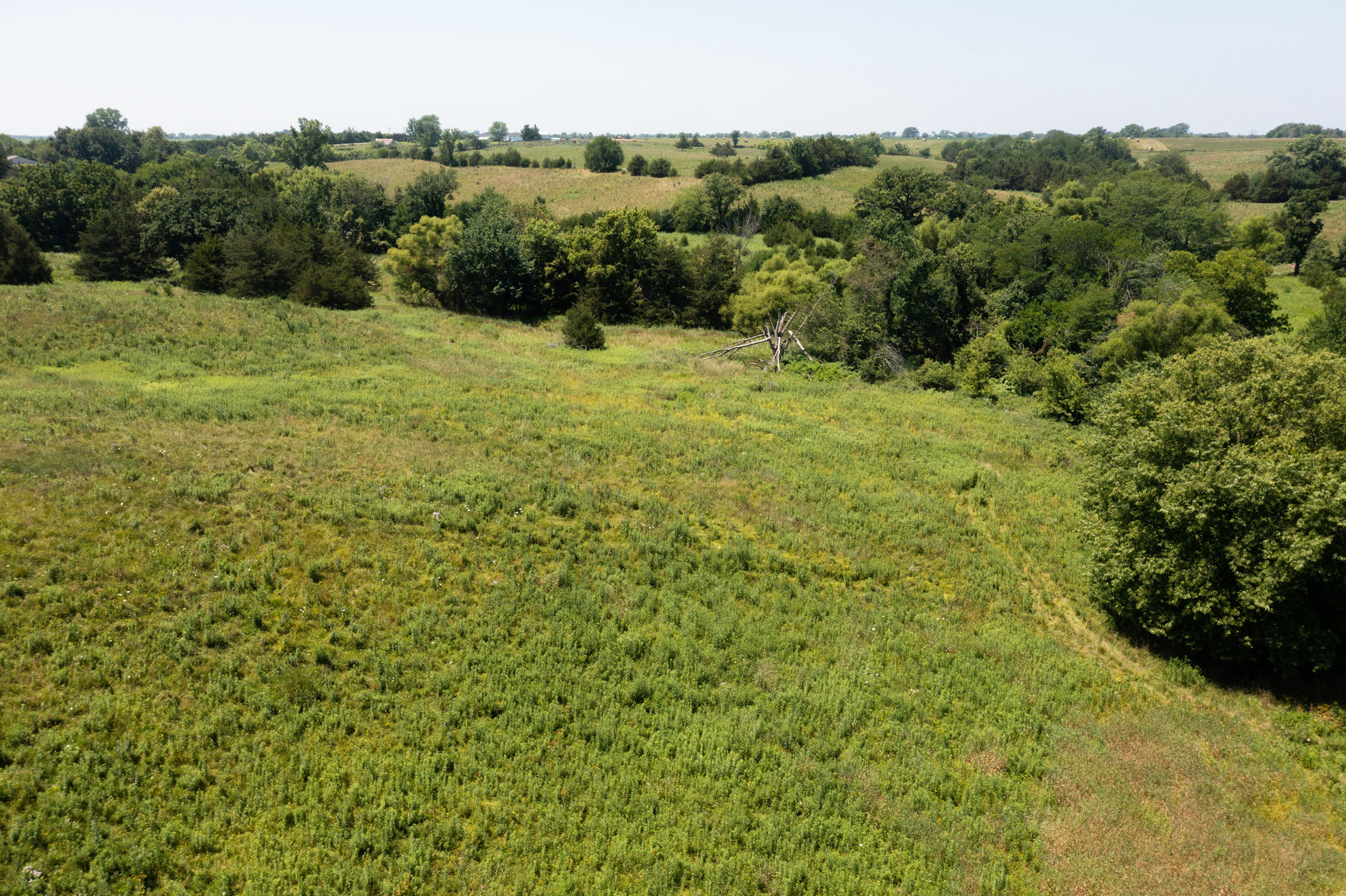 A dead-end road leads you to the southwest corner gate of the property. Inside the entrance is a machine shed for storing equipment and a pond. This area would make a perfect place to build. To the east is approximately 12 tillable acres, which historically have been used as a giant food plot. The late-season hunting here is described as “tremendous”! To the east and southeast is a significant block of timber; to the north is a south-facing hillside of CRP native grasses and a thick east/west creek bottom.