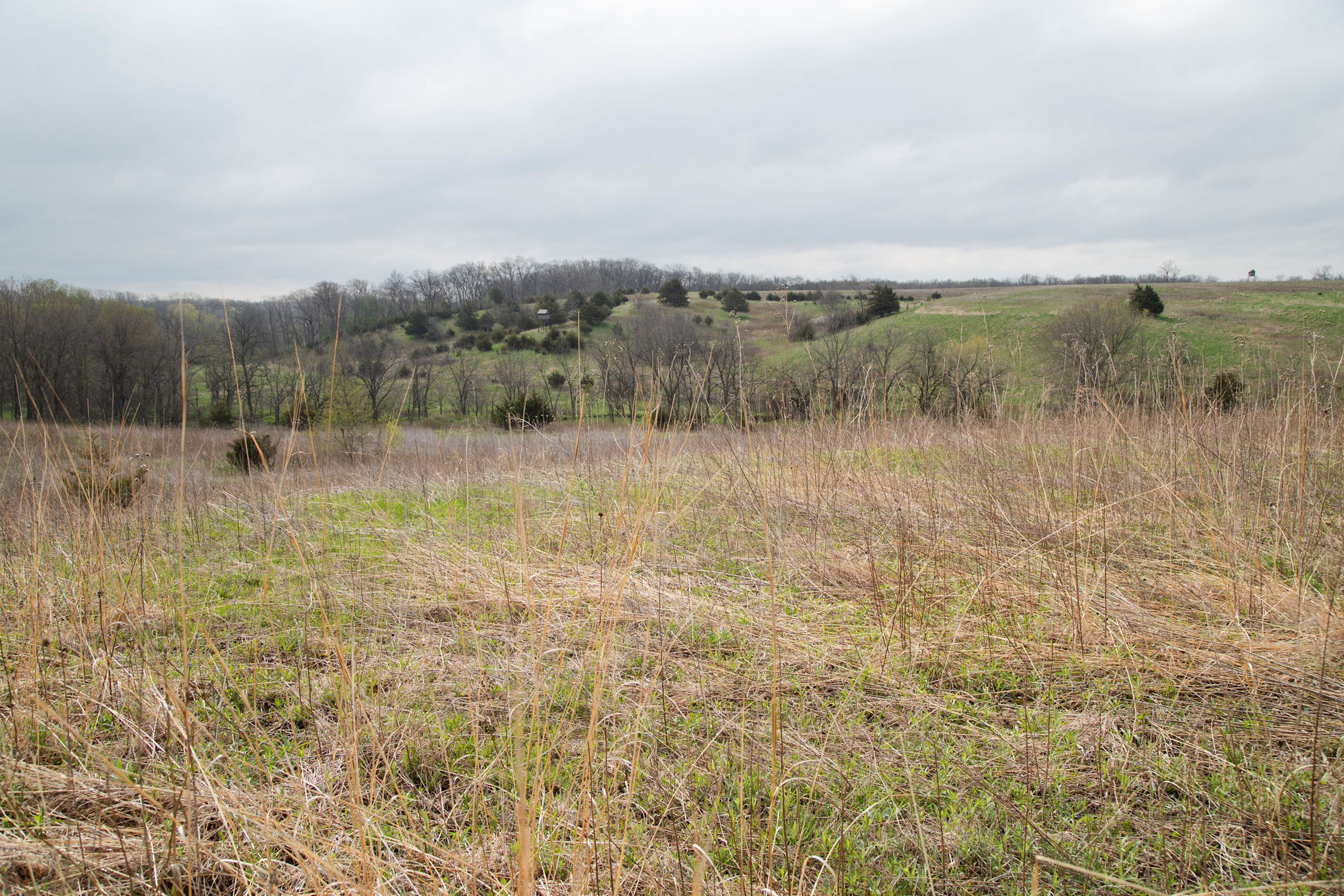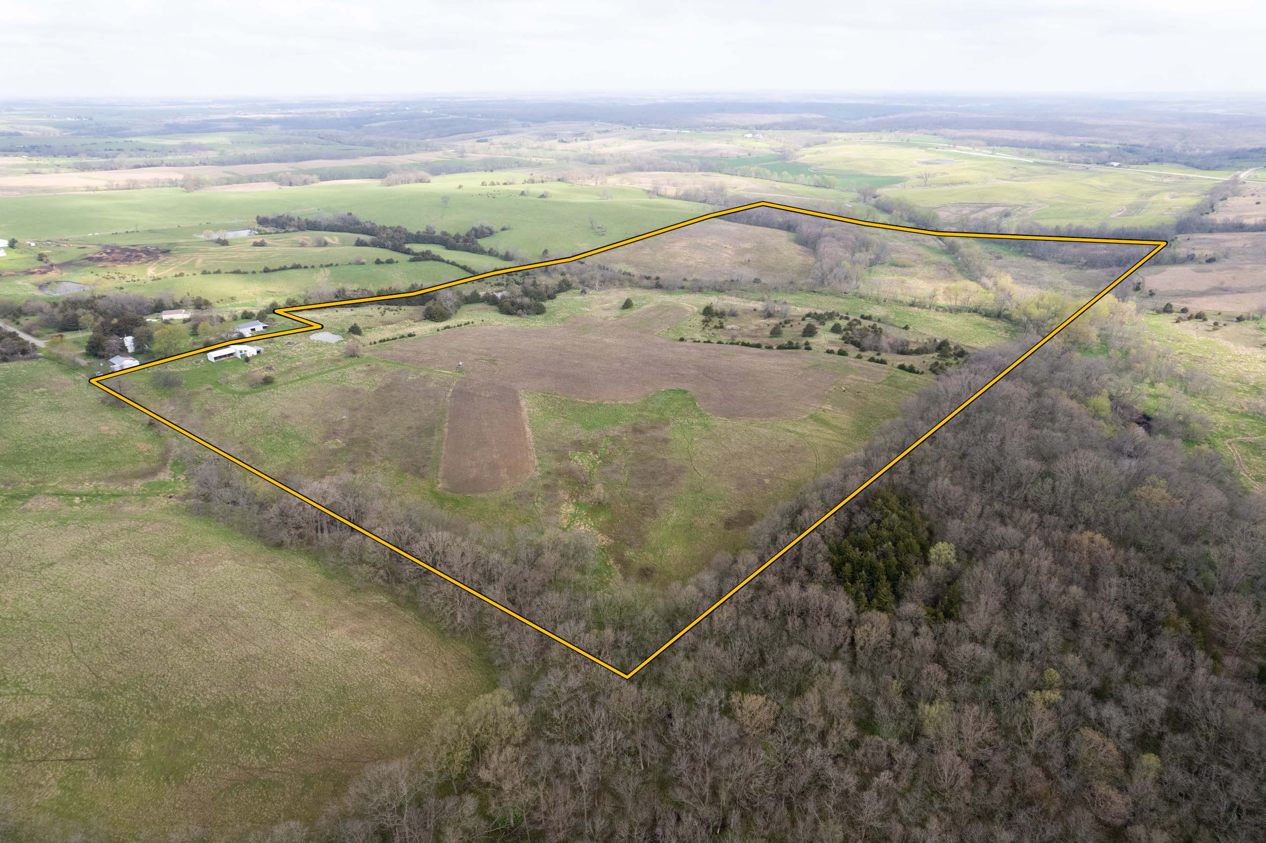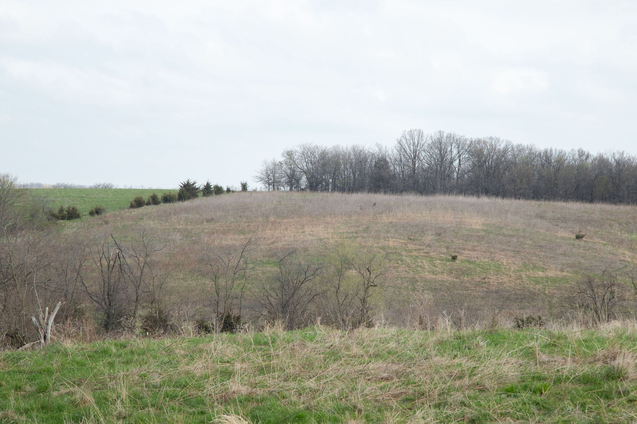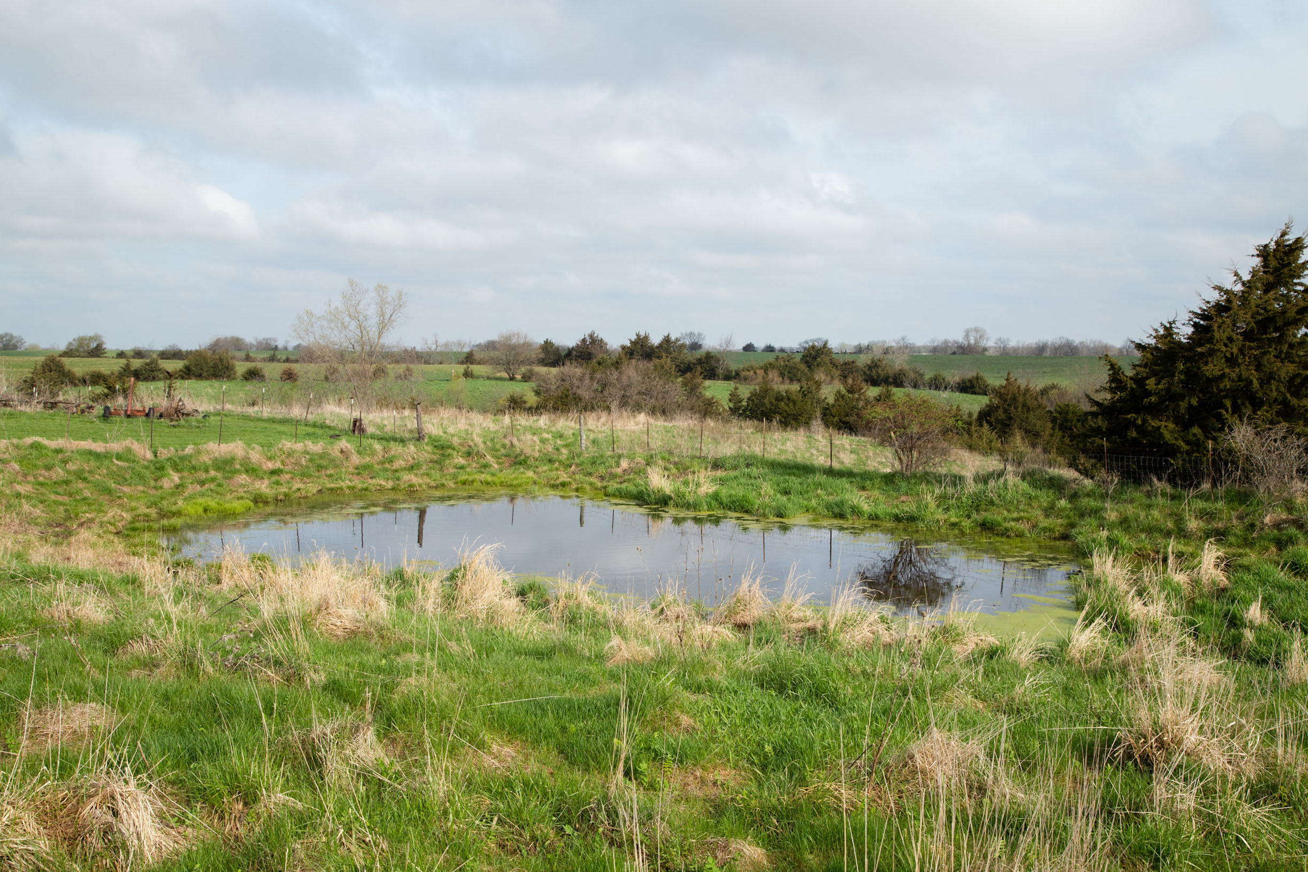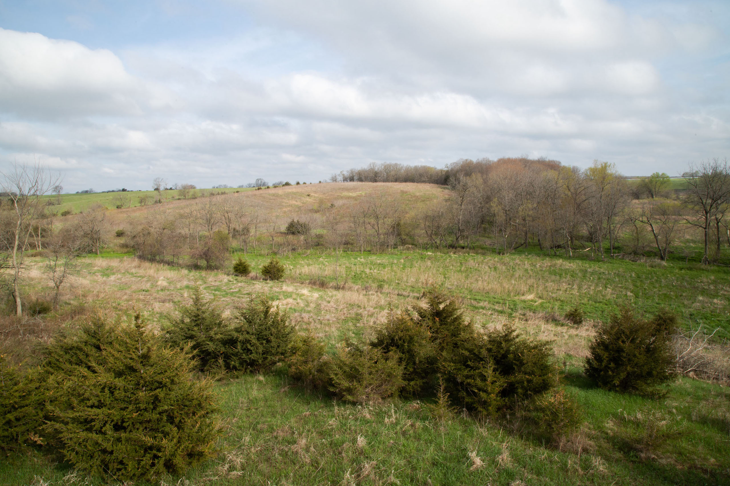 A dead-end road leads you to the southwest corner gate of the property. Inside the entrance is a machine shed for storing equipment and a pond. This area would make a perfect place to build. To the east is approximately 12 tillable acres, which historically have been used as a giant food plot. The late-season hunting here is described as “tremendous”! To the east and southeast is a significant block of timber; to the north is a south-facing hillside of CRP native grasses and a thick east/west creek bottom.