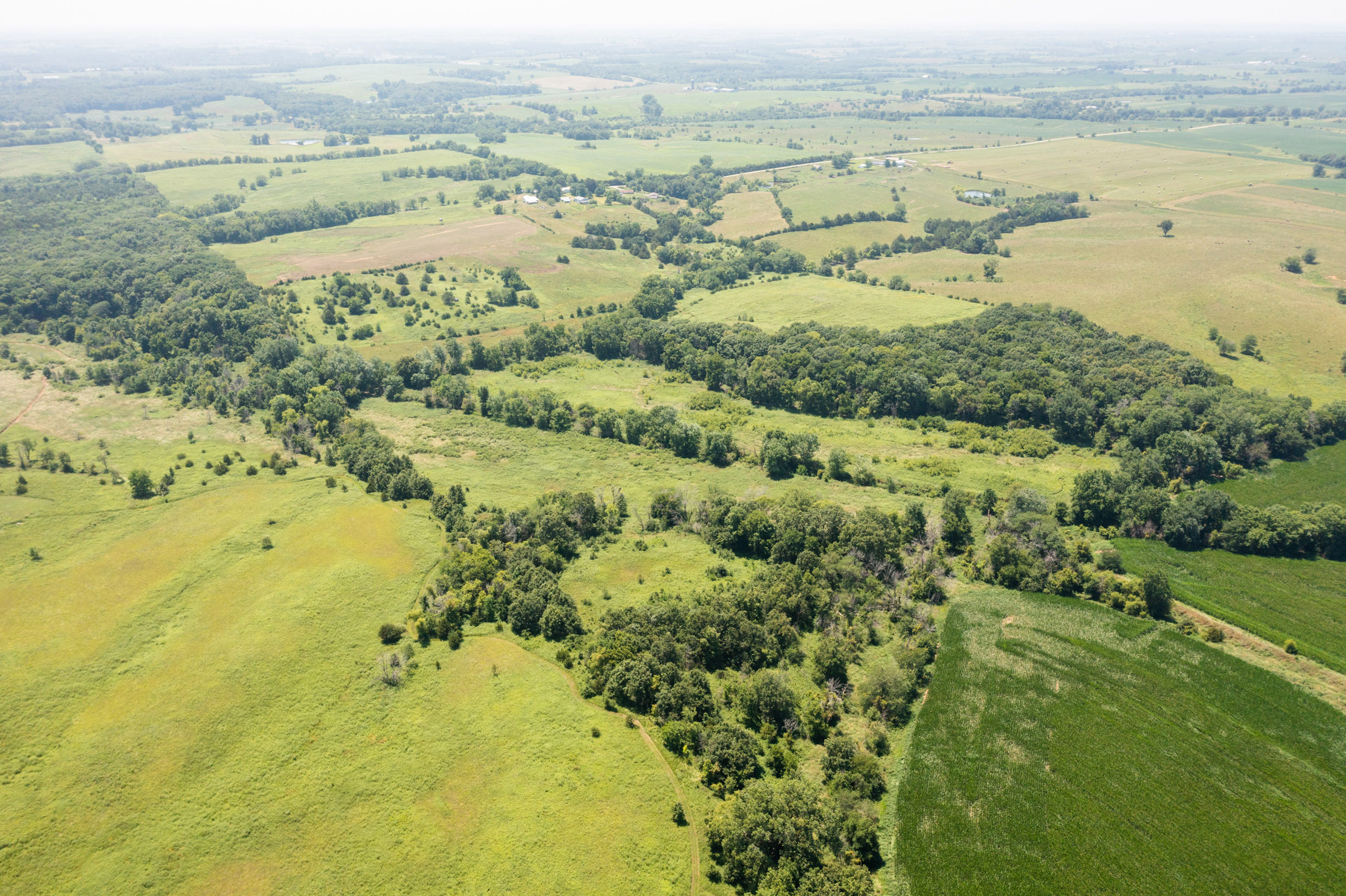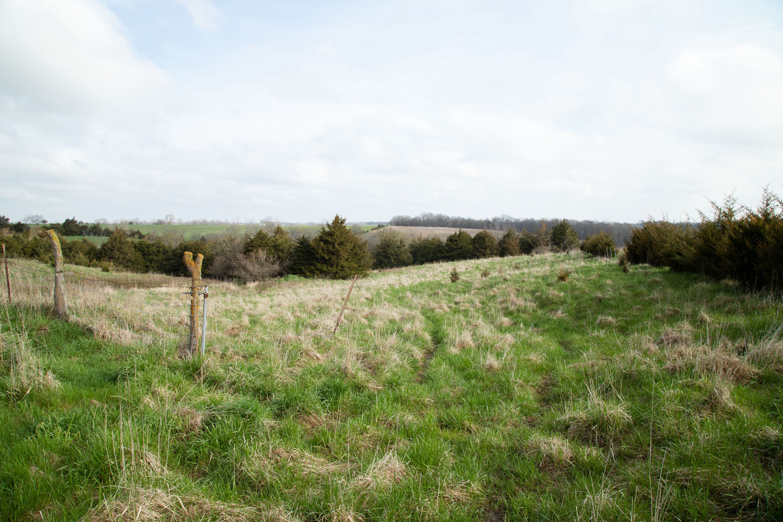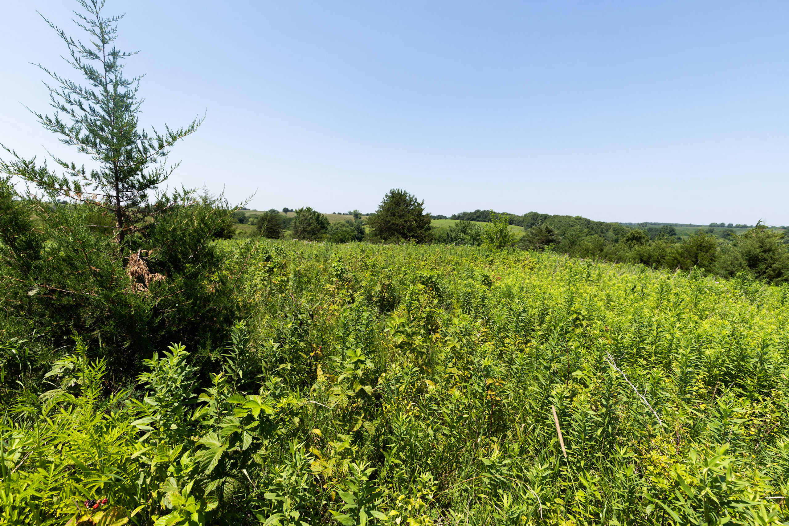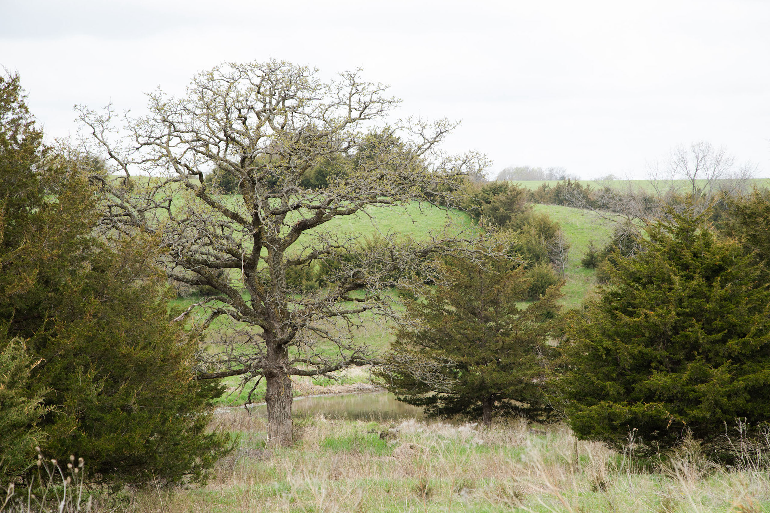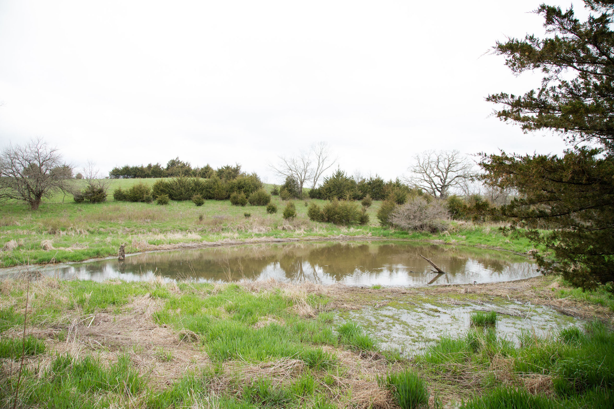 A dead-end road leads you to the southwest corner gate of the property. Inside the entrance is a machine shed for storing equipment and a pond. This area would make a perfect place to build. To the east is approximately 12 tillable acres, which historically have been used as a giant food plot. The late-season hunting here is described as “tremendous”! To the east and southeast is a significant block of timber; to the north is a south-facing hillside of CRP native grasses and a thick east/west creek bottom.