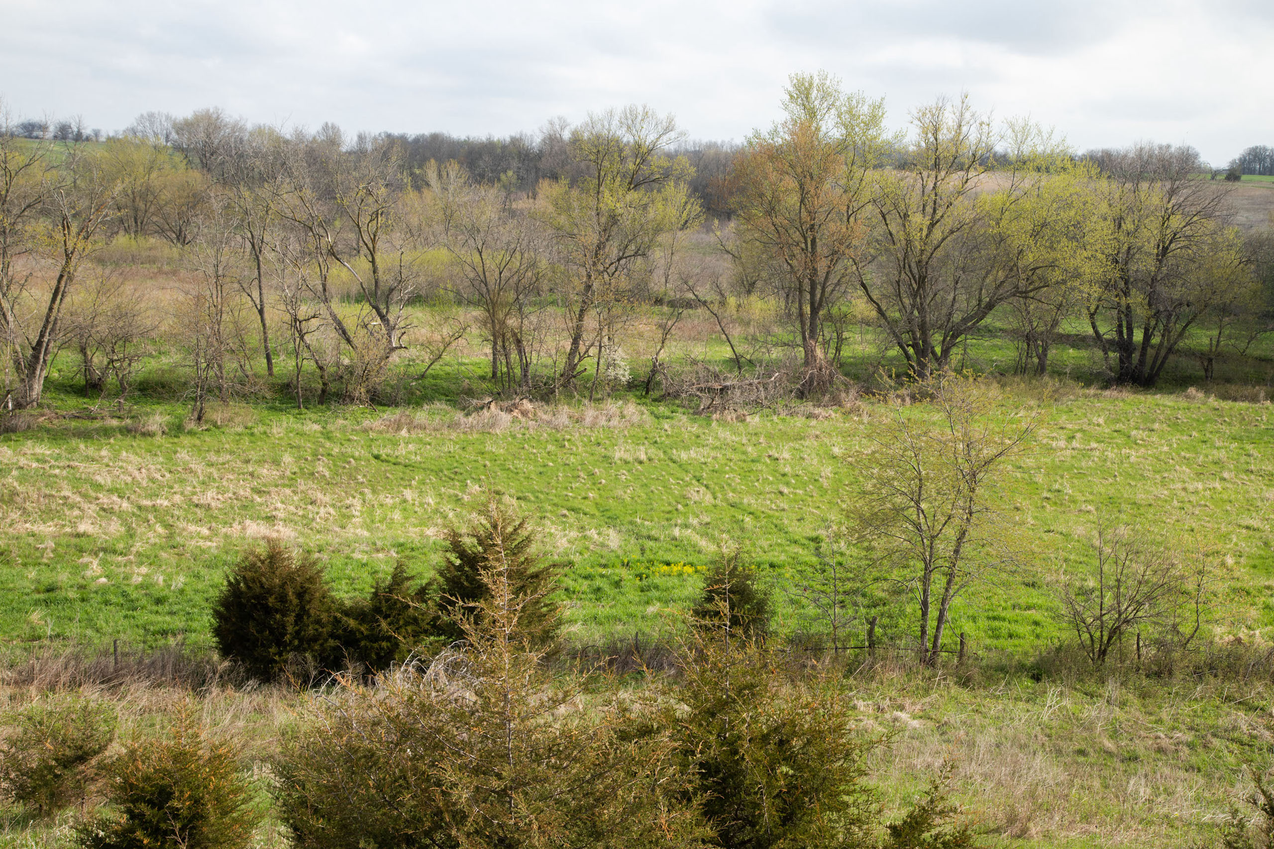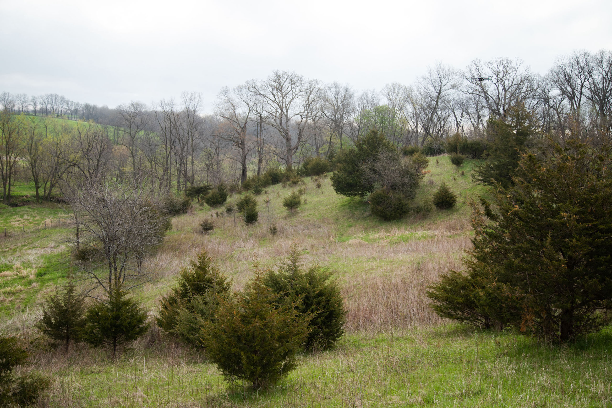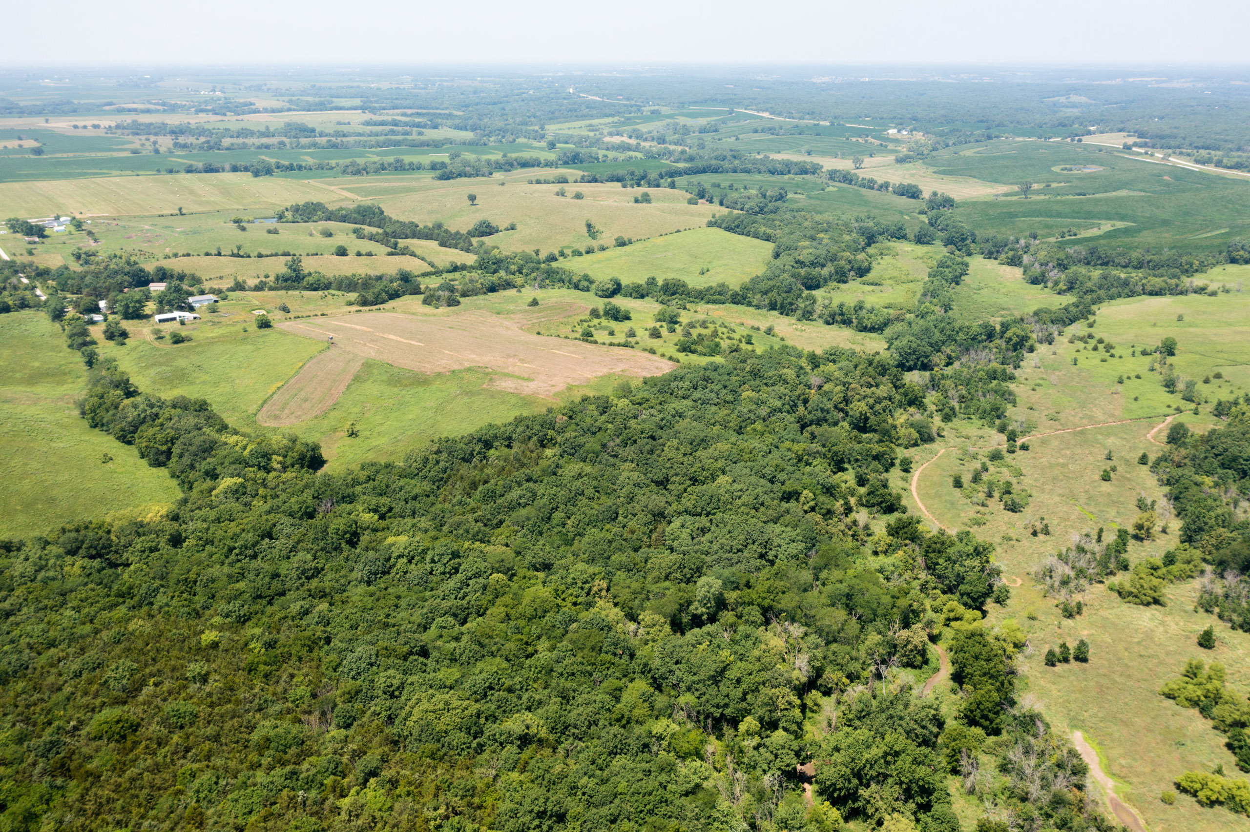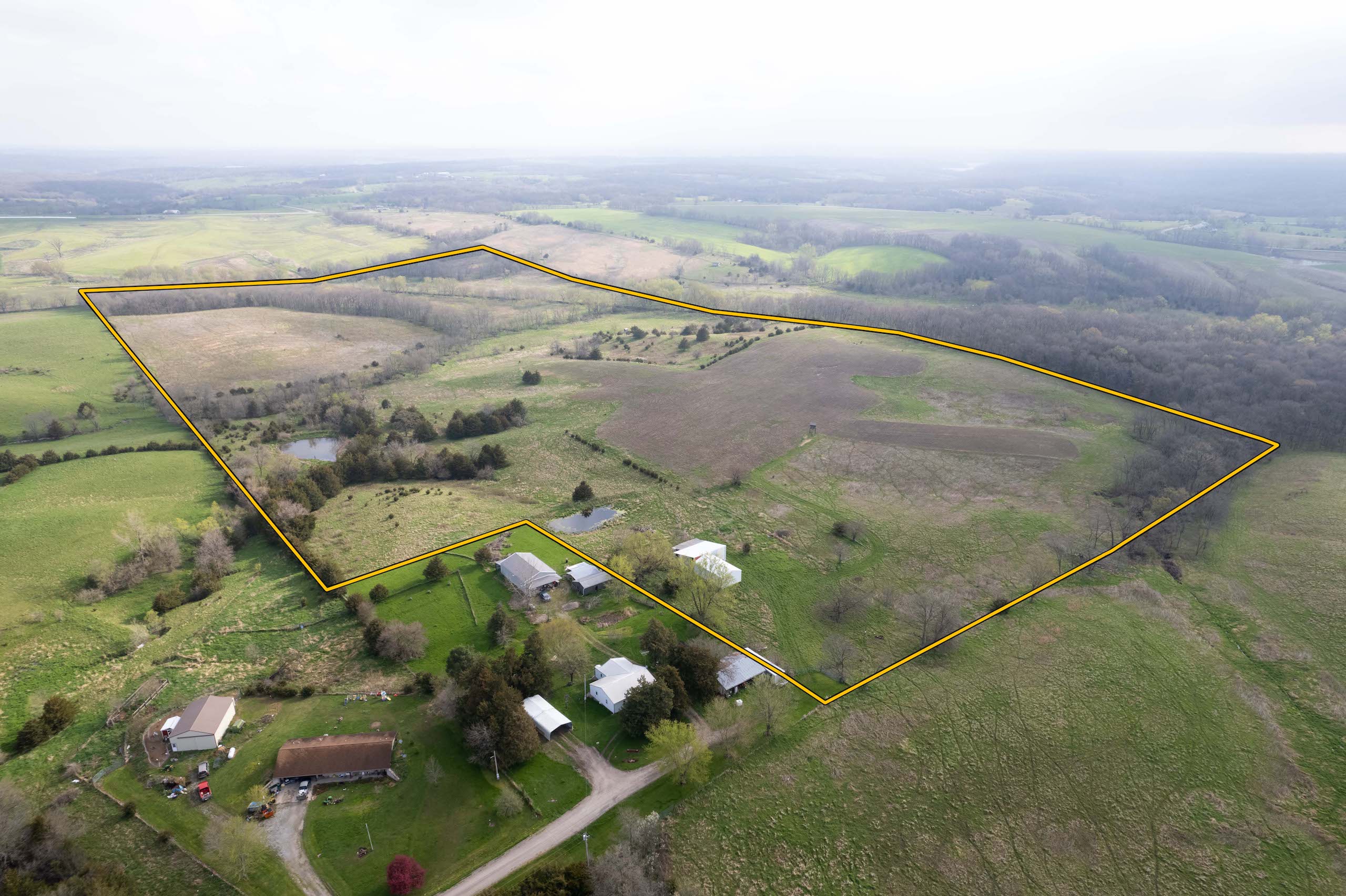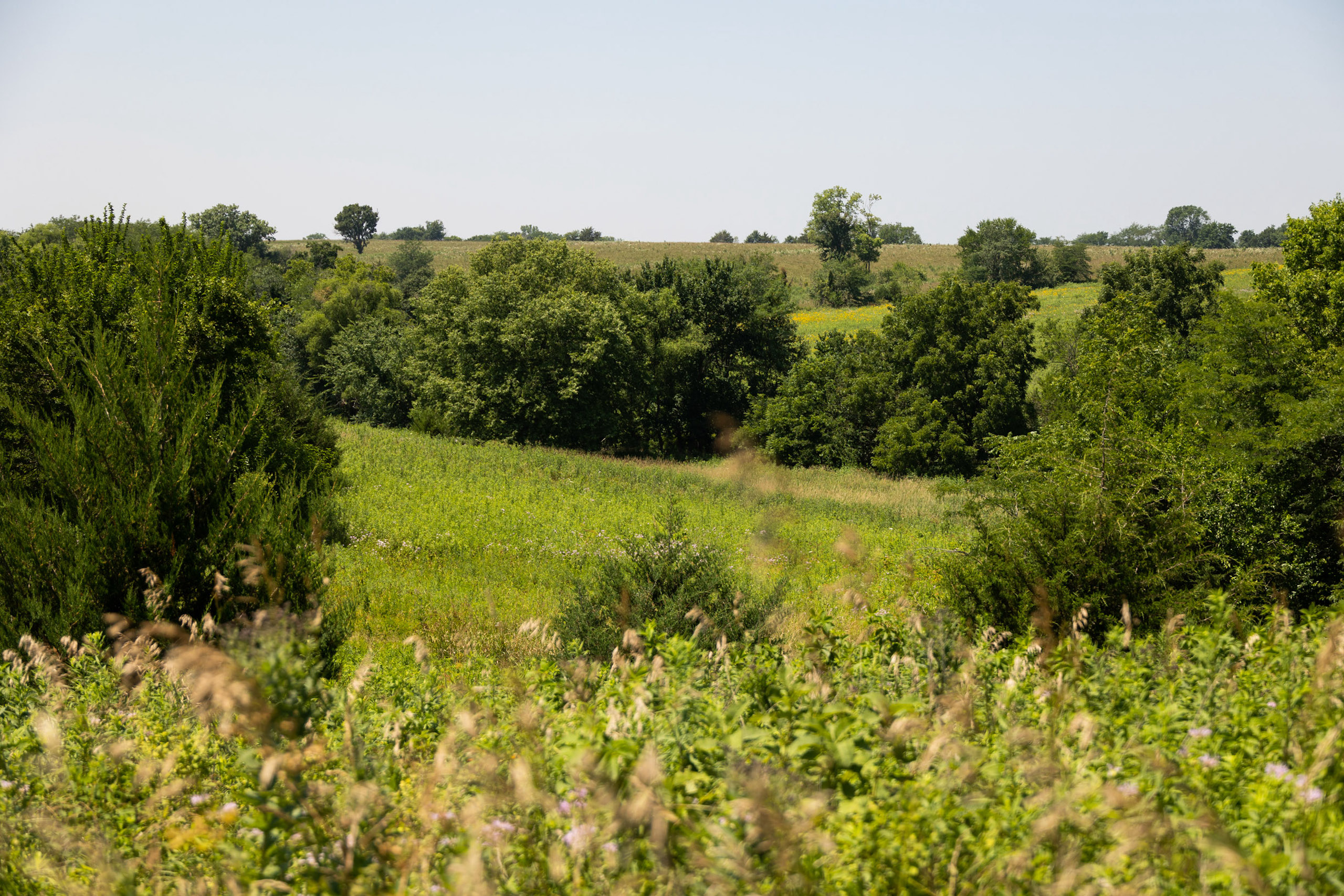 A dead-end road leads you to the southwest corner gate of the property. Inside the entrance is a machine shed for storing equipment and a pond. This area would make a perfect place to build. To the east is approximately 12 tillable acres, which historically have been used as a giant food plot. The late-season hunting here is described as “tremendous”! To the east and southeast is a significant block of timber; to the north is a south-facing hillside of CRP native grasses and a thick east/west creek bottom.