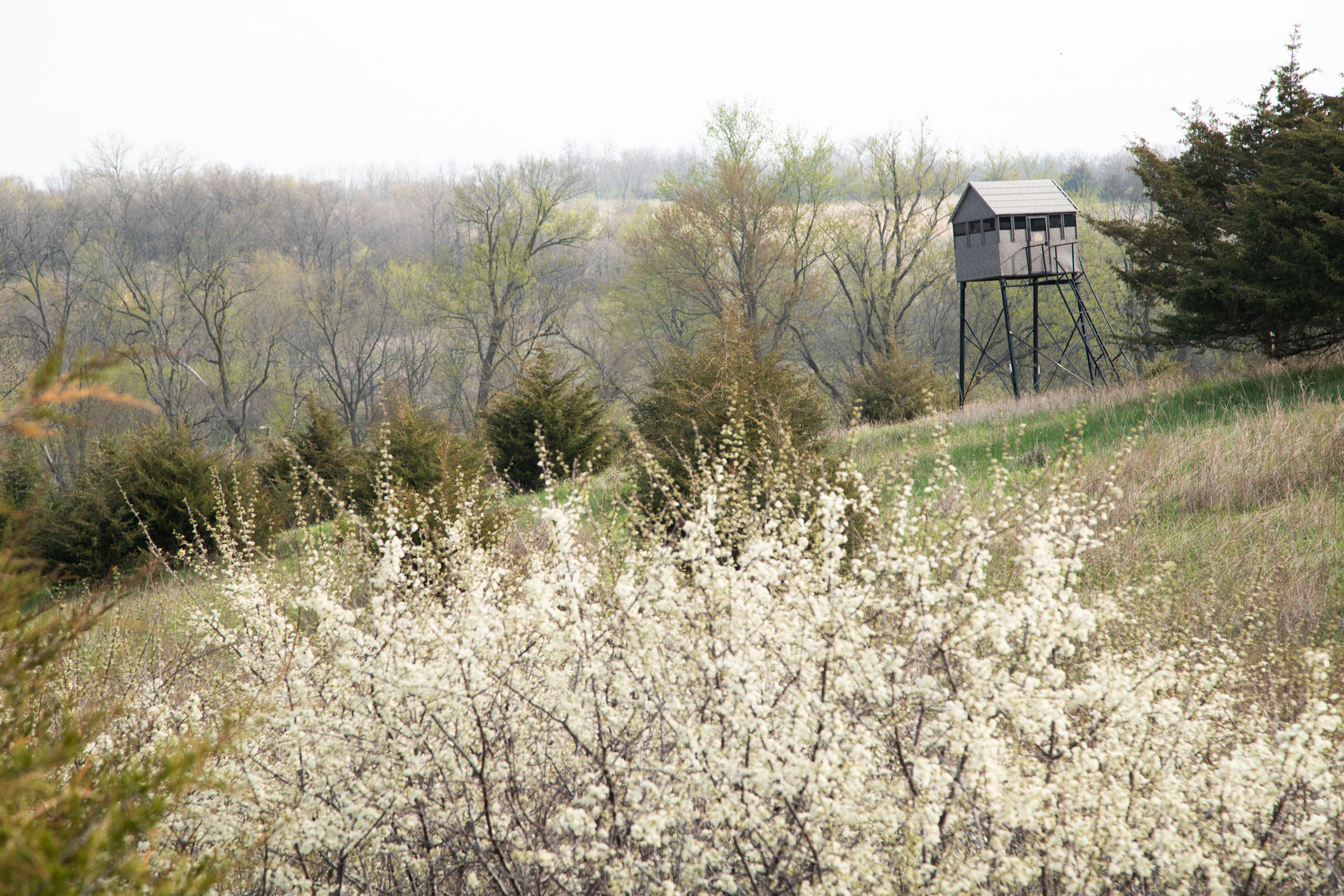 This area hosts several large farms that are managed to grow a healthy, mature whitetail herd. Trail camera and harvest photos show that many bucks have high-scoring traits! Imagine the heart-racing moments that will come while glassing from the tower blinds, watching a target buck wind his way into range.