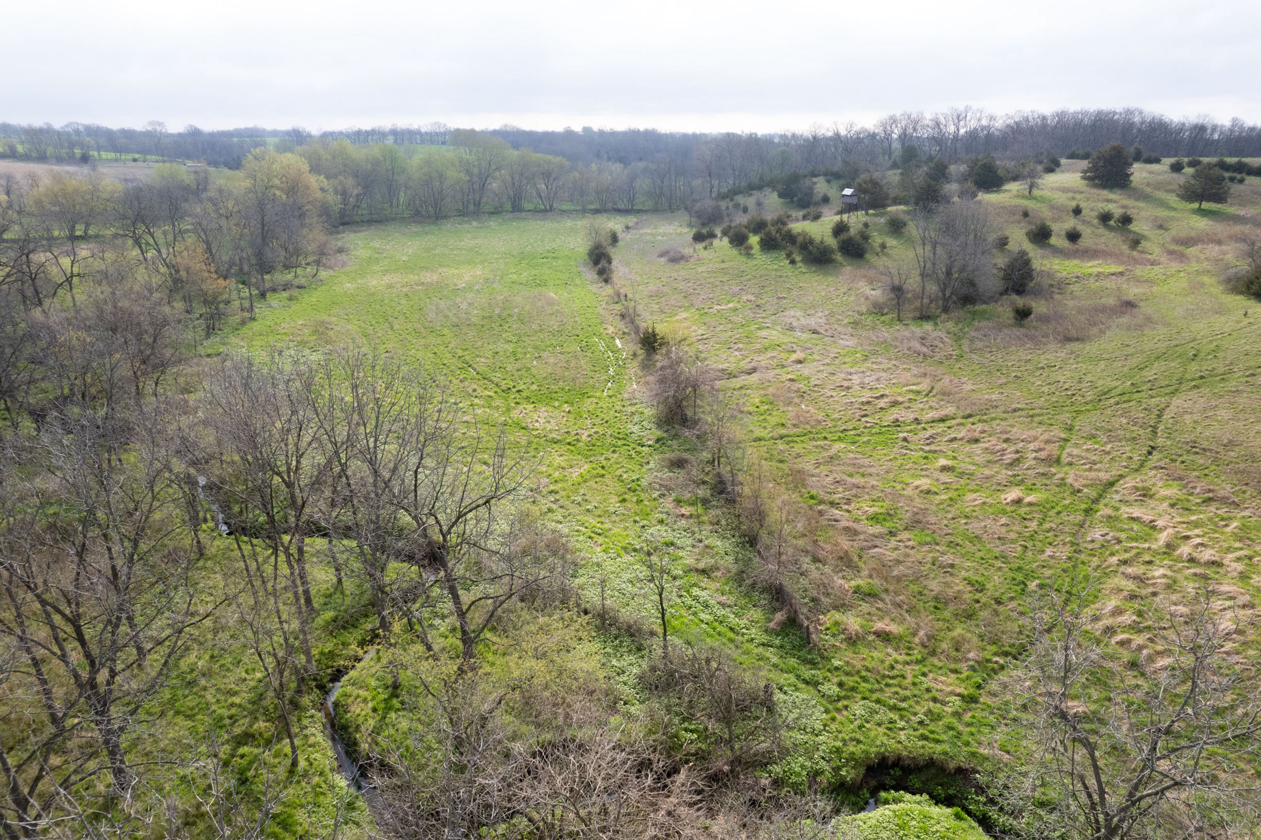 This area comes with a history of big whitetails. See the trail camera photos to prove what this farm and the seller’s other farm 0.75 miles away have produced. Remnants of old pasture fences and gate holes create predictable locations for trail camera surveillance. The North Fox Creek meanders through the heart of this farm, providing a centralized travel route for cruising bucks. We don’t expect this offering to last long at all. Call the listing agent if you have serious interest!