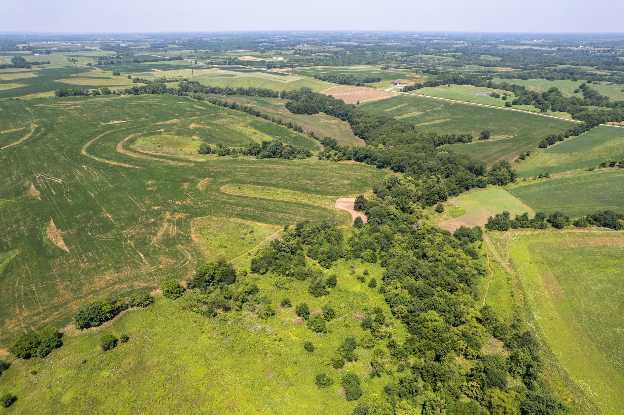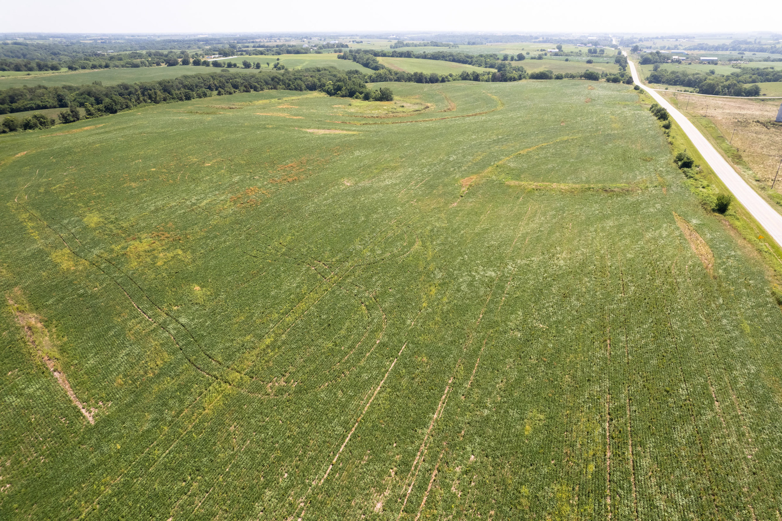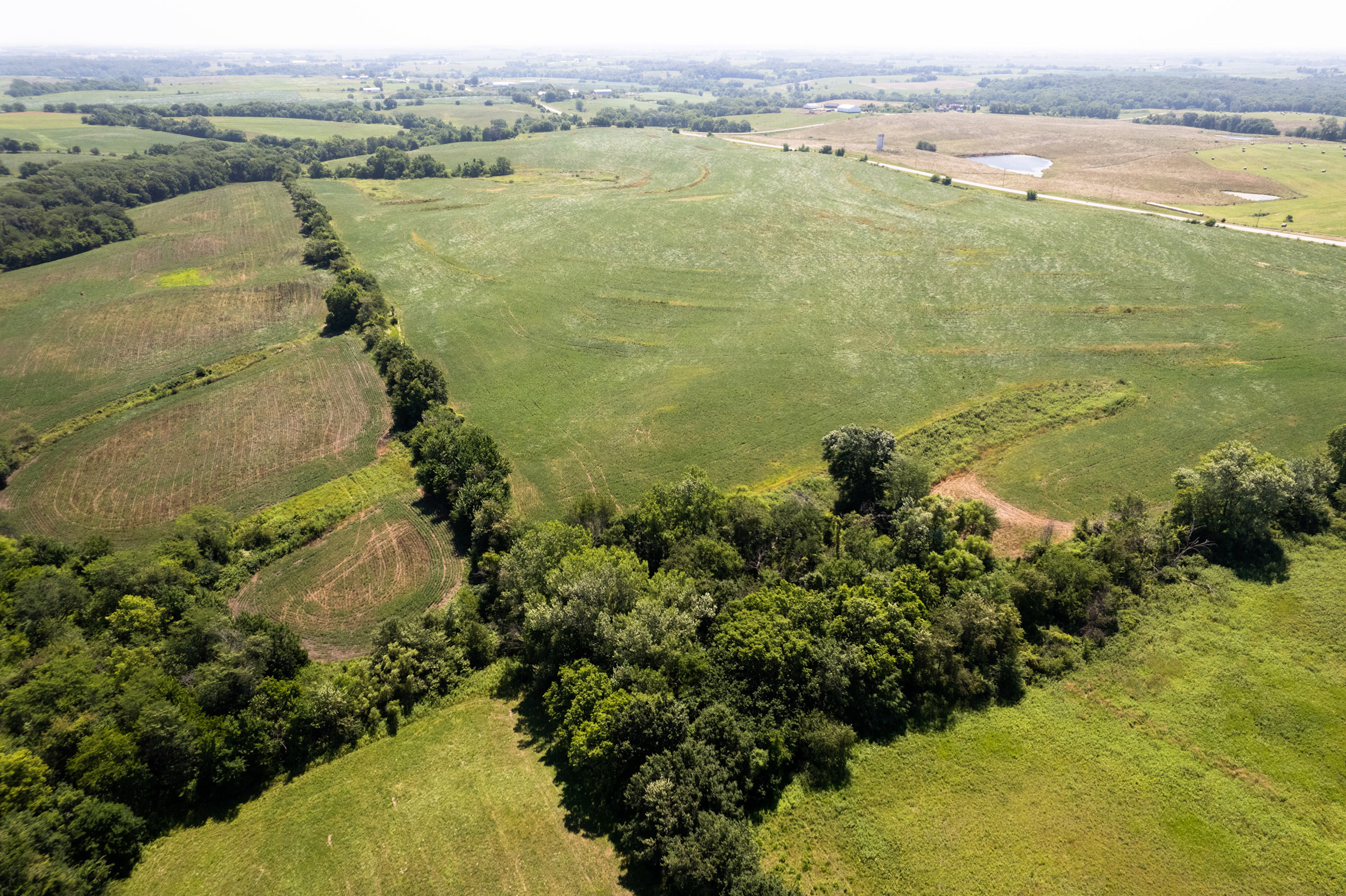 There are two field entrances on the south side for large equipment, and the prime location along Highway 2 allows convenient access to the main travel route for grain. Secluded food plots with access trails improve the hunting in the northern corners of the farm, out of view from any roads. Several large bucks consistently visited these plots in daylight last fall. Pinch points along with the food plots will make for predictable hunting in a region that we know has trophy whitetails. This farm should be very attractive for the investment-minded buyer, who may also enjoy hunting big southern Iowa whitetails. Call the listing agent to discuss this excellent investment opportunity.