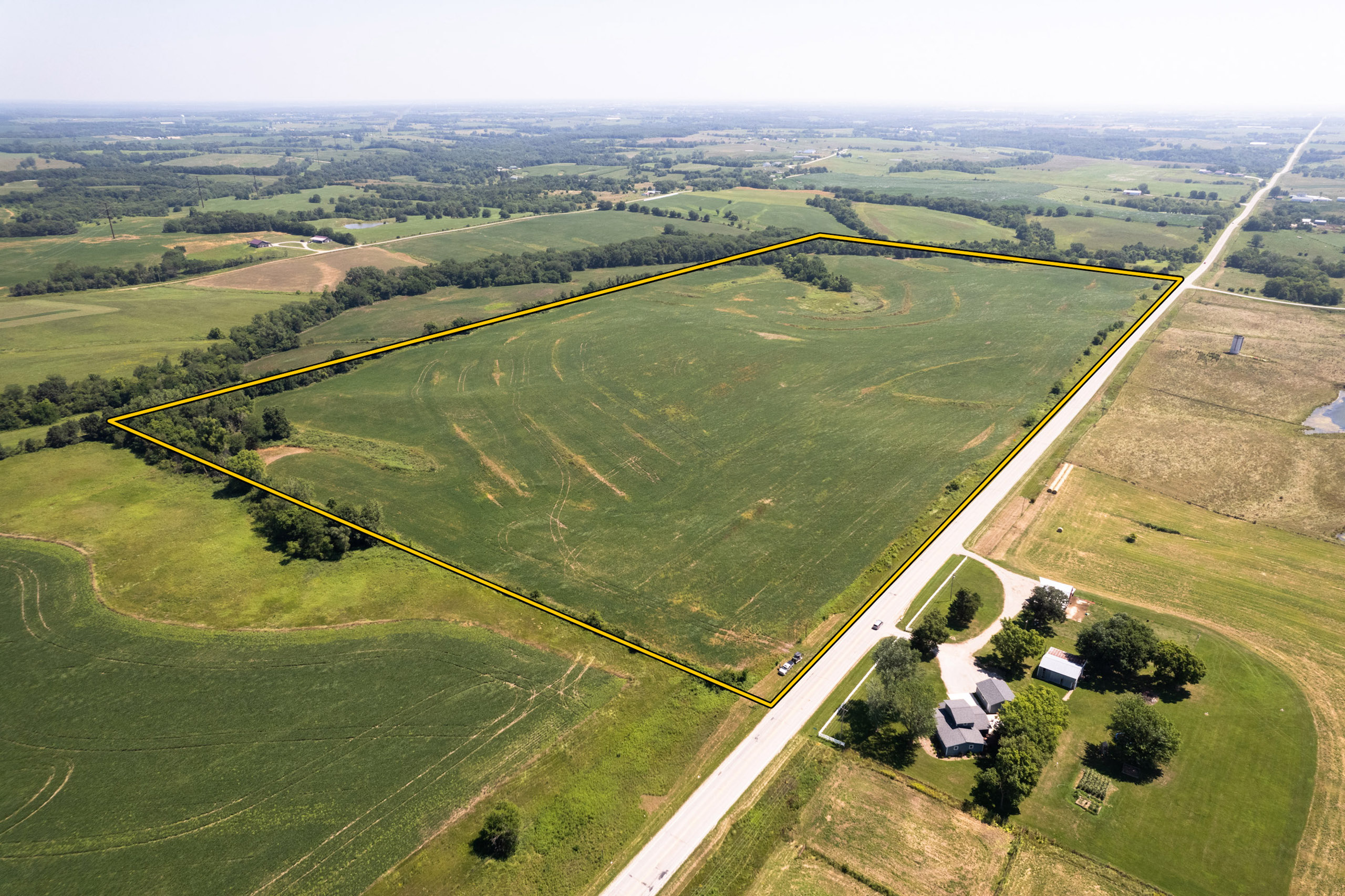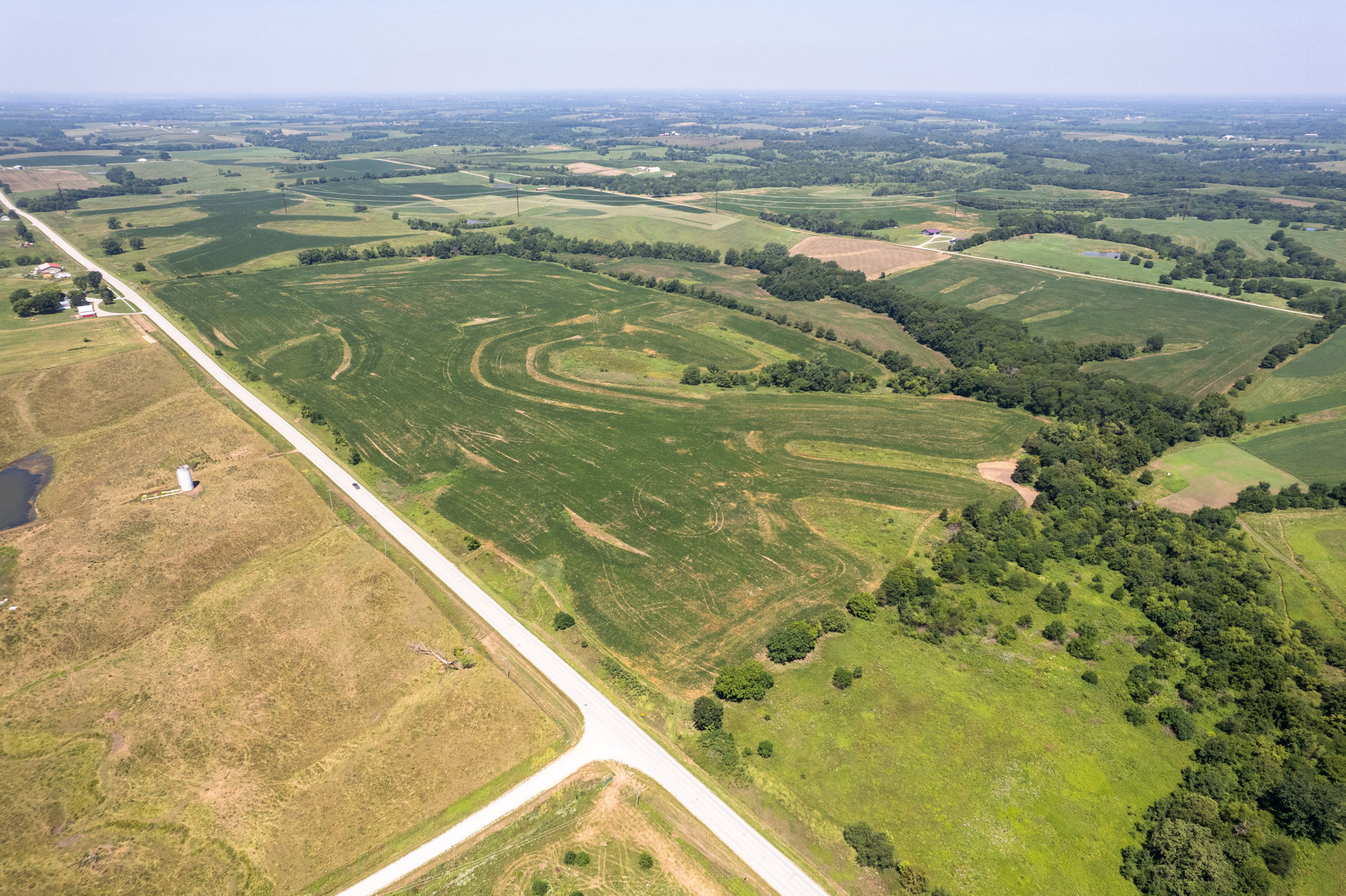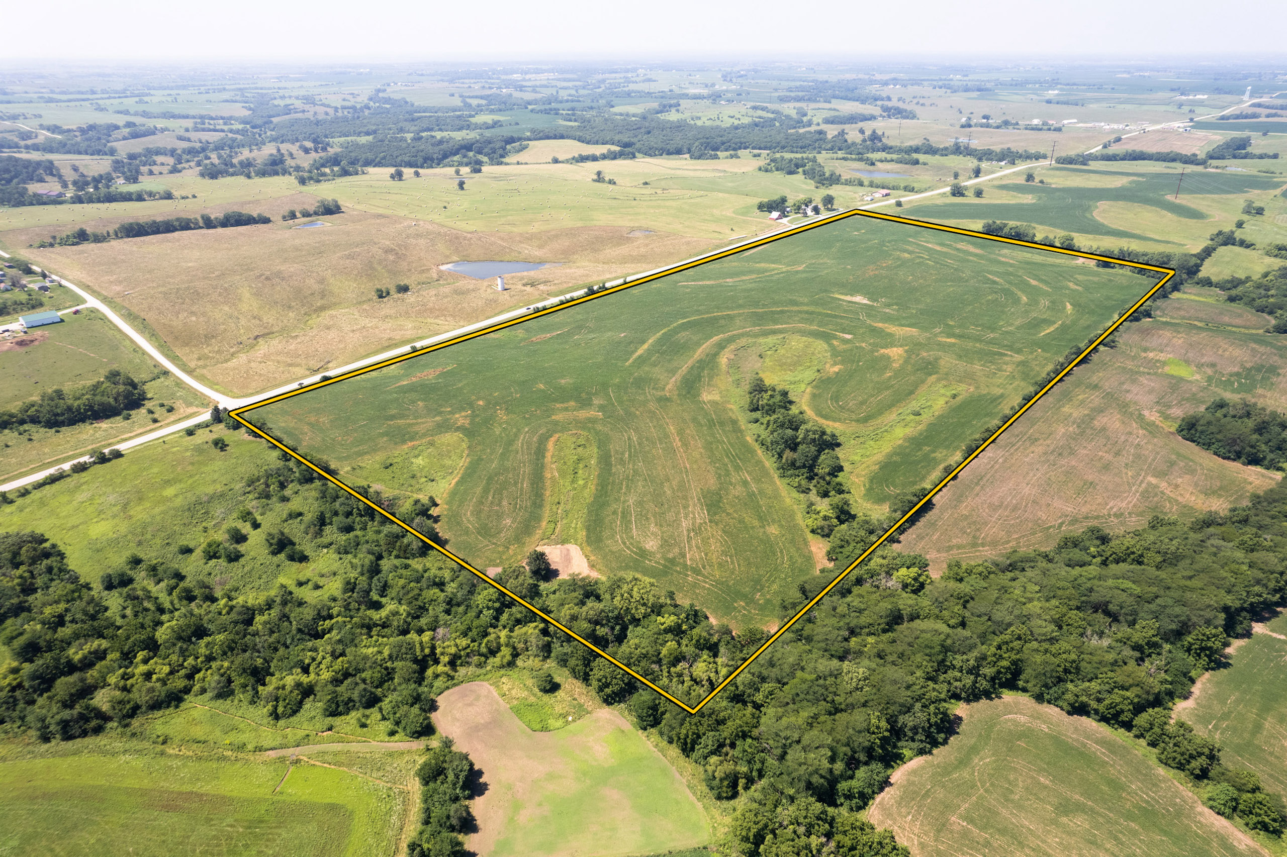 There are two field entrances on the south side for large equipment, and the prime location along Highway 2 allows convenient access to the main travel route for grain. Secluded food plots with access trails improve the hunting in the northern corners of the farm, out of view from any roads. Several large bucks consistently visited these plots in daylight last fall. Pinch points along with the food plots will make for predictable hunting in a region that we know has trophy whitetails. This farm should be very attractive for the investment-minded buyer, who may also enjoy hunting big southern Iowa whitetails. Call the listing agent to discuss this excellent investment opportunity.