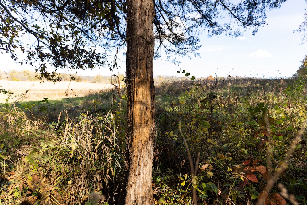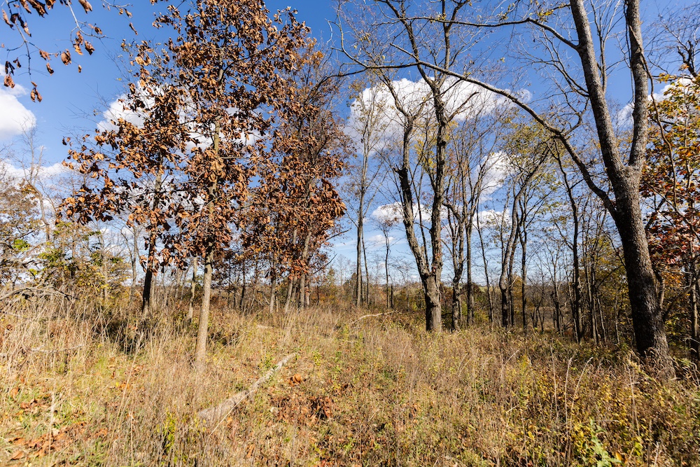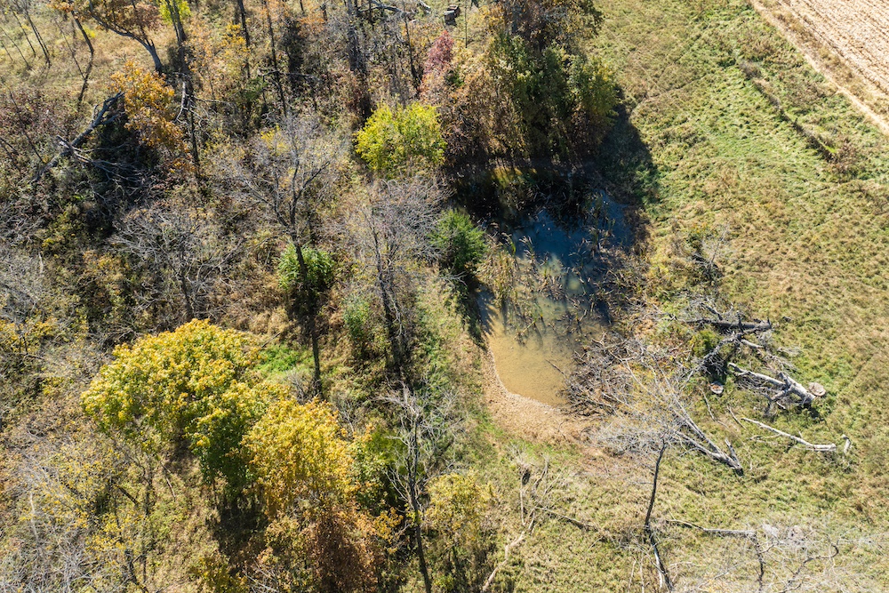 From a hunting perspective, this property checks all the boxes. The timber is a mix of hardwood and pasture timber and features a couple of ridges that provide good bedding for different times of the year and naturally funnel deer toward the neighboring crop field, which serves as the main food source for all the ground around and is a hub for wildlife activity in the area. With a bedding cover located on this property and the adjoining land to the south, deer movement through the timber is frequent and predictable. Surrounded by timber on all four sides, you can also expect to see plenty of cruising bucks during the rut, but also anticipate a high level of deer activity because the adjacent crop field is the main and only food source in the entire area, which is otherwise surrounded by trees and pasture. A small watering hole on the west side offers a reliable source for deer and other wildlife, while several small openings throughout the property make excellent food plot locations. The northern and eastern edges feature open grasses that could easily be converted into additional plots, and the power-line clearing along the west side adds another great setup for hunting or food plot opportunities.