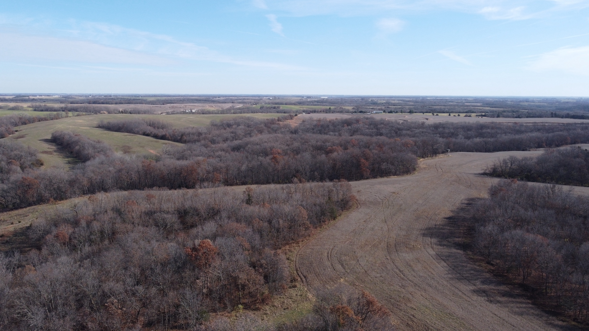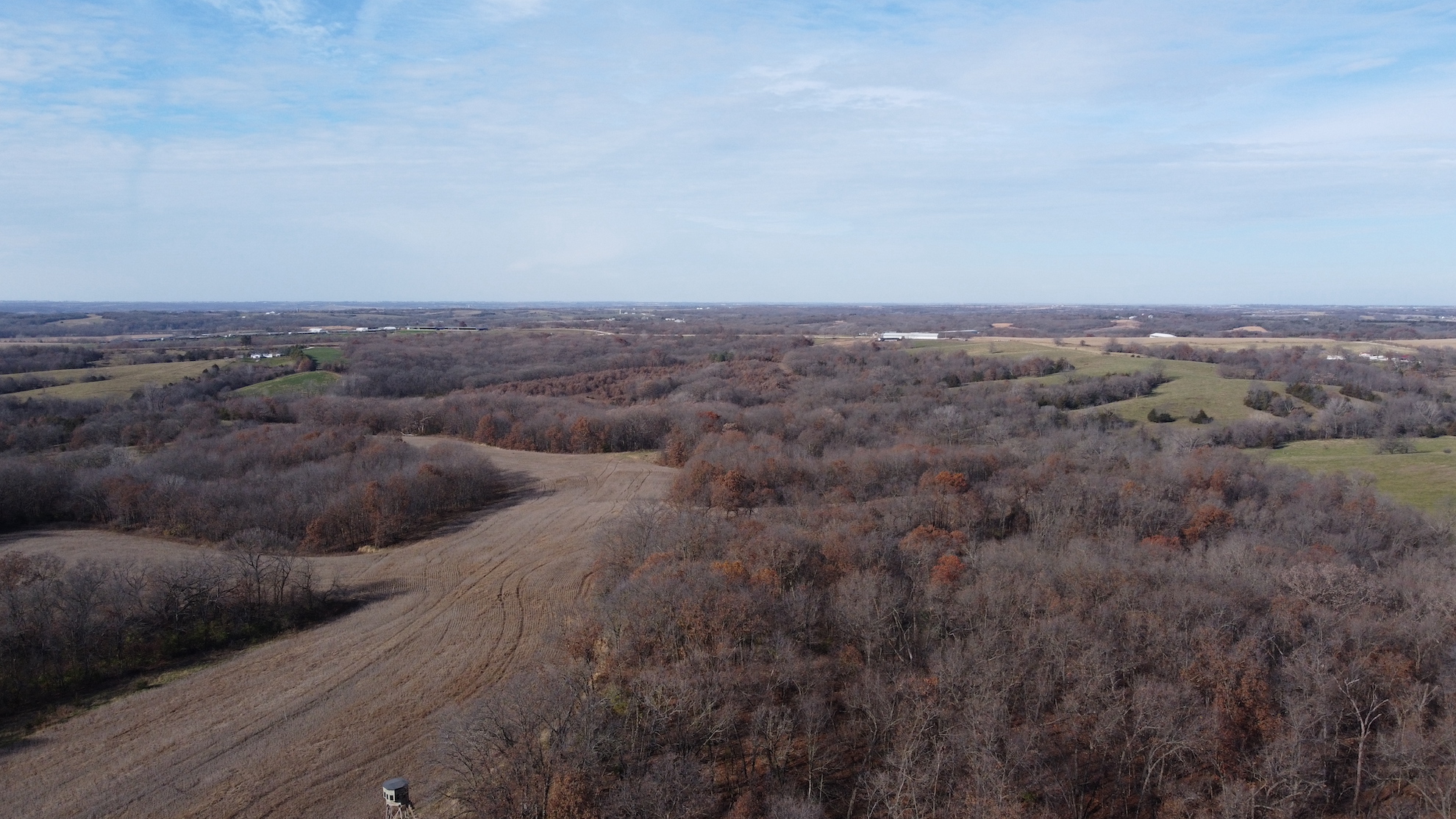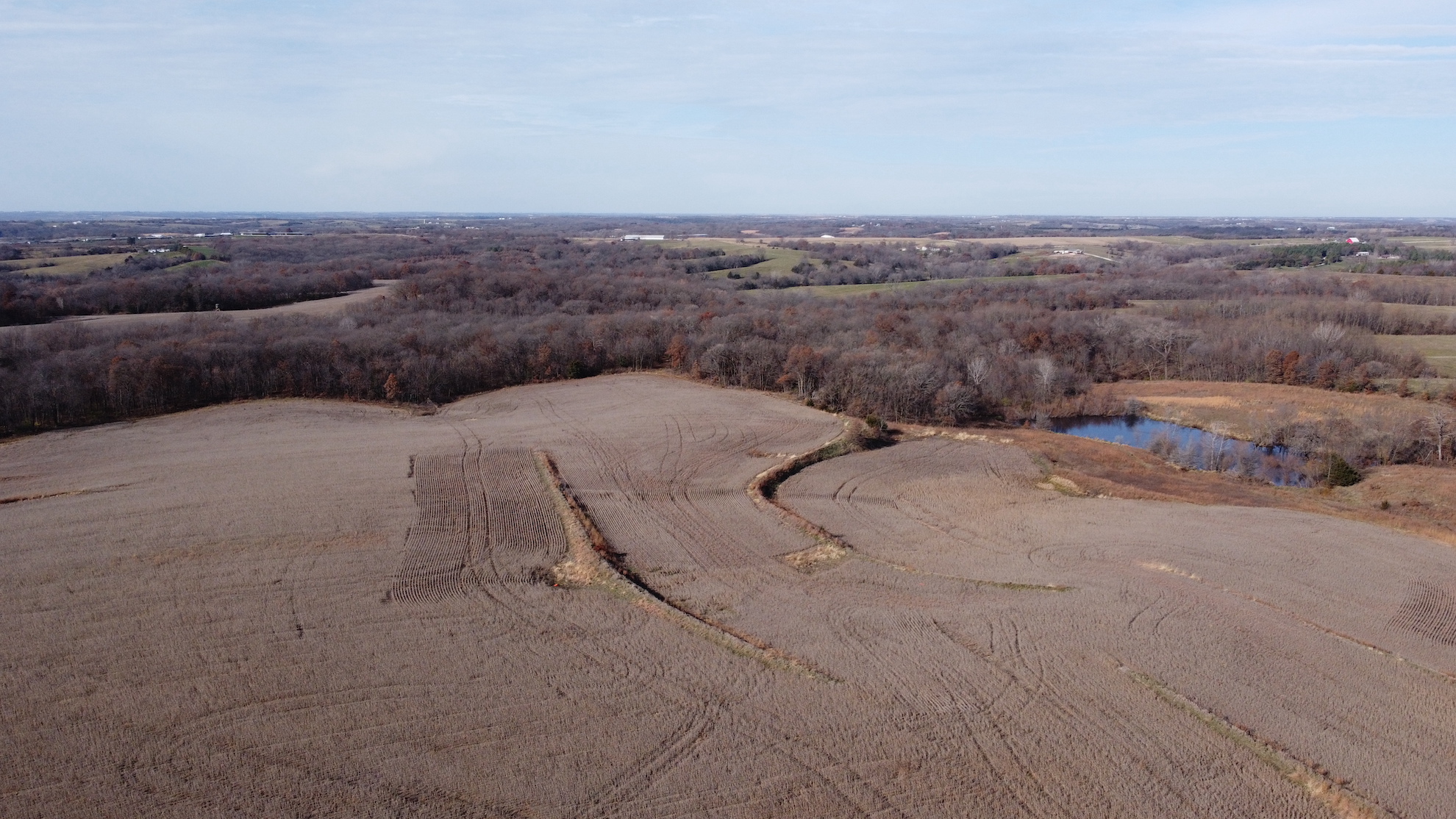Everyone loves the combo farms and this is one of the best! Not only is it a combo farm, it’s the perfect 50/50 farm I hear buyers asking for on a daily basis. I could literally go on and on about all the great attributes this farm has but the one that sticks in my mind the most is that this farm has been very well cared for and rested in CRP for the past 40+ years and it is in great shape. On top of that it has everything buyers ask for, income, virgin hardwood timber, build site, great neighborhood, stocked pond, tillable land improvements, thick brushy areas, hard surface road frontage with all utilities available, established food plots, elevated tower blinds, and a set of sheds that document a 190” class typical roamed this property just a couple years ago! Simply put this farm impressed me as much as any farm of this size has in years.