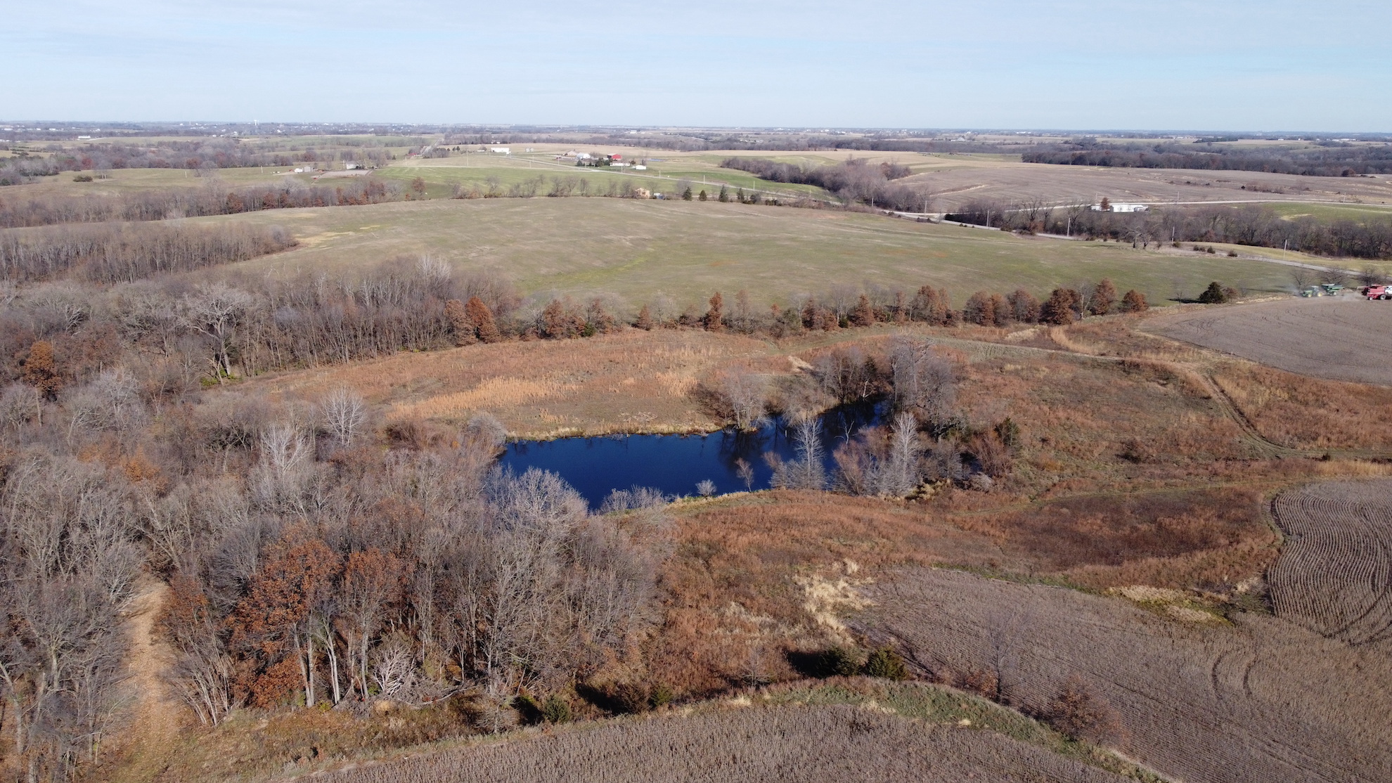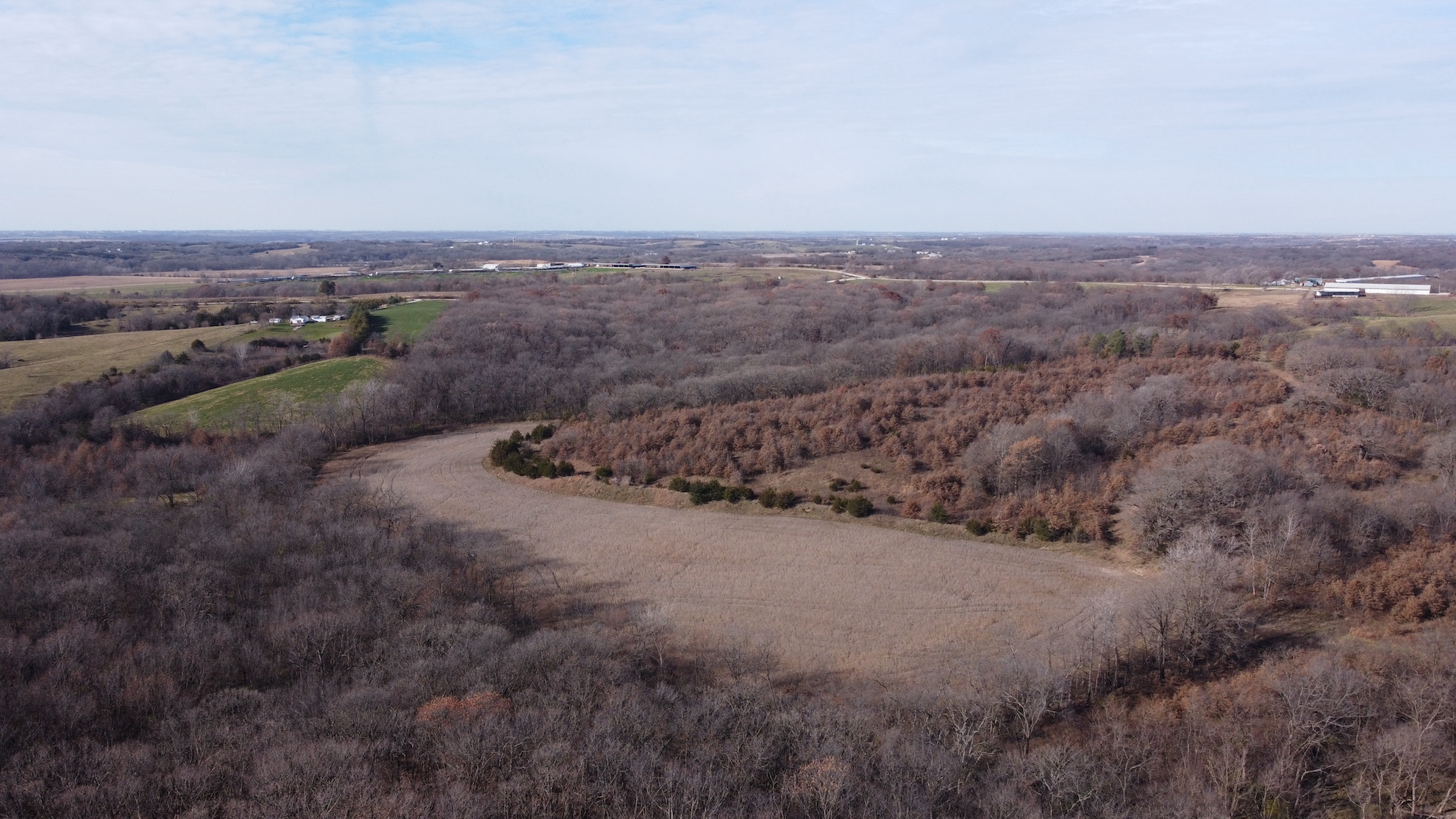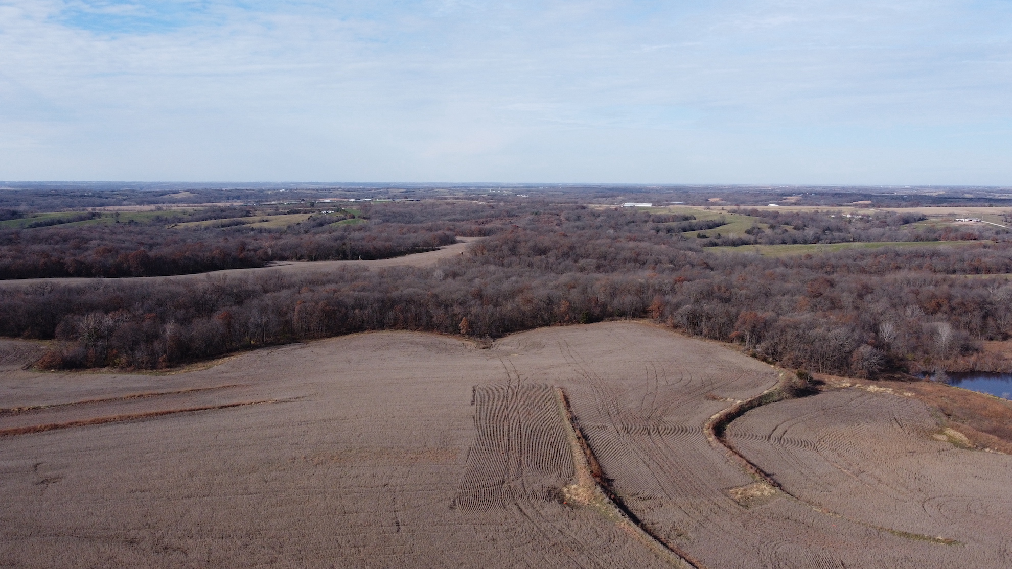 Everyone loves the combo farms and this is one of the best! Not only is it a combo farm, it’s the perfect 50/50 farm I hear buyers asking for on a daily basis. I could literally go on and on about all the great attributes this farm has but the one that sticks in my mind the most is that this farm has been very well cared for and rested in CRP for the past 40+ years and it is in great shape. On top of that it has everything buyers ask for, income, virgin hardwood timber, build site, great neighborhood, stocked pond, tillable land improvements, thick brushy areas, hard surface road frontage with all utilities available, established food plots, elevated tower blinds, and a set of sheds that document a 190” class typical roamed this property just a couple years ago! Simply put this farm impressed me as much as any farm of this size has in years.