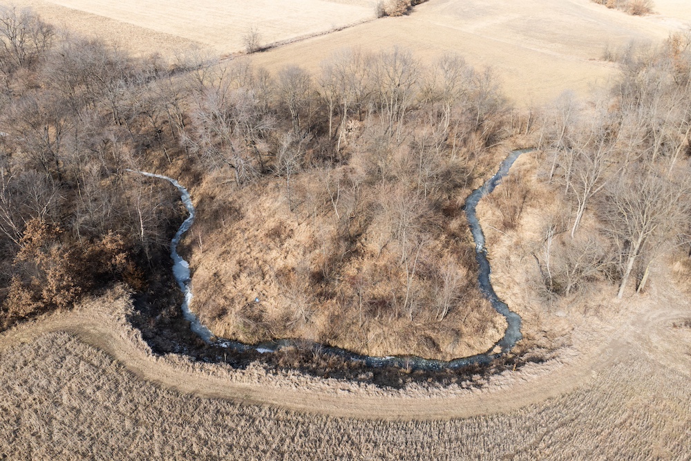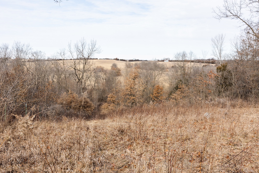 A well-established trail system guides you throughout the farm, leading to a scenic bluff with mature white oaks and a beautiful pond that serves as a natural draw for wildlife. As you wind back down into the creek bottom, you come to the food plots. They lay low in the topography, along the creek which is lined with timber, including black walnuts.