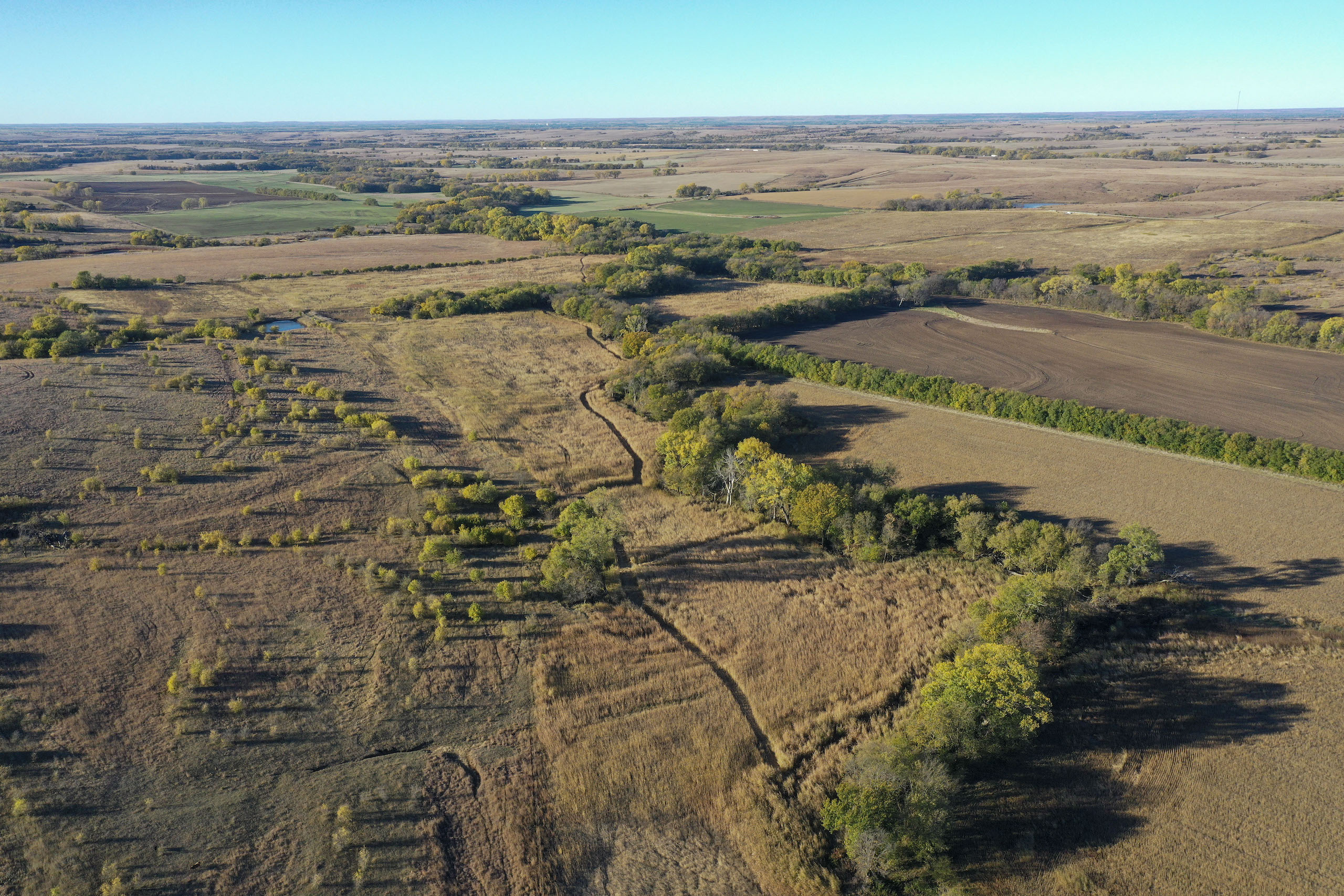 Whether you are looking to own a tract that can produce giant whitetails or serve as a versatile cattle farm or both, this is a dream come true. From a hunting standpoint, this farm checks all the boxes; Thick, dense hardwood cover, planted acres for feeding areas, tall grass and Sudan bedding areas, brushy pasture draws that we all think of when we think of Kansas deer and several ponds for year-round water. It doesn’t hurt that it all is located in an area known for huge antlered deer and high numbers of turkey. The design of the property lends itself to a surprising amount of different hunting scenarios and setups. Along with this being an exceptional hunting farm, it also boasts 223.24 acres of productive tillable and 202 acres of fenced pasture for added income potential. Farms like this don’t show up on the market often in this area, so contact the listing agent ASAP.