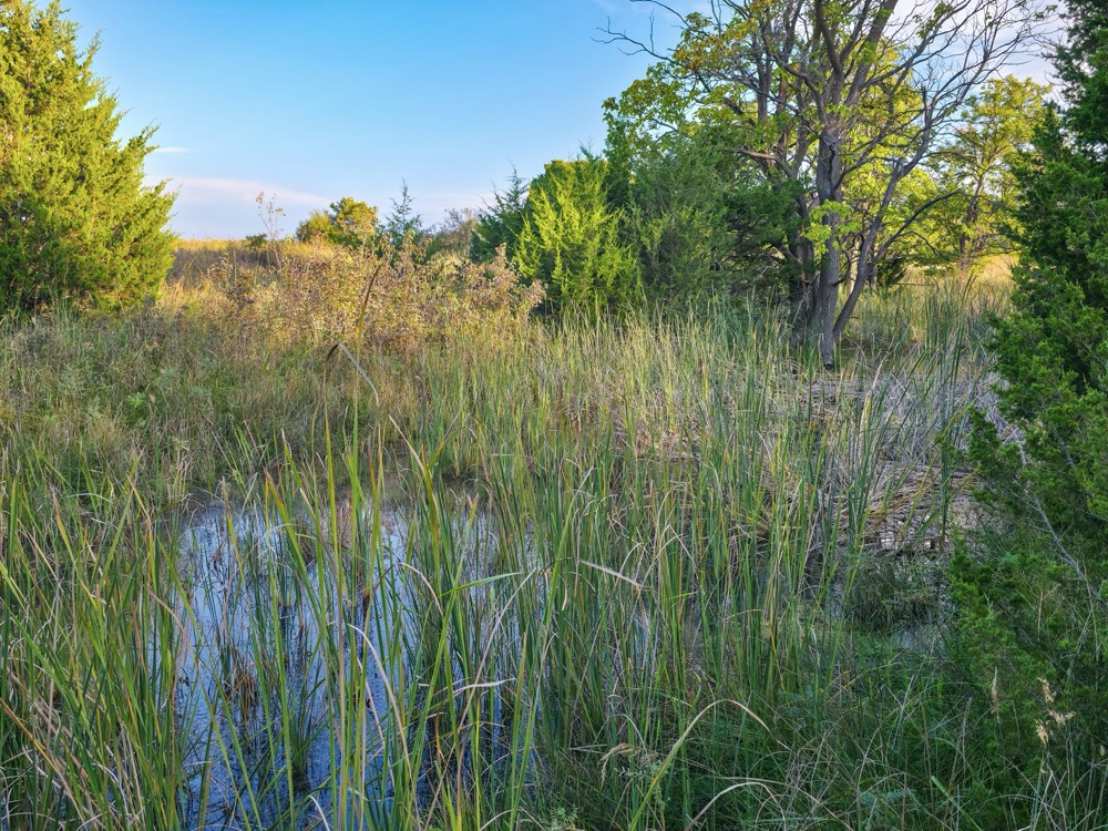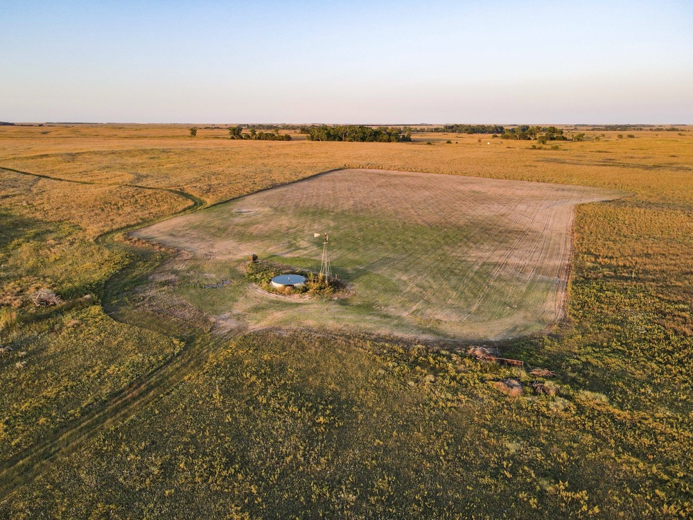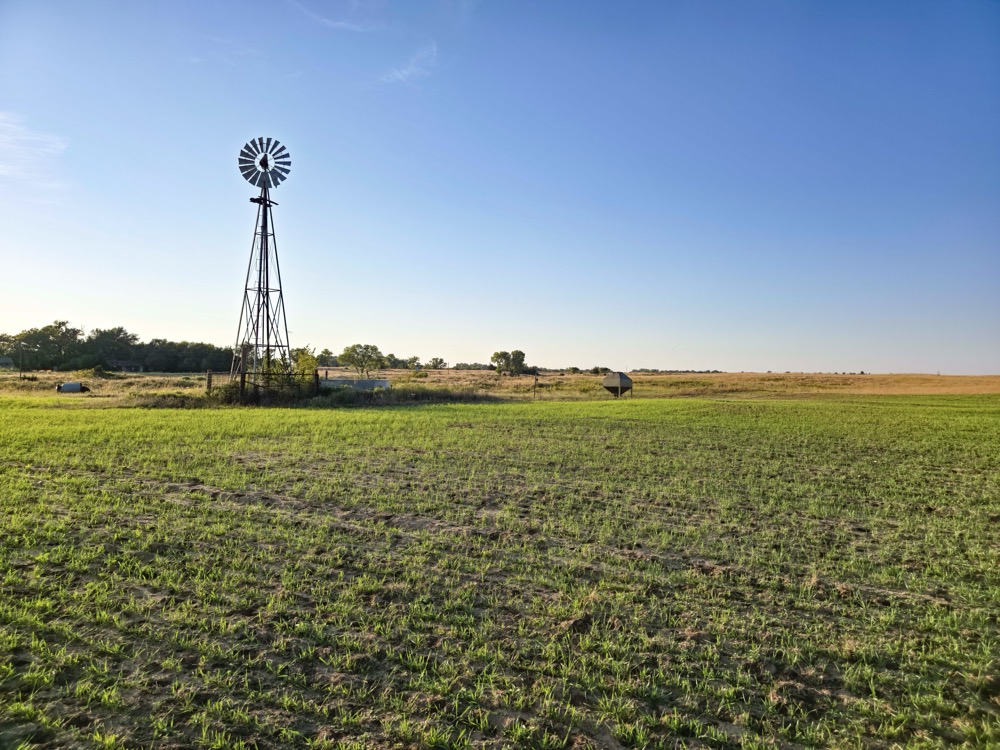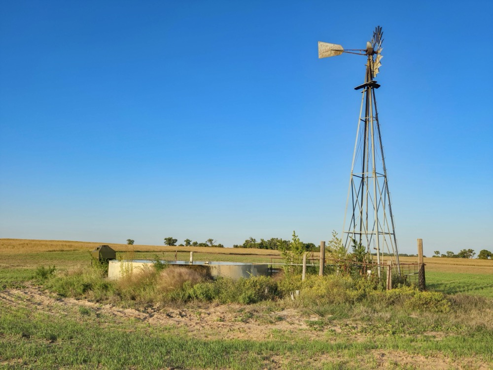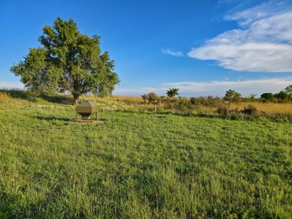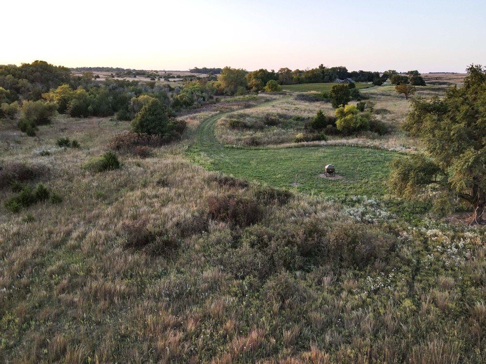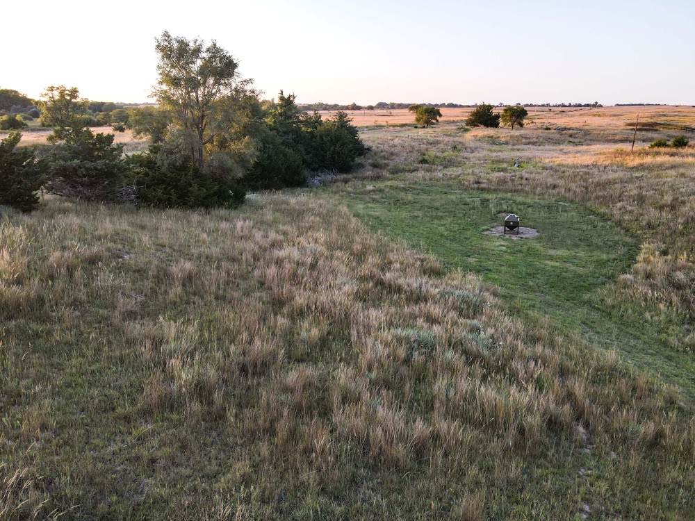 The terrain features thick grass, scattered timber, and a marshy band on the western side of the property. These natural features provide varied habitat structure which supports deer, turkey, and upland game. Two established food plots are present, along with multiple feeders already in place. A windmill offers a consistent water source. The grass across the property is in good condition, which aids both habitat quality and ease of access.
