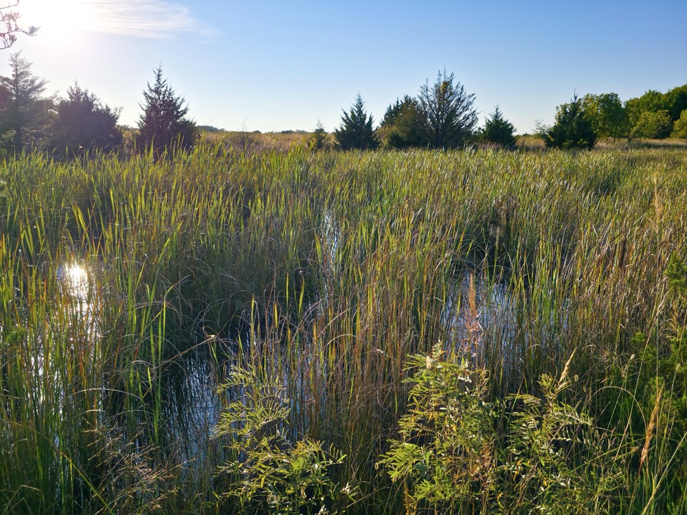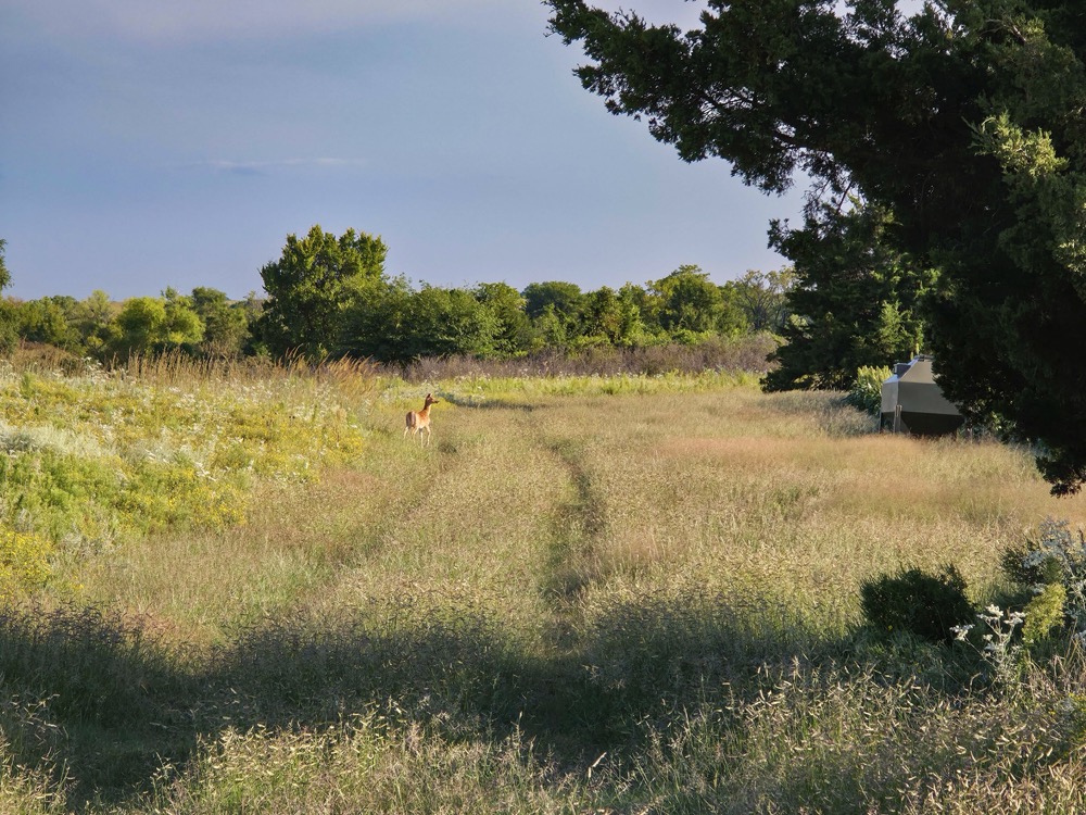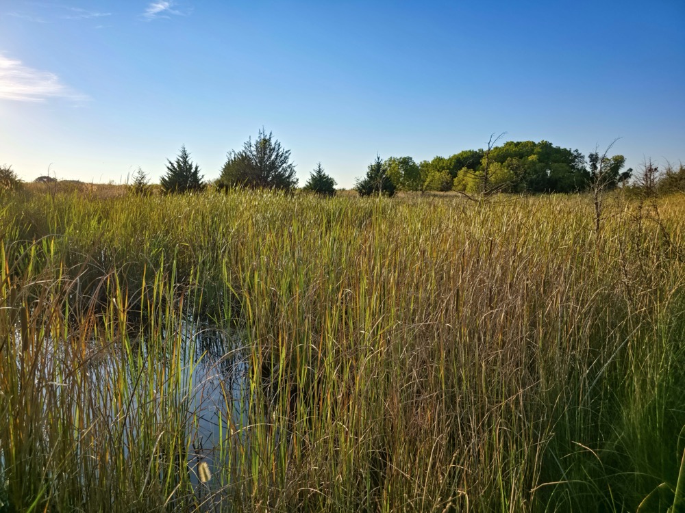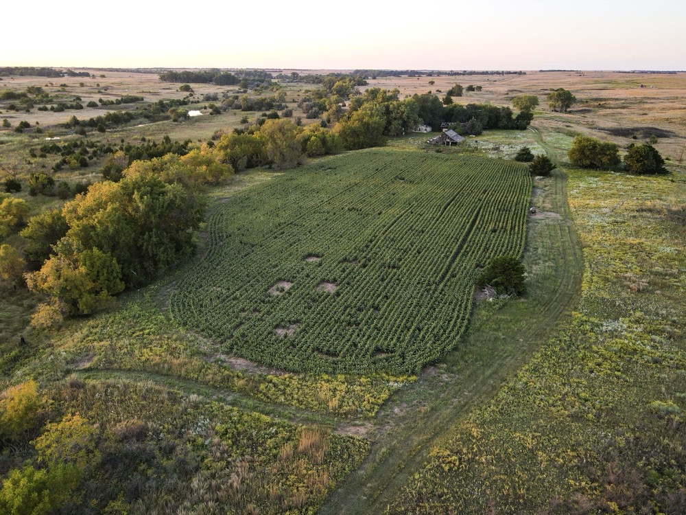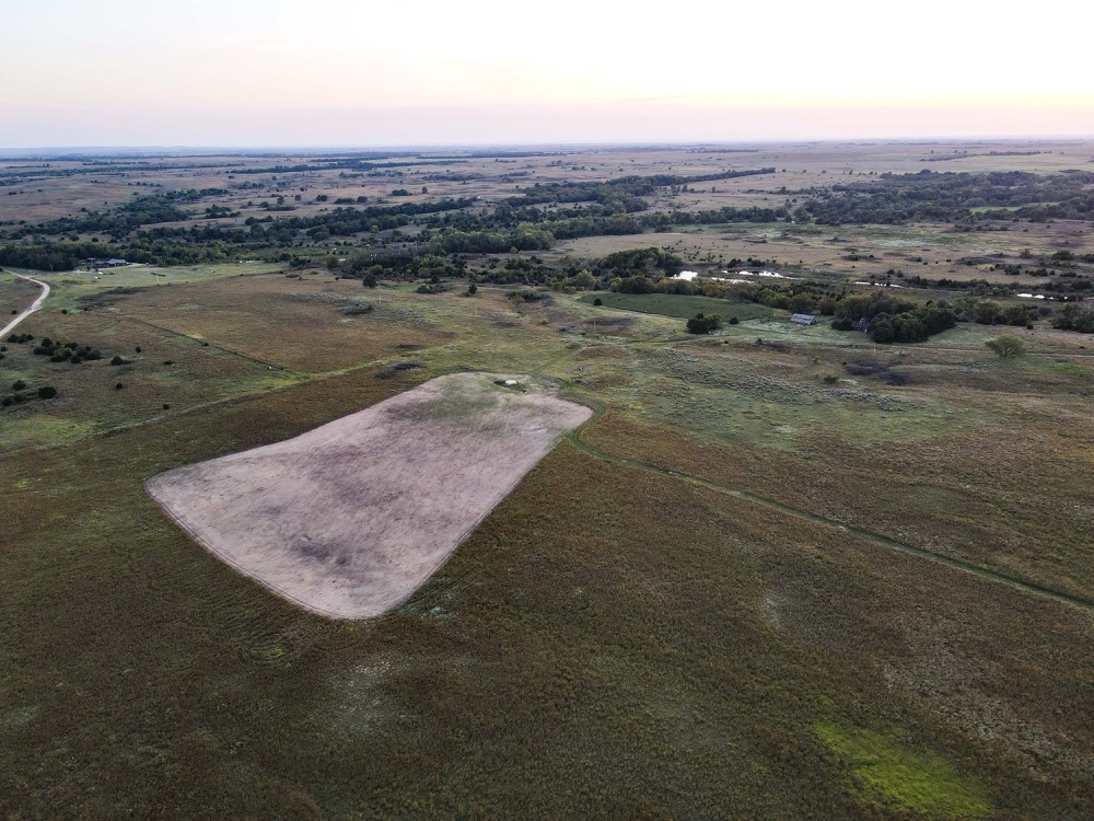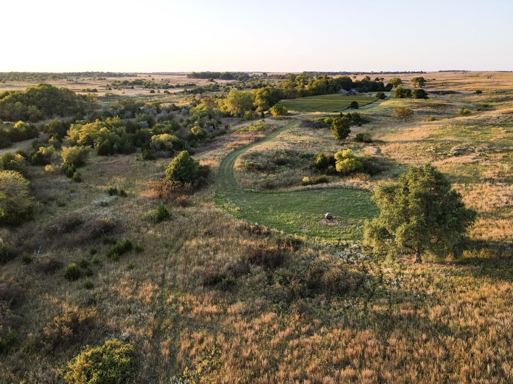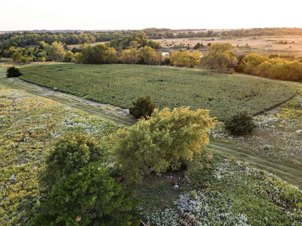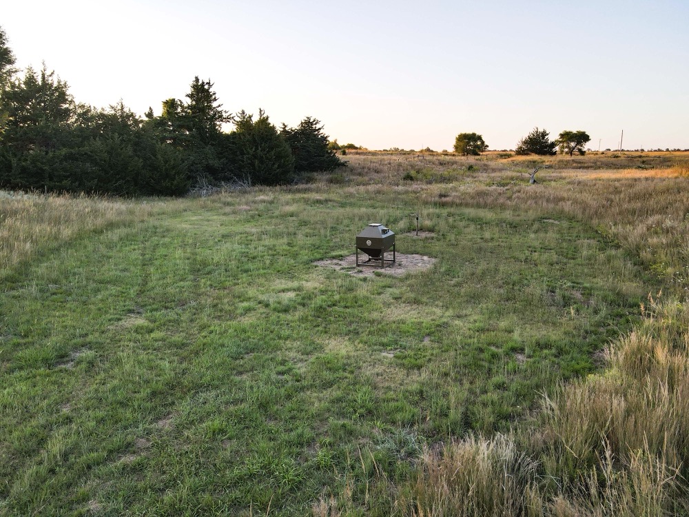 The terrain features thick grass, scattered timber, and a marshy band on the western side of the property. These natural features provide varied habitat structure which supports deer, turkey, and upland game. Two established food plots are present, along with multiple feeders already in place. A windmill offers a consistent water source. The grass across the property is in good condition, which aids both habitat quality and ease of access.