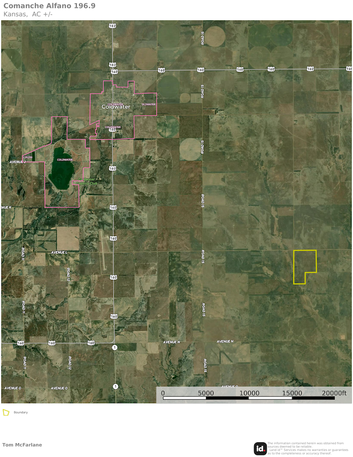 This 196.9 +/- acre tract in Comanche County, Kansas, is located southeast of Coldwater, KS. The property is in hunting Unit 16 and offers a combination of cover types suitable for wildlife habitat and multiple recreational uses.