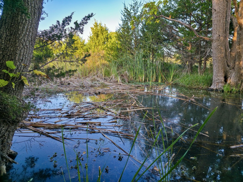 Wildlife cover is excellent thanks to a mix of grass, marsh, timber, and food plots. The marshy area adds wetland edge habitat beneficial to waterfowl. The timber provides roosting or hiding cover for turkey and deer.