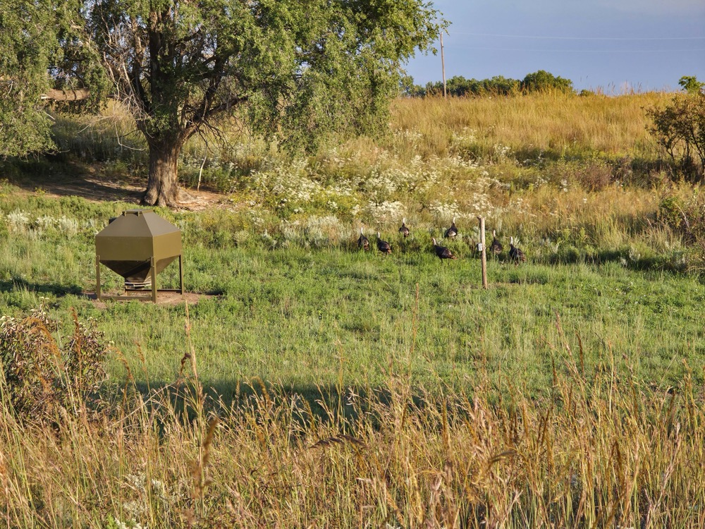 Hunting opportunities include potential trophy deer, turkey, and various upland game species. The diversity of cover (grass, timber, marsh) enhances habitat for a range of wildlife. The existing feeders and food plots help attract and support game. Water supplied via windmill ensures a water source for wildlife and possibly for livestock.