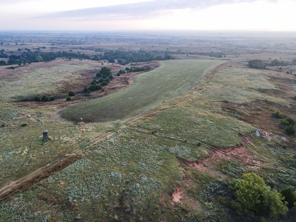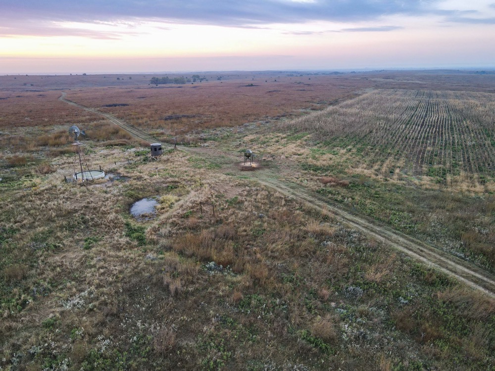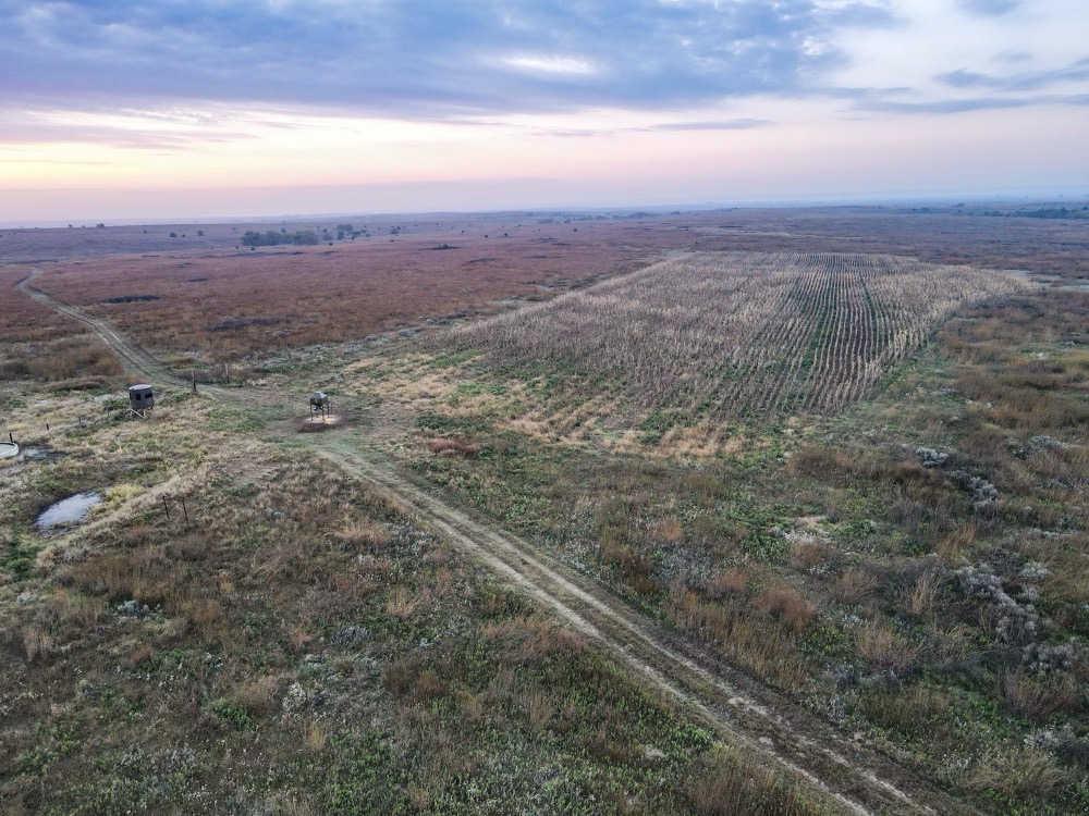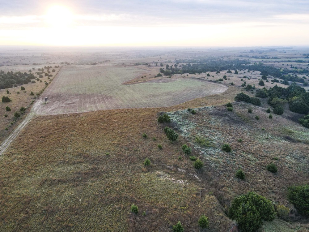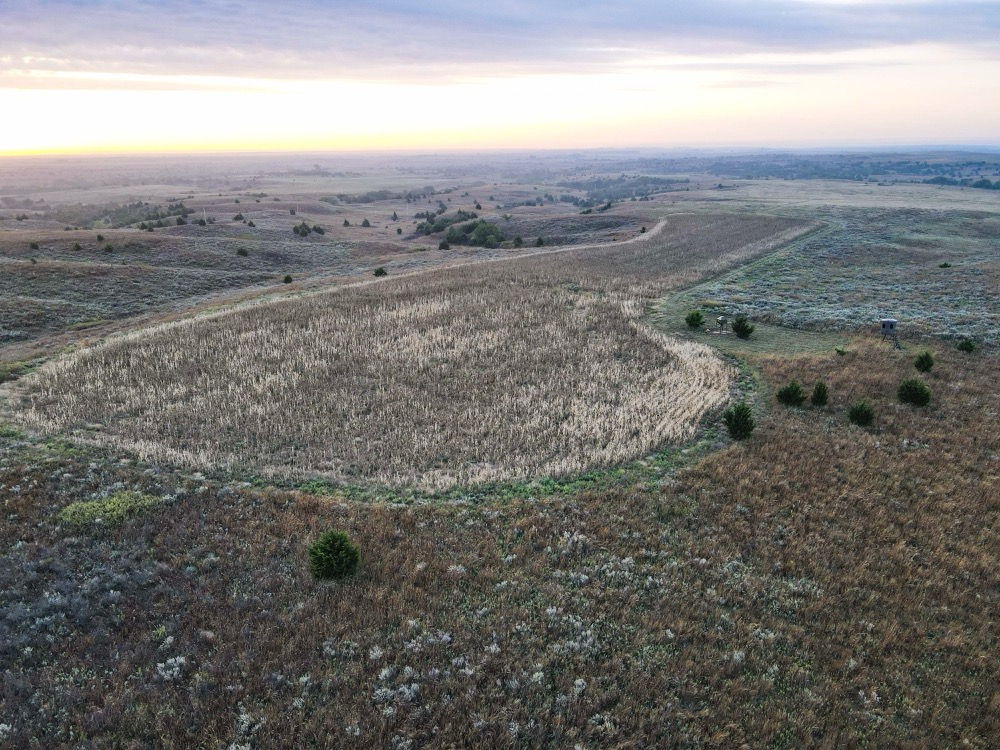 The property’s habitat is tailor-made for producing and sustaining trophy-class deer. A desirable mix of grasslands and rugged terrain provides both security and forage, while wet bottoms, natural springs, and rolling hills add diversity and sustain wildlife populations. The towering cottonwoods, scattered cedars, and sand plum thickets create ideal cover and bedding areas. Meanwhile, the approximately 216 acres of high-quality tillable land ensure a reliable food supply, capable of producing crops such as wheat, milo, and alfalfa, to attract and hold deer throughout the year. Several small hunting plots, approximately 80 acres in total, are already established, with numerous opportunities to expand.