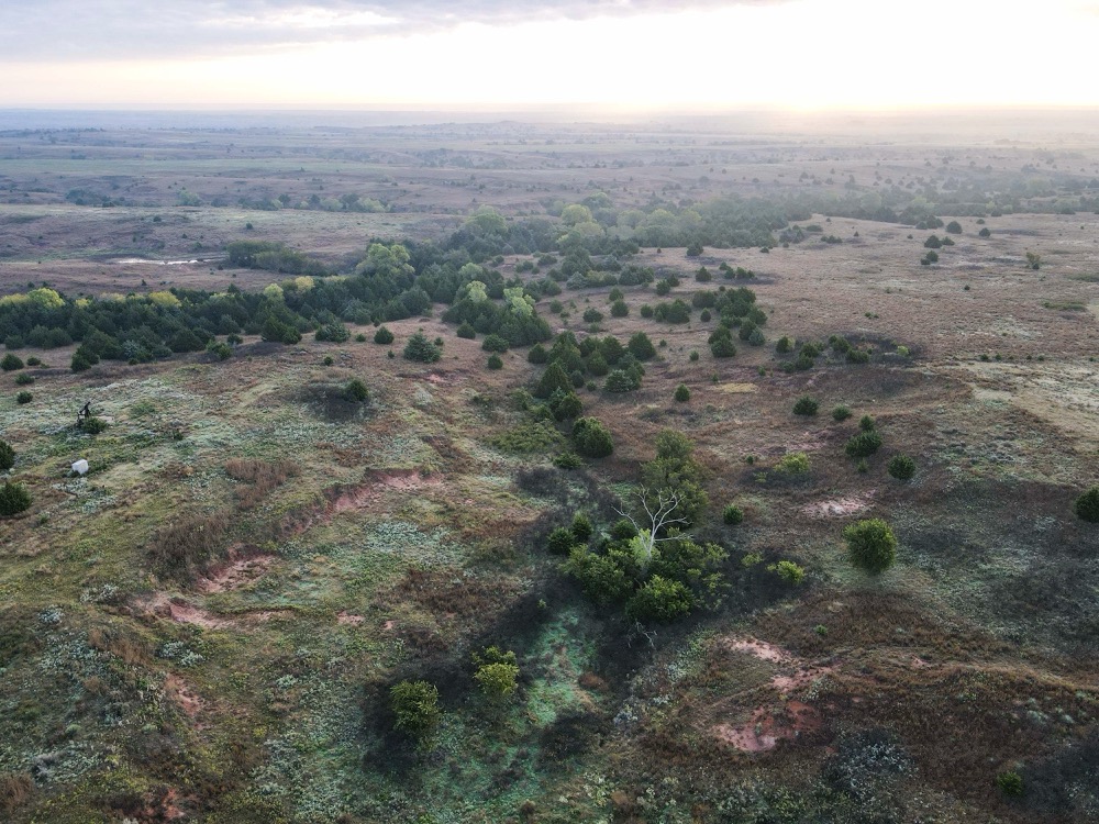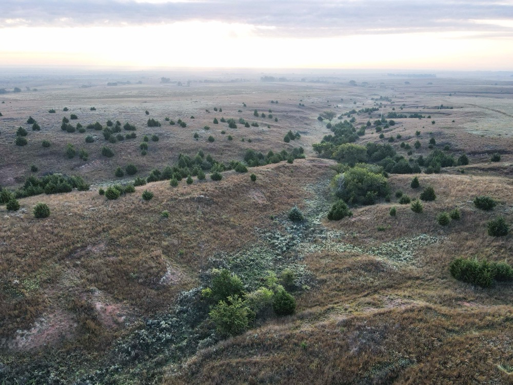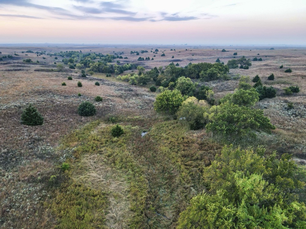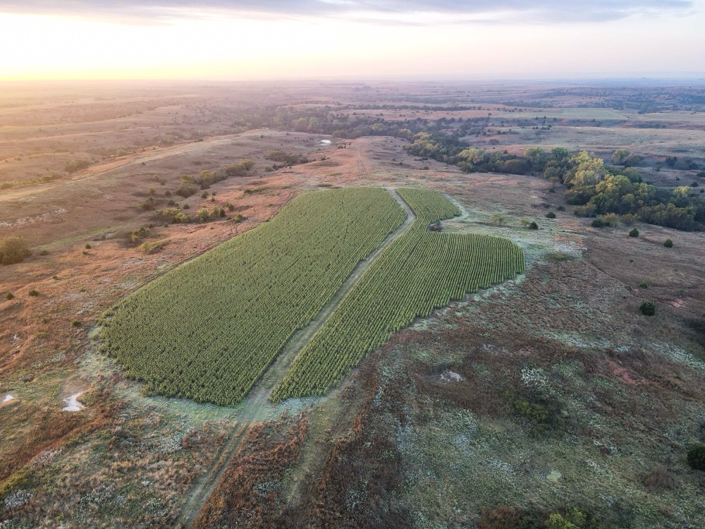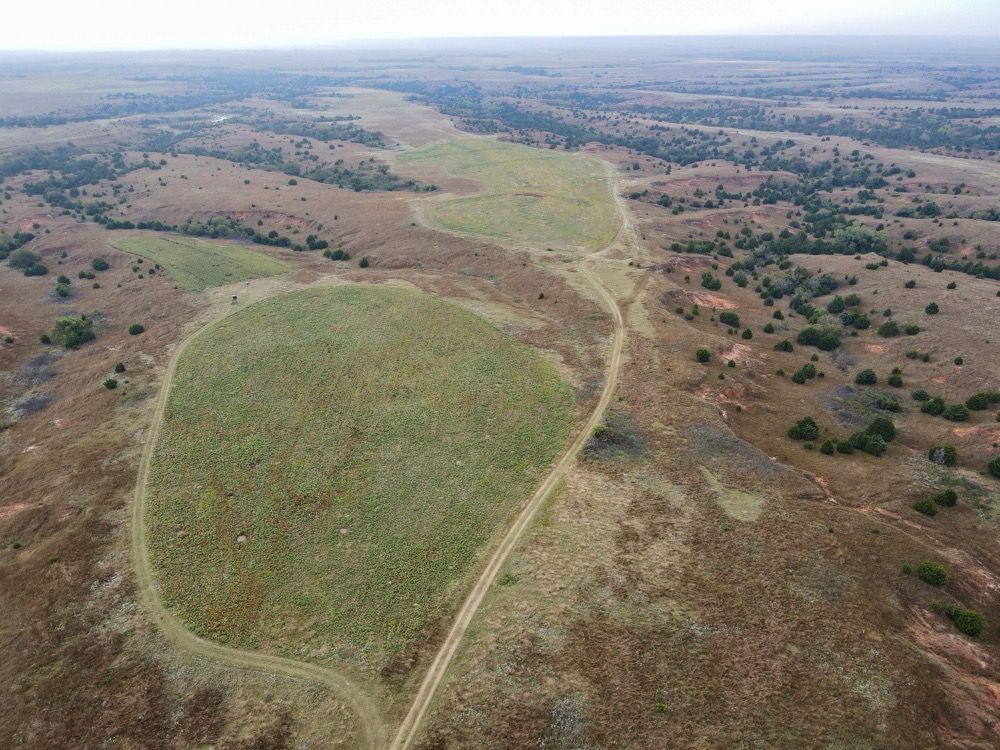 The property’s habitat is tailor-made for producing and sustaining trophy-class deer. A desirable mix of grasslands and rugged terrain provides both security and forage, while wet bottoms, natural springs, and rolling hills add diversity and sustain wildlife populations. The towering cottonwoods, scattered cedars, and sand plum thickets create ideal cover and bedding areas. Meanwhile, the approximately 216 acres of high-quality tillable land ensure a reliable food supply, capable of producing crops such as wheat, milo, and alfalfa, to attract and hold deer throughout the year. Several small hunting plots, approximately 80 acres in total, are already established, with numerous opportunities to expand.