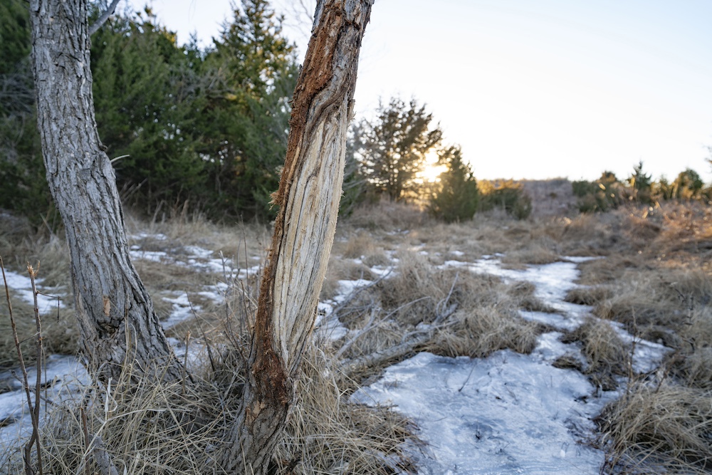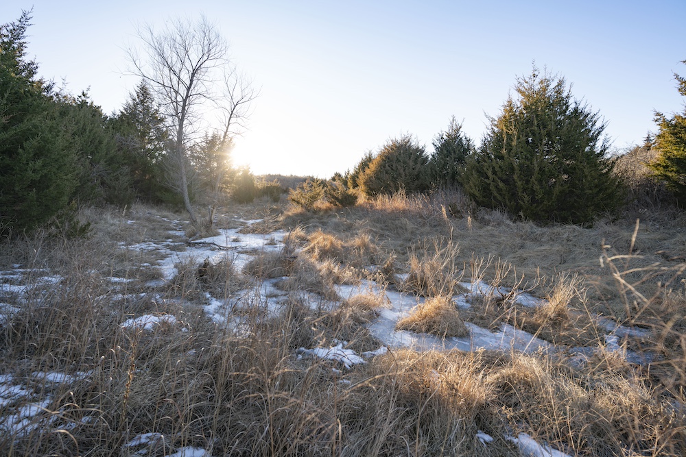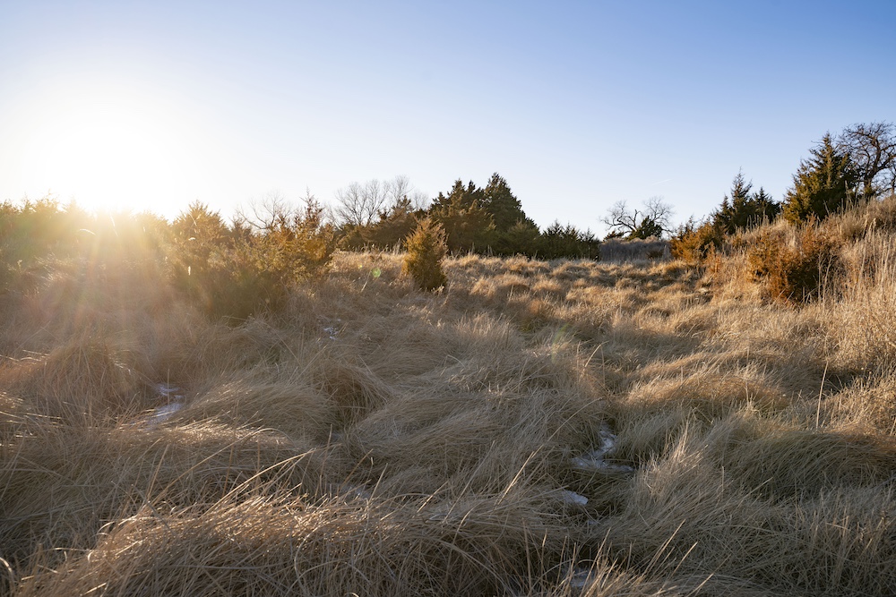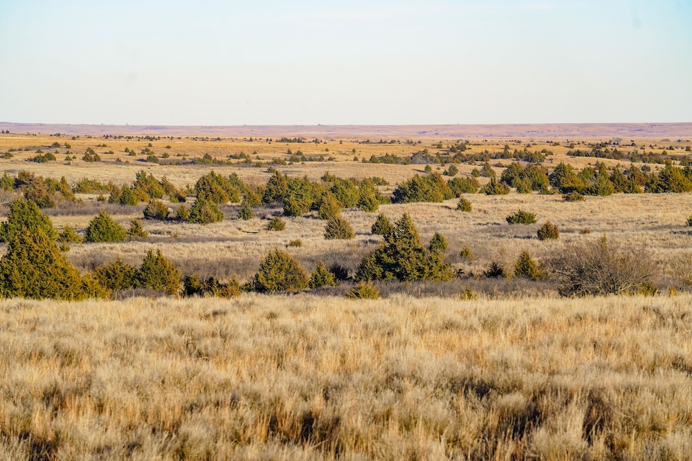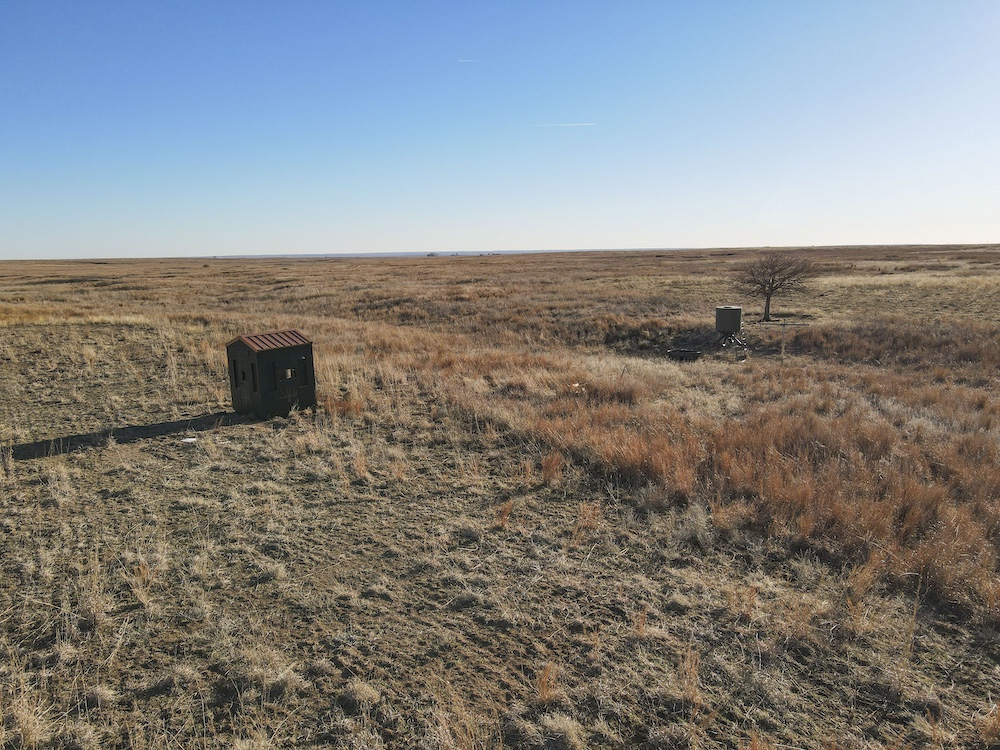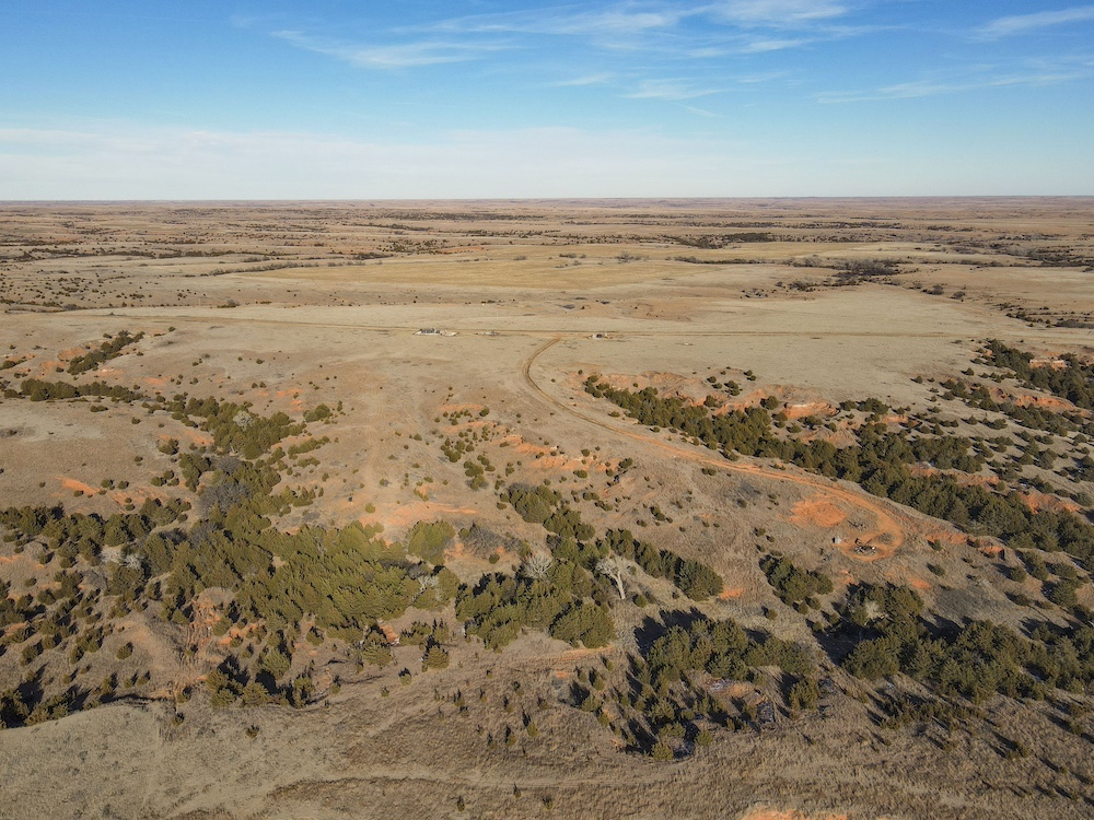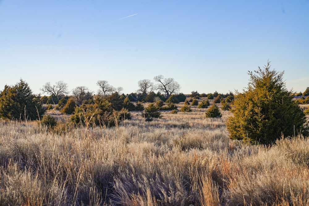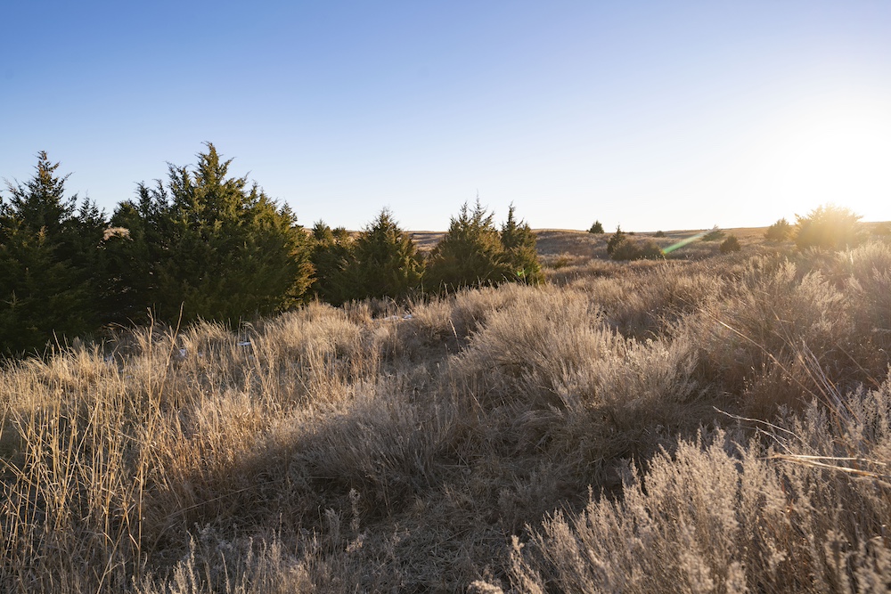 Indian Creek meanders through an expansive bottom in the NE corner of the property, adding an additional layer of natural beauty and wildlife habitat. The property also boasts grazing opportunities across its wide-open grasslands, which are dotted with cottonwoods, cedars, and sand plum thickets, providing cover and forage for a variety of species.