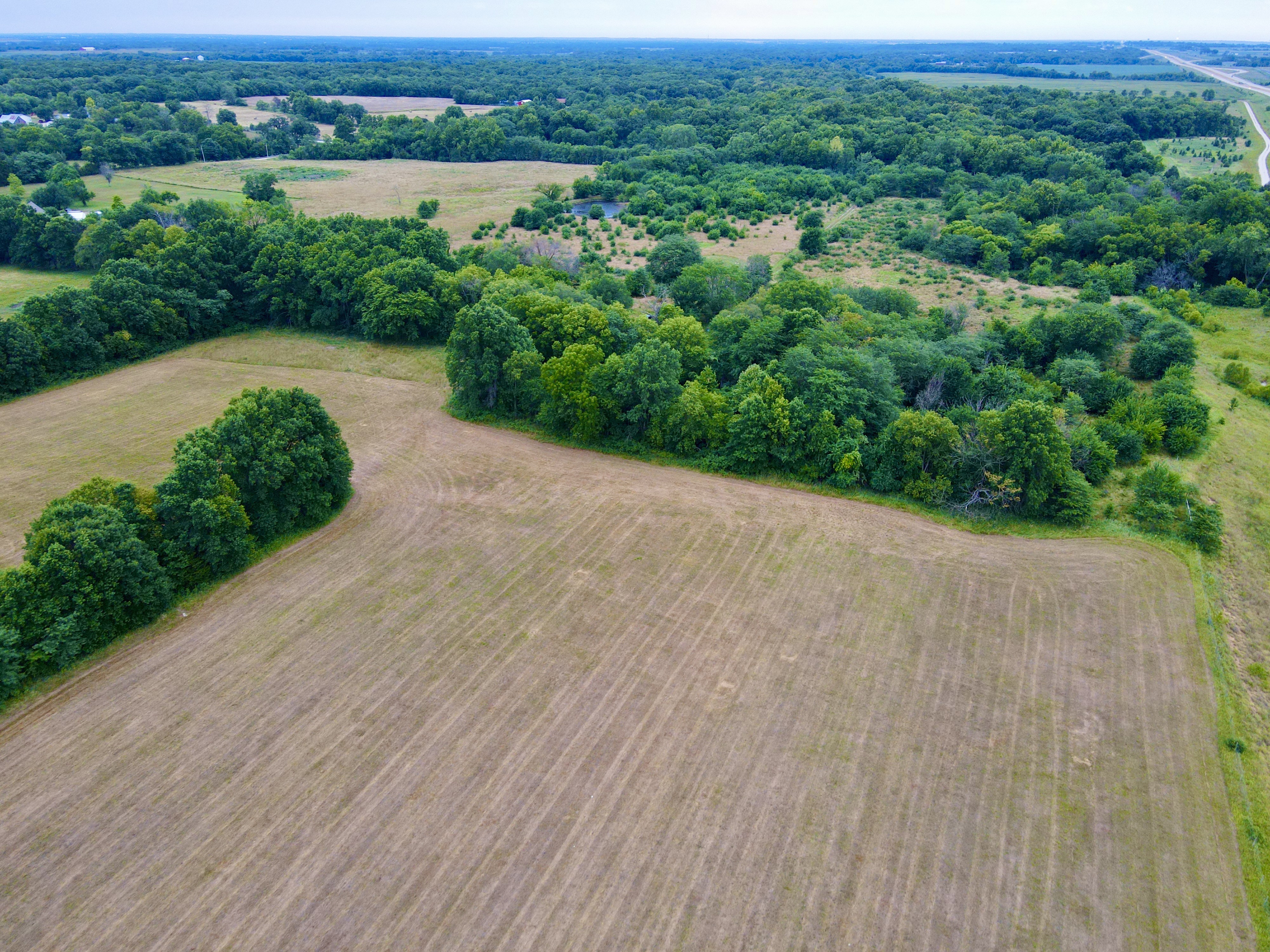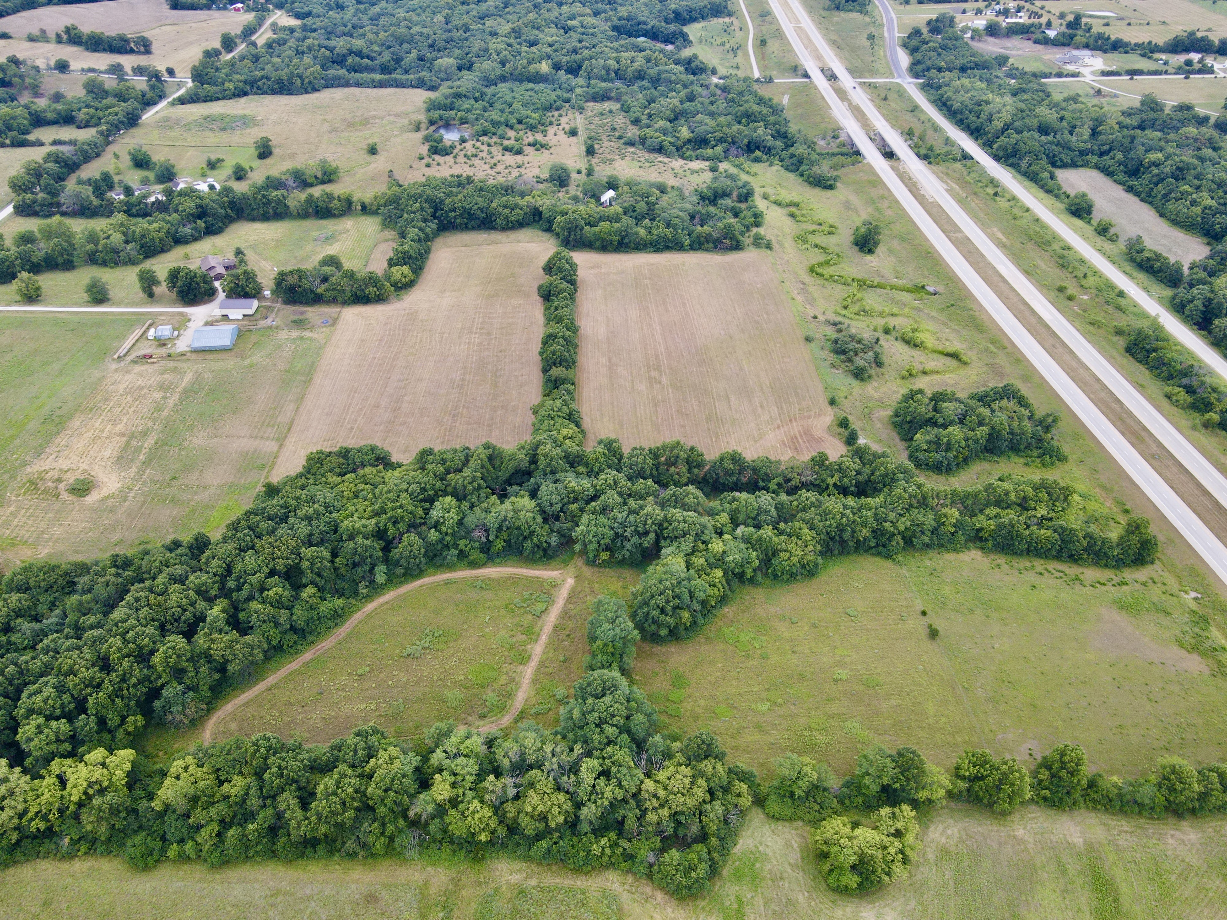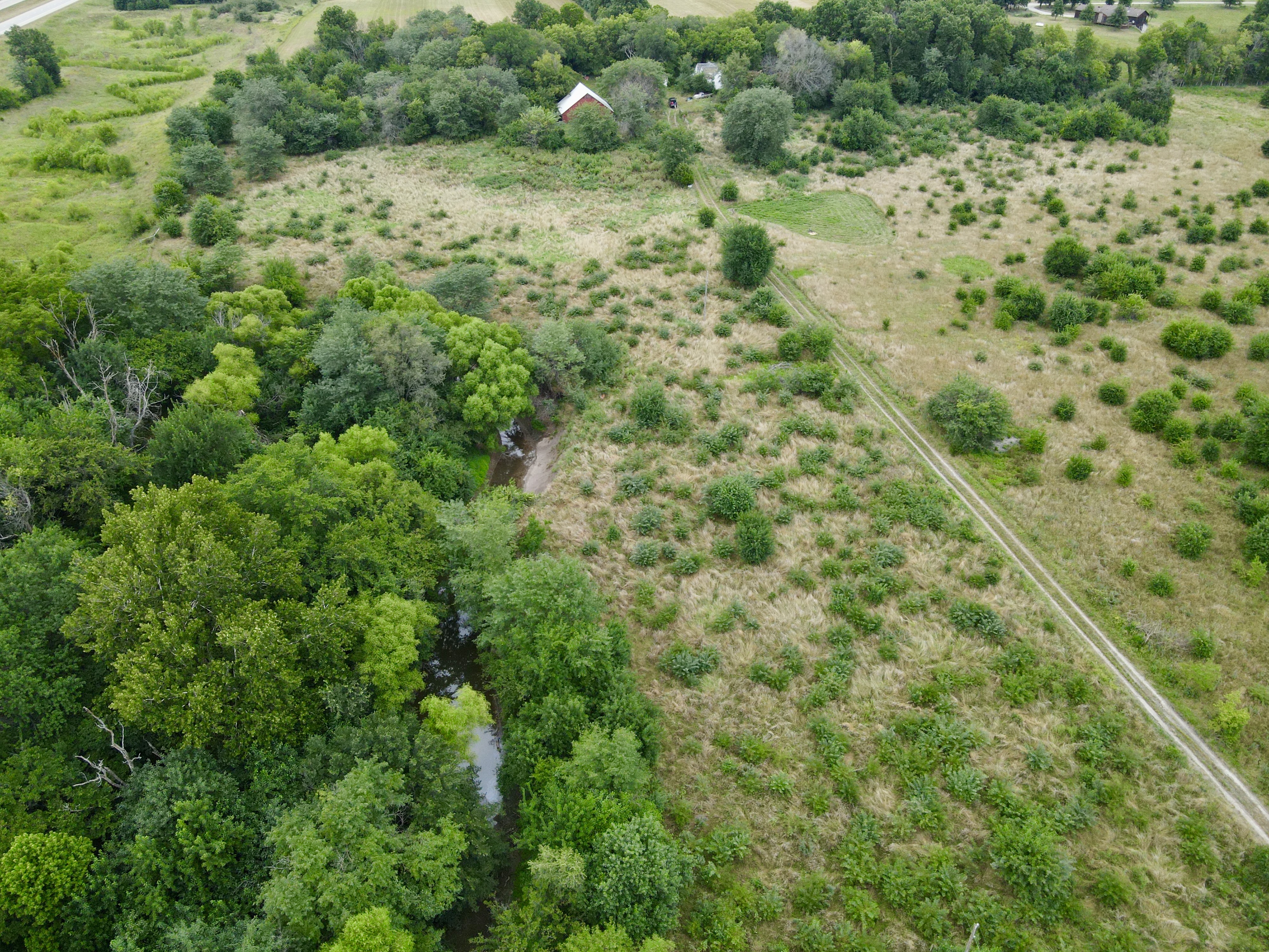 Located in the southern part of the county is this excellent 50 ac m/l buildable track with a lot of upsides. For starters, this farm has been allowed to return to its natural state in the southern 1/2 of the farm providing great cover for wildlife including turkeys, and some truly giant deer over the years. The property has 2 small ponds as well as a freshwater creek running through the SE corner of the property, providing year-round water for wildlife and livestock alike. There is cross fencing in place on the southern 1/2 of the farm if you are considering owning livestock. There are approx. 14 acres more or less currently being utilized for hay production, separated into 4 fields that potentially could be broken out for crop production or would make excellent food plot locations. Average annual hay yields are 60-80 big bails. One look at the trail cam photos and you can see the deer potential in the area! This property is located near 59 highway, but the frontage street does not have access to on-ramps for the highway, reducing the amount of traffic one would expect. Electric service and well water are located at the old homesite located in the center of the property far away from the potential dust from the road to the south. There is an old barn in decent condition as well as a garage shed that can be used to keep your smaller equipment in if desired. The original house is still standing but would likely need to be removed if you are wanting to build in this location. Located only 15 minutes south of Lawrence, and approx. 35 minutes from greater Kansas City, this property is a must-see if you are looking for that little country get-a-way outside of the city. Contact the listing agent today for more information, or to schedule your own 1-on-1 showing.