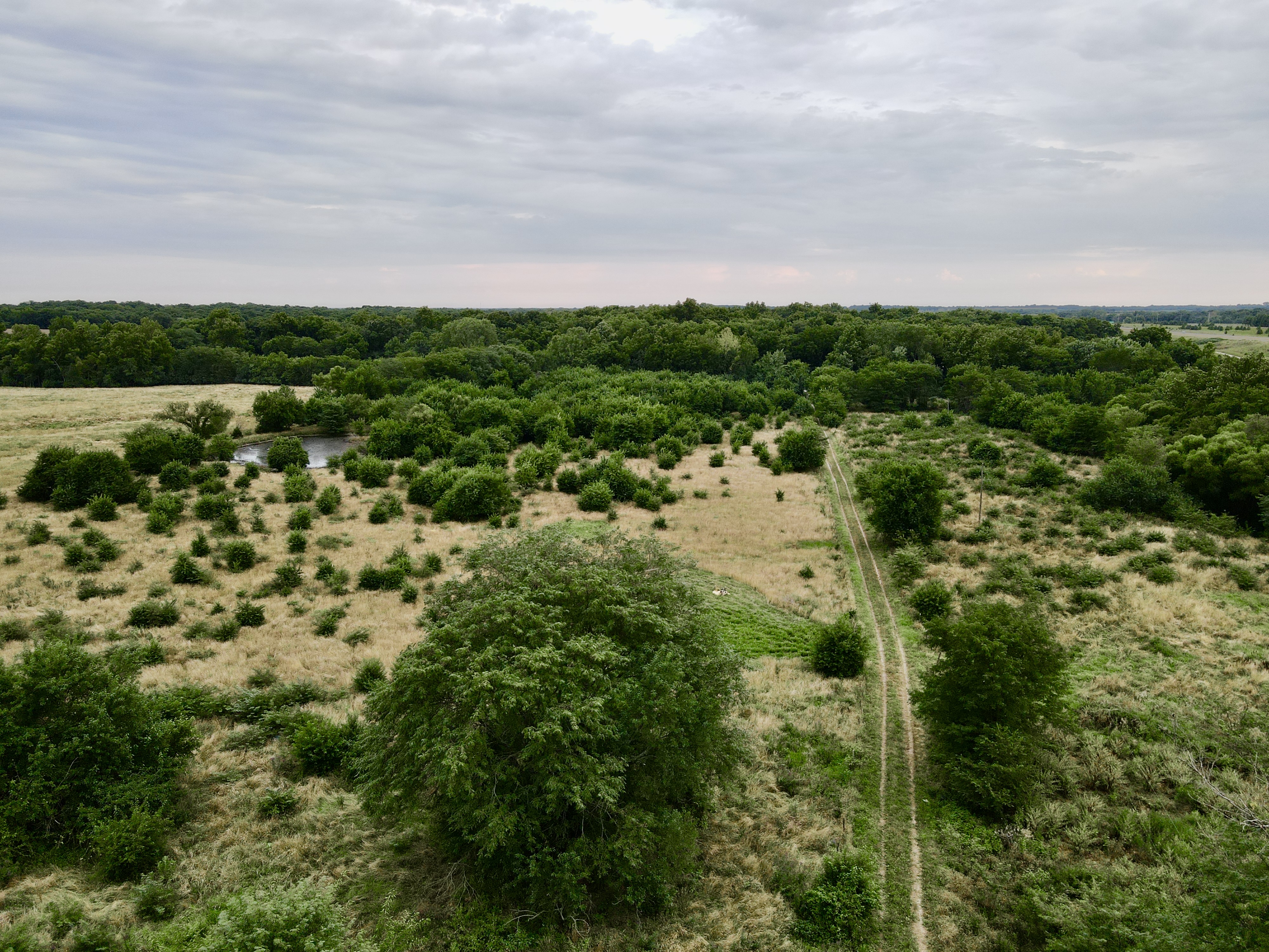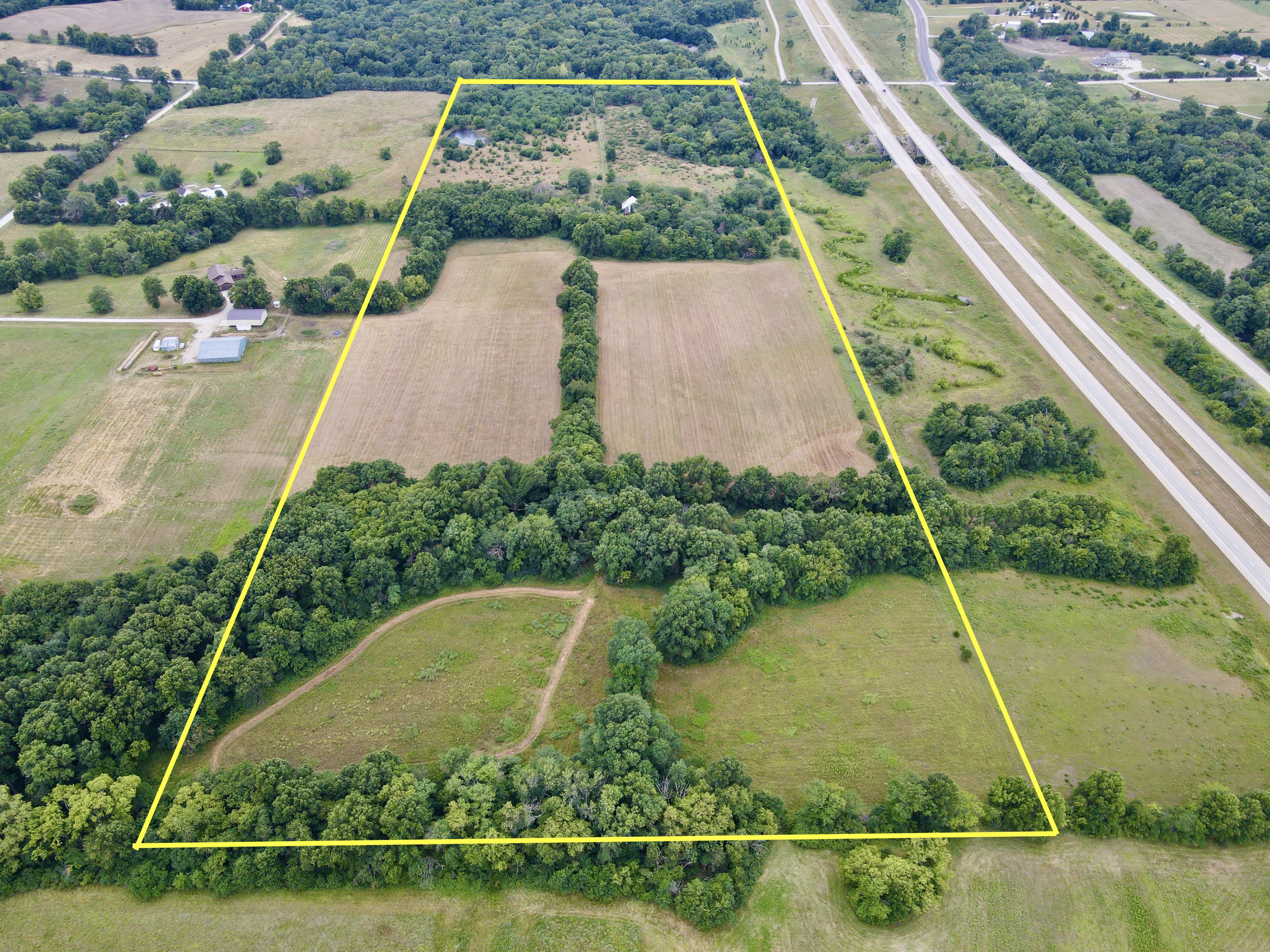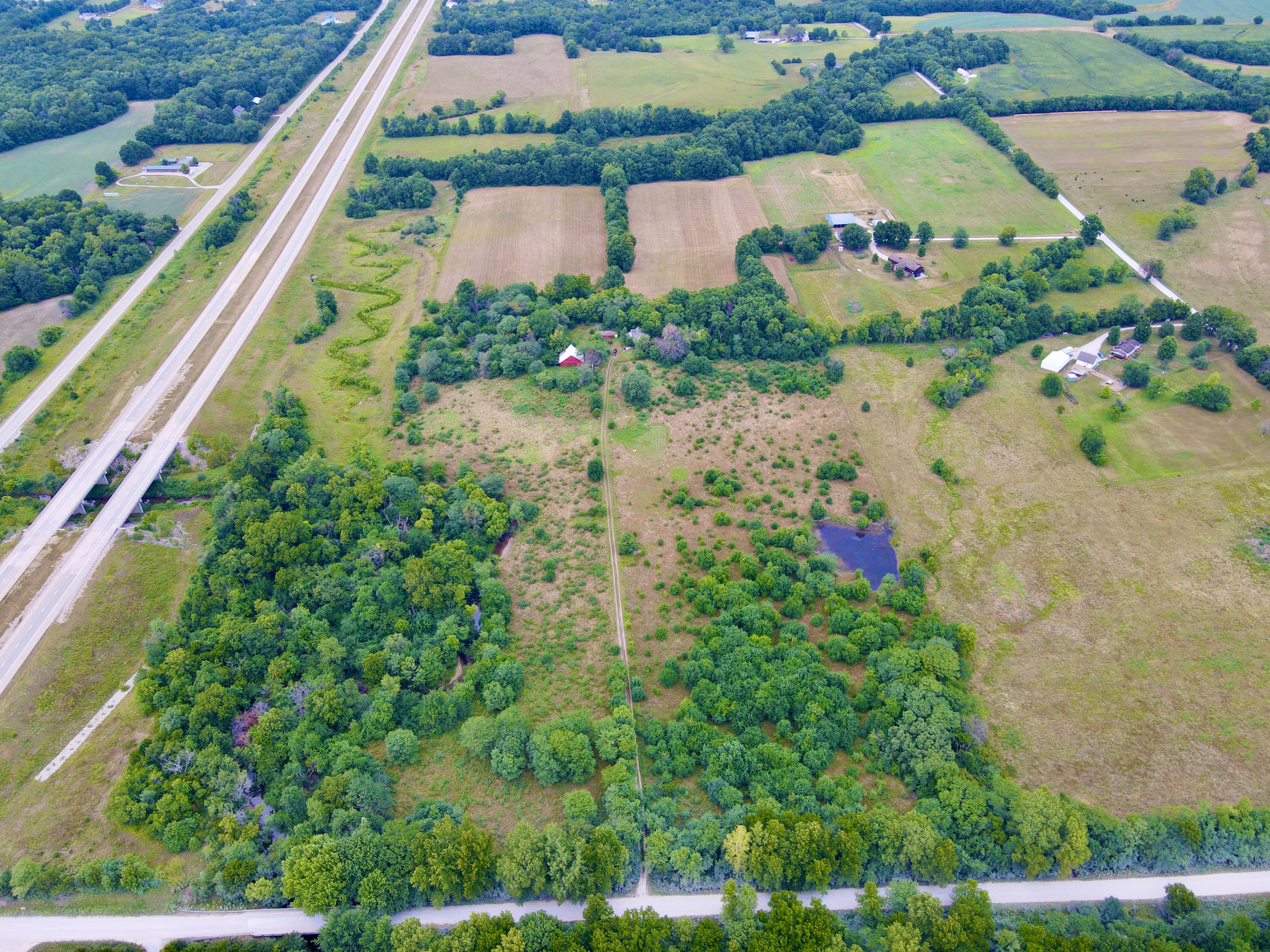 Located in the southern part of the county is this excellent 50 ac m/l buildable track with a lot of upsides. For starters, this farm has been allowed to return to its natural state in the southern 1/2 of the farm providing great cover for wildlife including turkeys, and some truly giant deer over the years. The property has 2 small ponds as well as a freshwater creek running through the SE corner of the property, providing year-round water for wildlife and livestock alike. There is cross fencing in place on the southern 1/2 of the farm if you are considering owning livestock. There are approx. 14 acres more or less currently being utilized for hay production, separated into 4 fields that potentially could be broken out for crop production or would make excellent food plot locations. Average annual hay yields are 60-80 big bails. One look at the trail cam photos and you can see the deer potential in the area! This property is located near 59 highway, but the frontage street does not have access to on-ramps for the highway, reducing the amount of traffic one would expect. Electric service and well water are located at the old homesite located in the center of the property far away from the potential dust from the road to the south. There is an old barn in decent condition as well as a garage shed that can be used to keep your smaller equipment in if desired. The original house is still standing but would likely need to be removed if you are wanting to build in this location. Located only 15 minutes south of Lawrence, and approx. 35 minutes from greater Kansas City, this property is a must-see if you are looking for that little country get-a-way outside of the city. Contact the listing agent today for more information, or to schedule your own 1-on-1 showing.