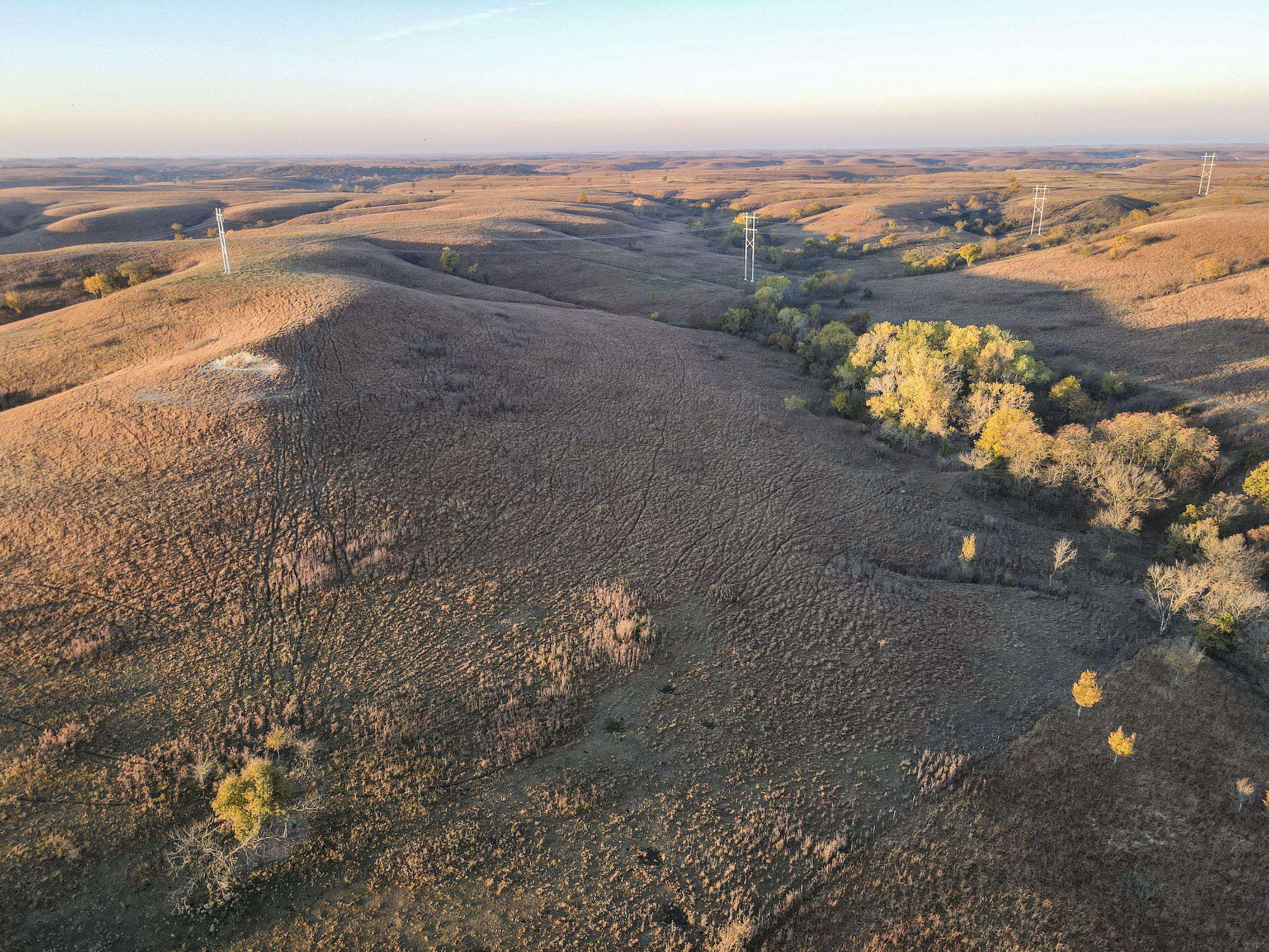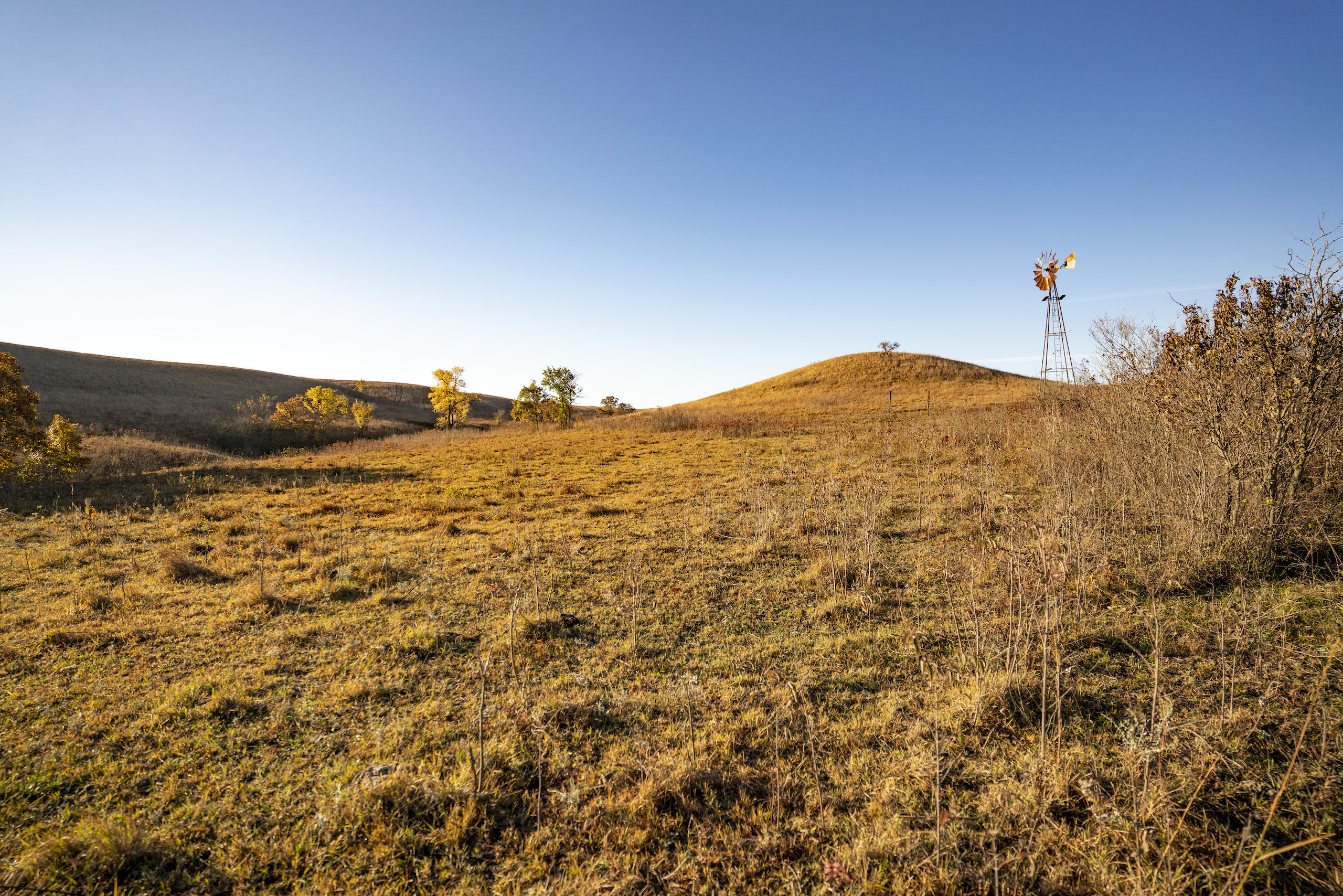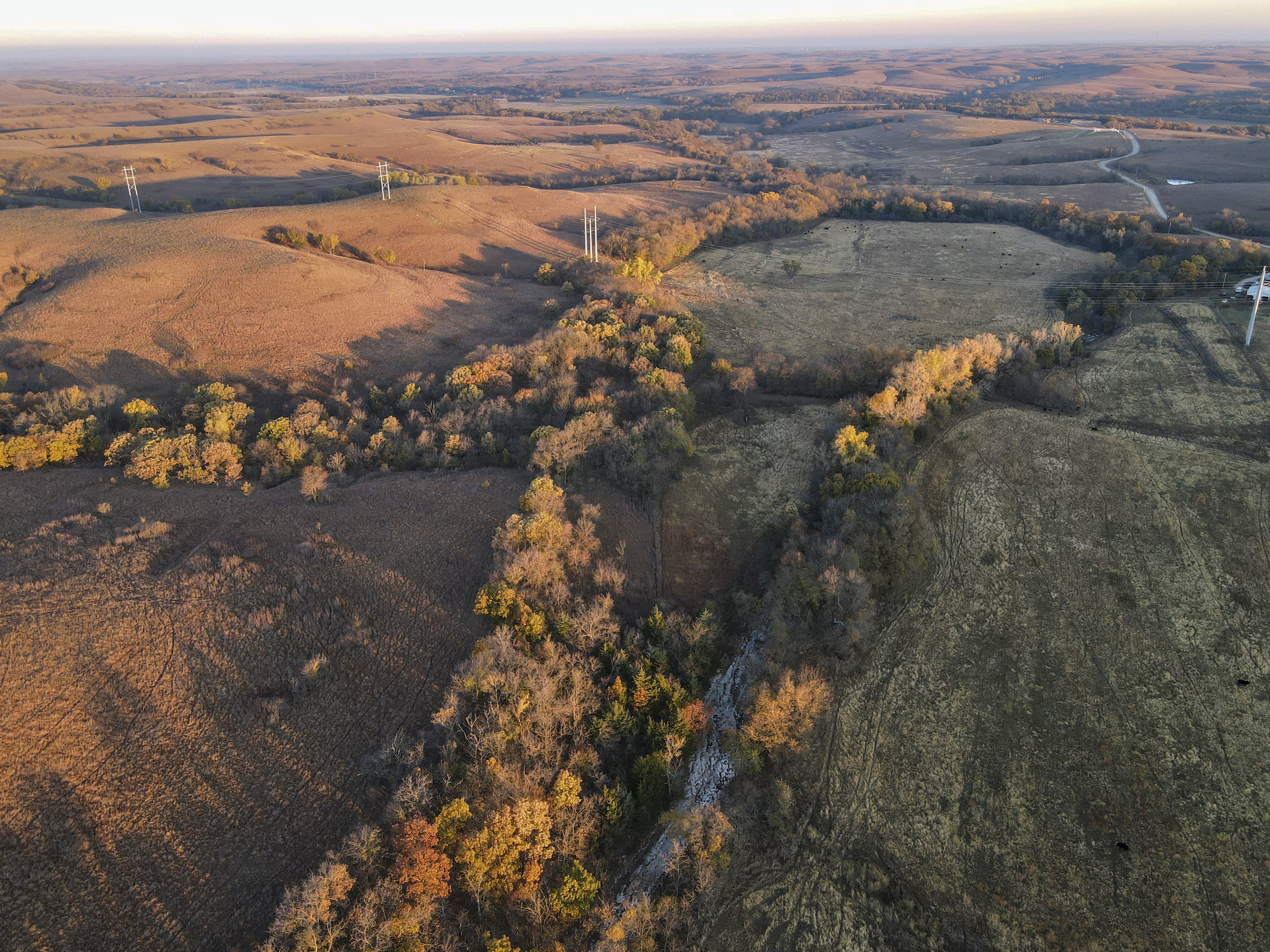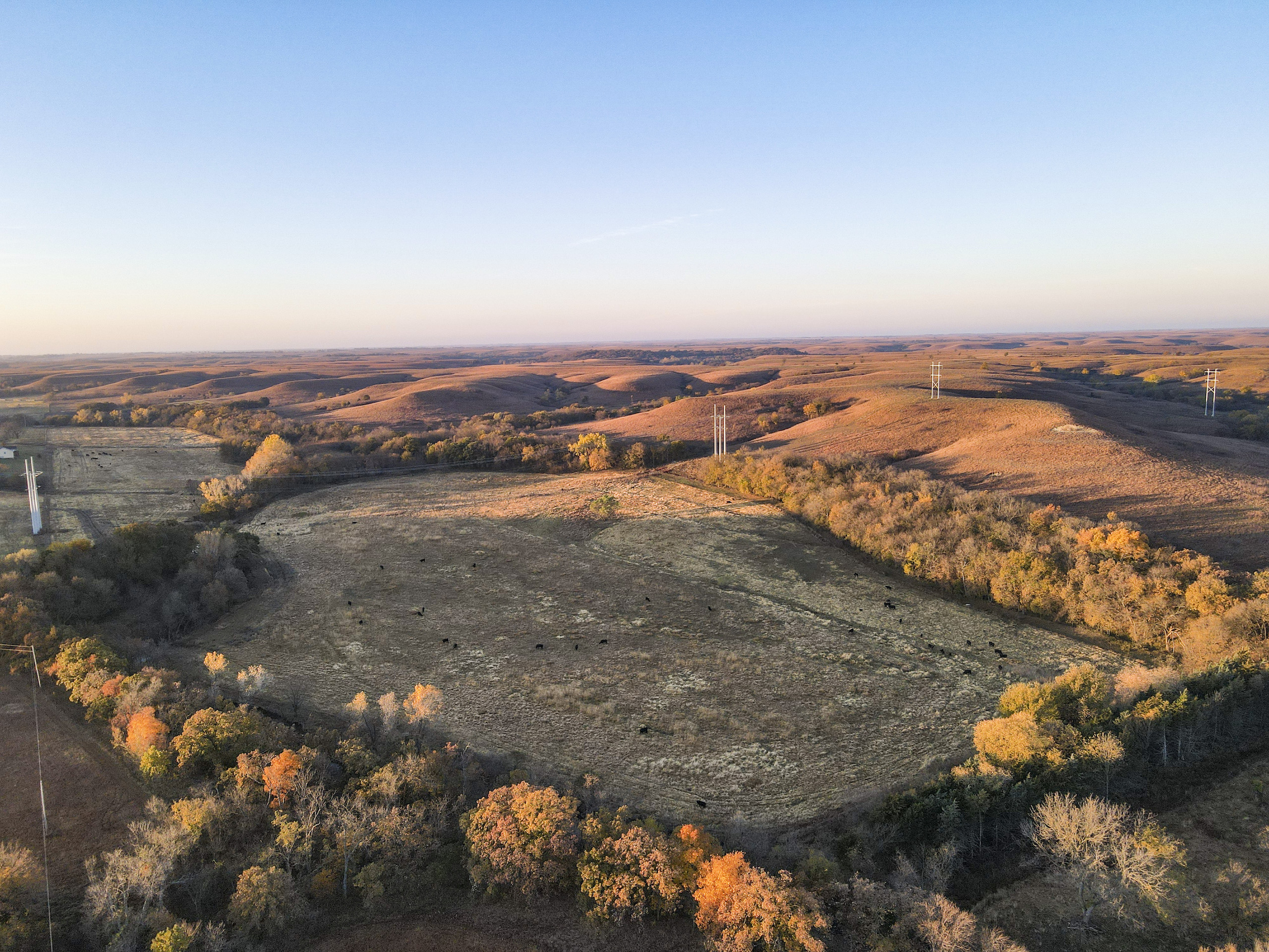 Located in the heart of the Flint Hills just south of Manhattan this picturesque property offers incredible recreational opportunities and great grass for livestock. The property features traditional Flint Hills terrain with hilltops dropping down into wooded valleys below. Horne Branch flows along the eastern side of the property with flat, open meadows alongside. A 19-acre brome field provides supplemental hay for cattle or a small additional income. You can also choose to break out tillable acres for recreational purposes and take advantage of the Class II & III soils. Timber stretches alongside Horne Branch and the bottom of the hillsides, cutting through the valley bottoms providing great cover for wildlife. There is plenty of sign with trails, tracks, rubs, and scrapes all throughout. This property has not been hunted for years, but the area is known for record book deer roaming throughout the hills. The lone pond on the property is approximately .65 acres in size and deep. It’s very clean and provides a good water source and fishing opportunities. This is a beautiful property that has been in this family for well over 100 years. Please reach out to the listing agent to set up a private showing!