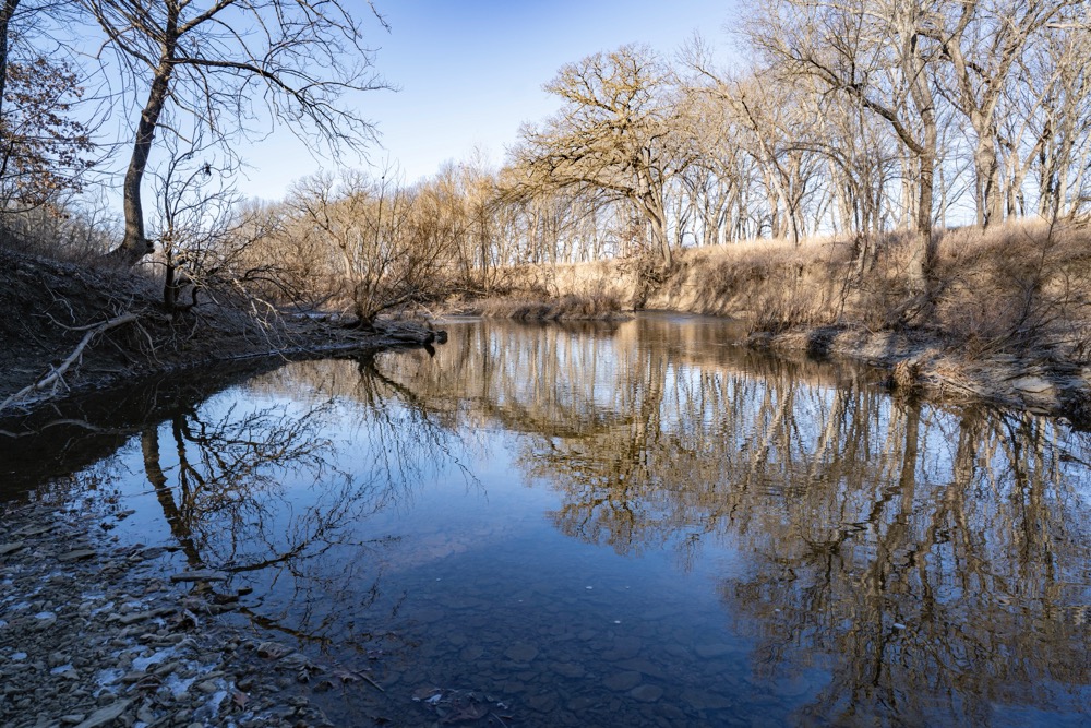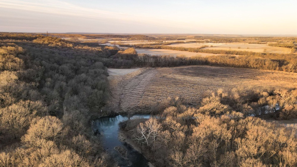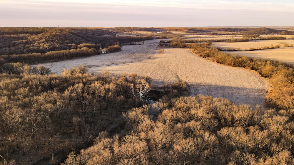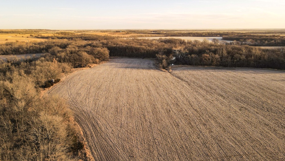 Approximately 465 acres are currently in tillable production and are leased on a per-acre basis at $85 per acre. These fields are primarily located along the creek bottom and provide open ground that can be utilized for continued agricultural production or other permitted uses. The remaining acreage includes native grassland and timber, offering cover, travel corridors, and edge habitat which has all been vastly improved in the last few years.