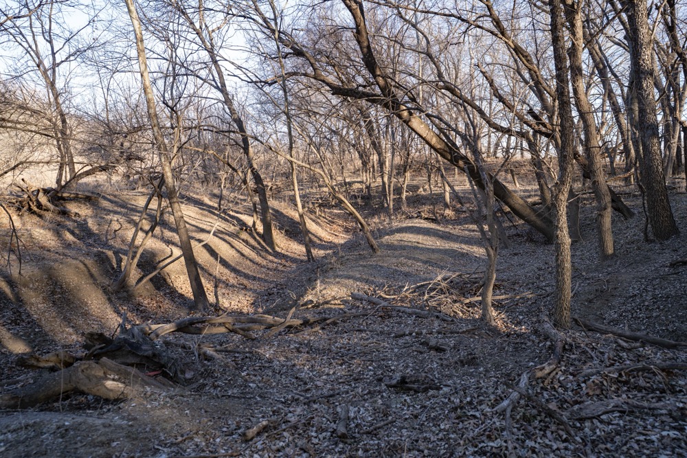 Otter Creek flows through the property and serves as a year-round water source. In addition to the creek, multiple ponds are located throughout the acreage, contributing to wildlife use. Elevation changes of nearly 200 feet create a variety of terrain, with low-lying cropland near the creek transitioning to rolling timbered ridges and edges. This variation allows for multiple access routes and land uses across the property.