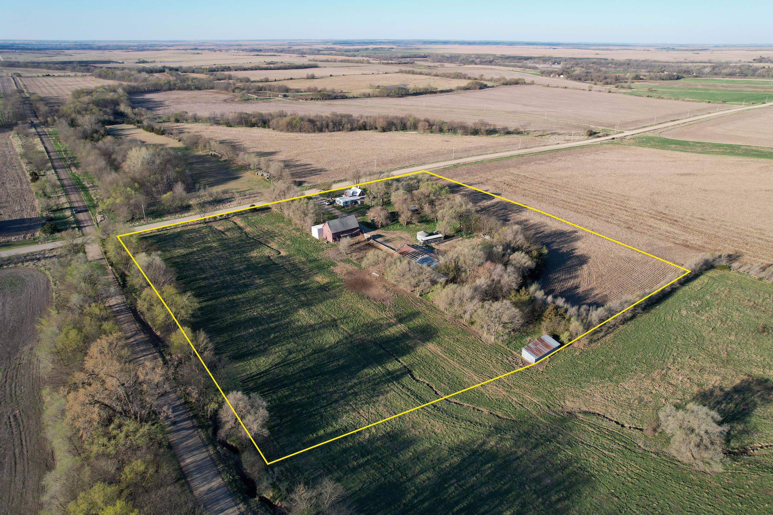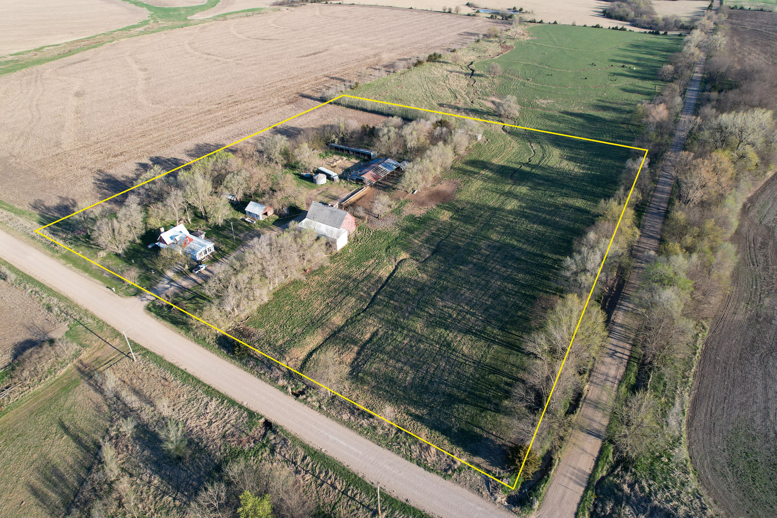 This farm sits two miles west of Highway 177, nestled between the communities of Dwight, Alta Vista, and Council Grove. The two-story home with attached garage is the focal point of the farmstead, but multiple outbuildings and feed bunks provide endless opportunities for you to start a small livestock operation. There are several acres of fescue pasture that are lined by a hedgerow on the east property line. The fescue is currently grazed through the winter months and could likely continue if you choose. On the west edge of the property is a piece of cropland that could be converted to grass as additional forage for livestock. It could also continue being farmed as part of the larger field resulting in a small return each year. There are functional waterers in both pens, as well as small bunk lines along both pens that could be maintained and used for livestock.