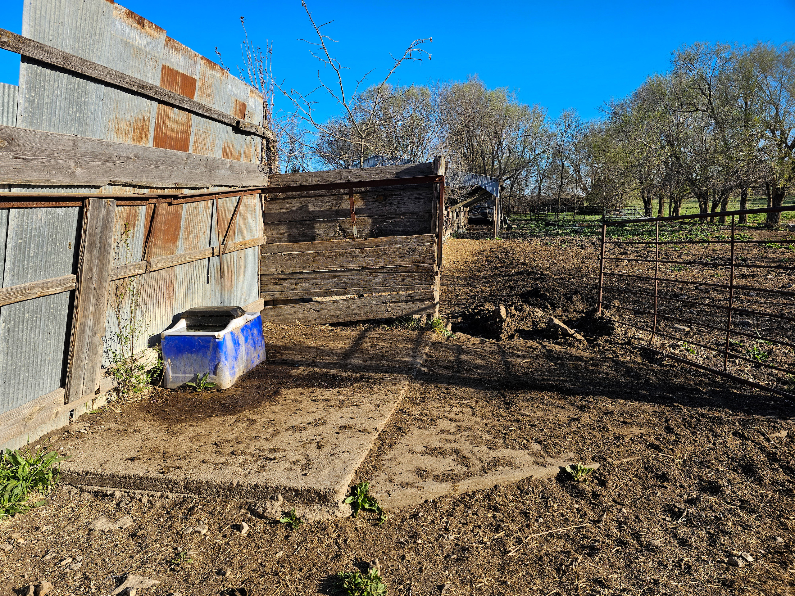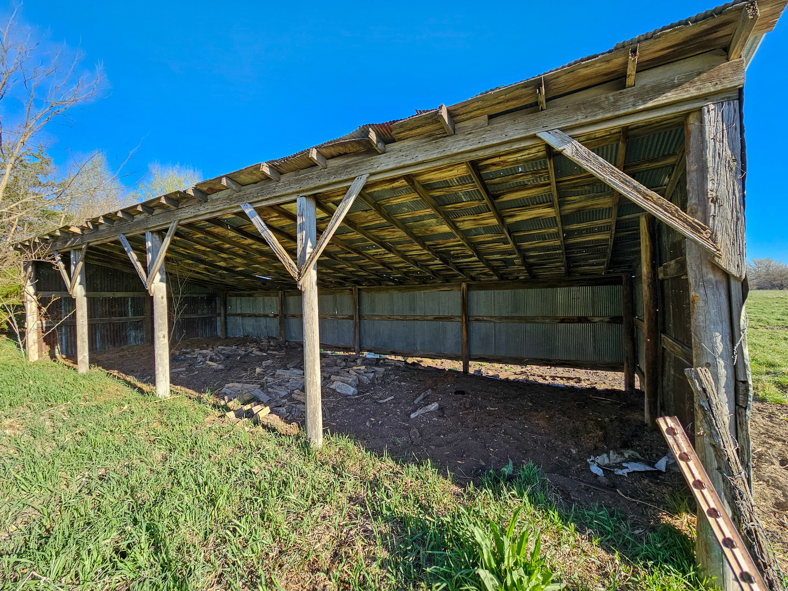 The farmhouse consists of three bedrooms and one bathroom. It is cooled by Window AC units and heated by a ventless wall-mounted propane heater and electric baseboard heaters. It also includes a fireplace to utilize and reduce costs in the winter if one is inclined. Rural water supplies the home, as well as the livestock waterers. There is also a well onsite. The attached garage could function as a large single-car or a two-car garage for smaller vehicles.