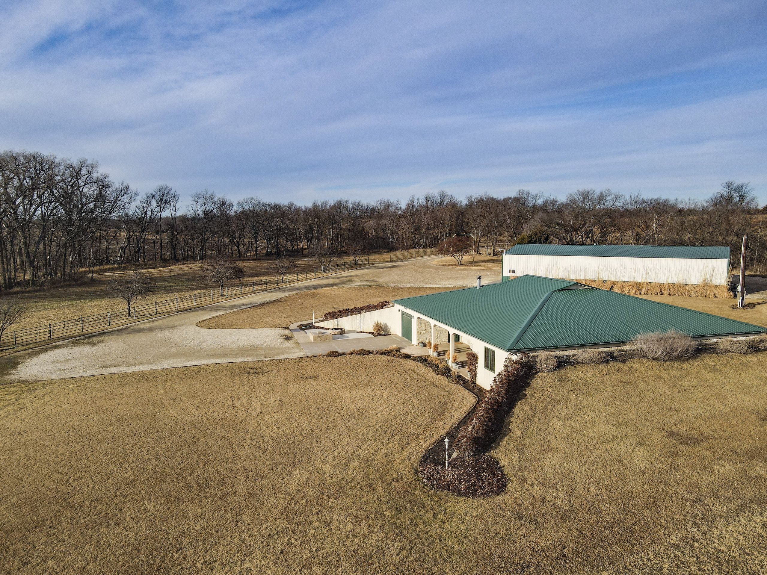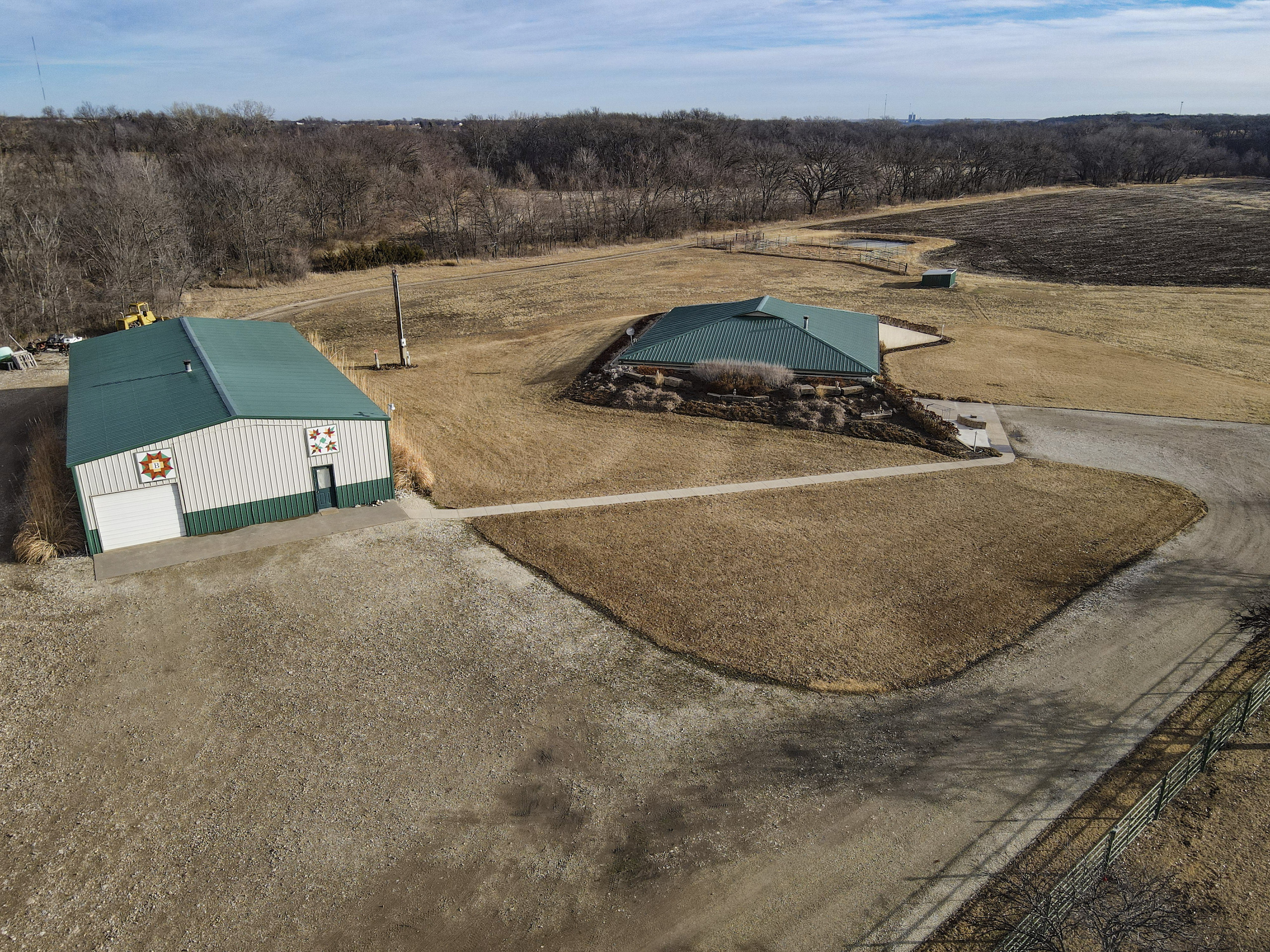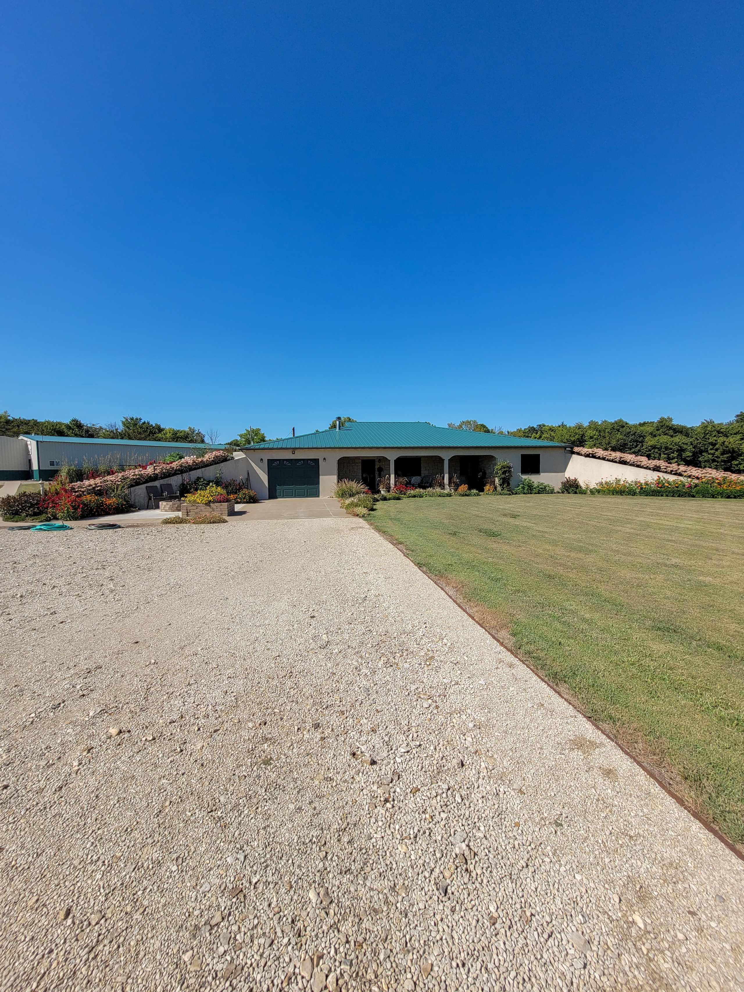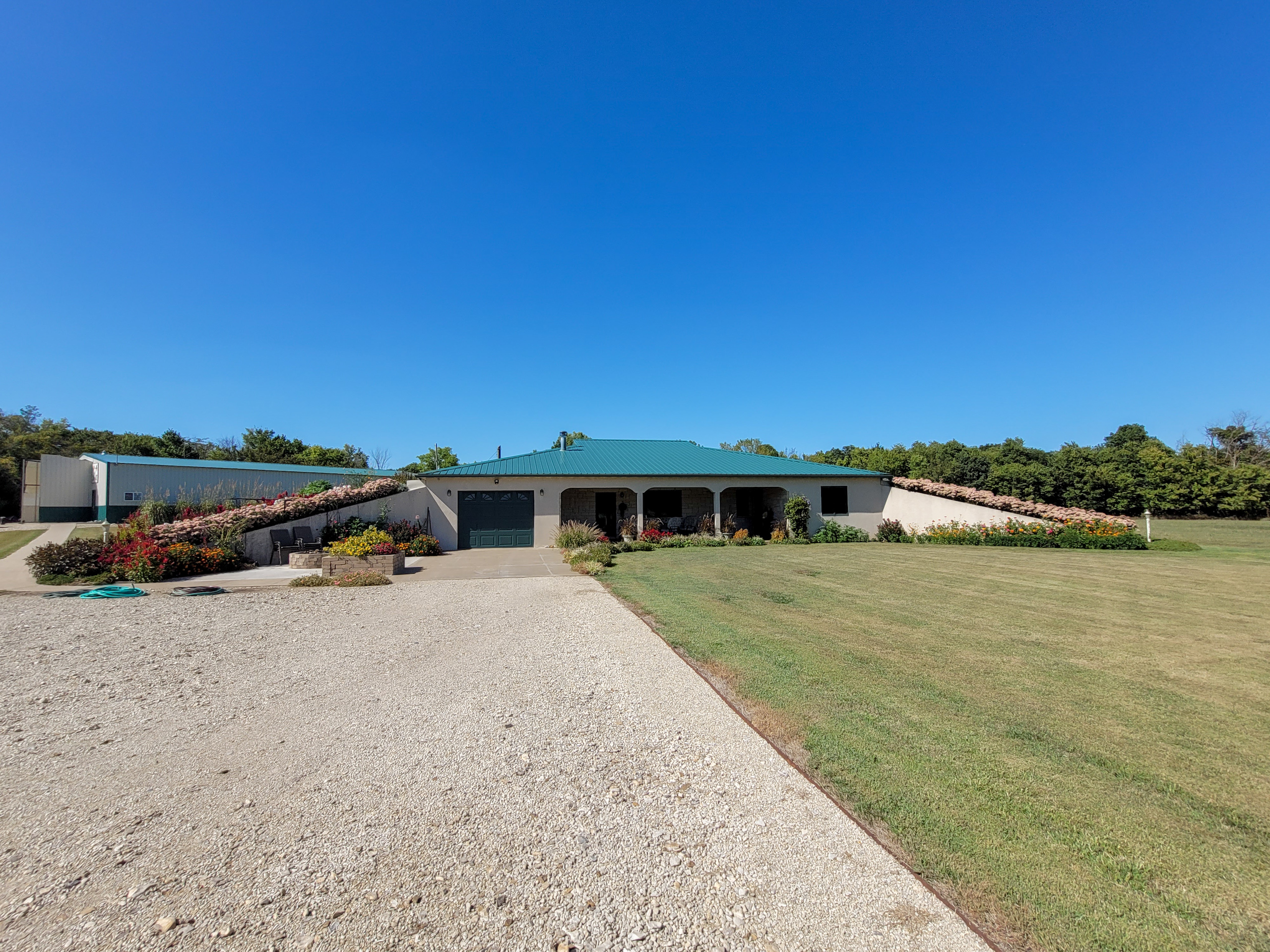 If you dream of living in the country, this is the place for you. The beautifully landscaped berm home and 40x80’ shop are located just west of Council Grove, less than a mile off Highway 56, on an excellent gravel road. The well-maintained home consists of three bedrooms, two full baths, one half bath, two offices, a laundry room, a hot tub room, and an open floor plan between the kitchen and living room. Once outside, you will find a covered patio as well as a concrete patio adjacent to the driveway that includes a stone flower bed and fire pit. The area provides a perfect setting for entertaining guests and enjoying the scenic views.