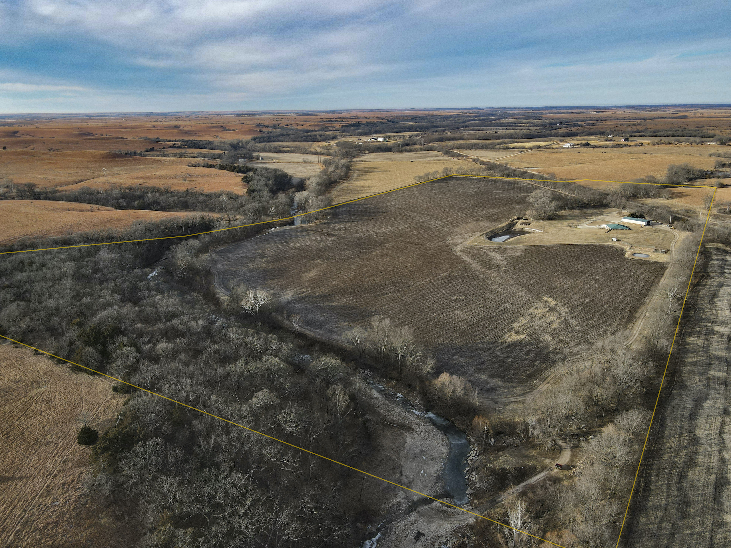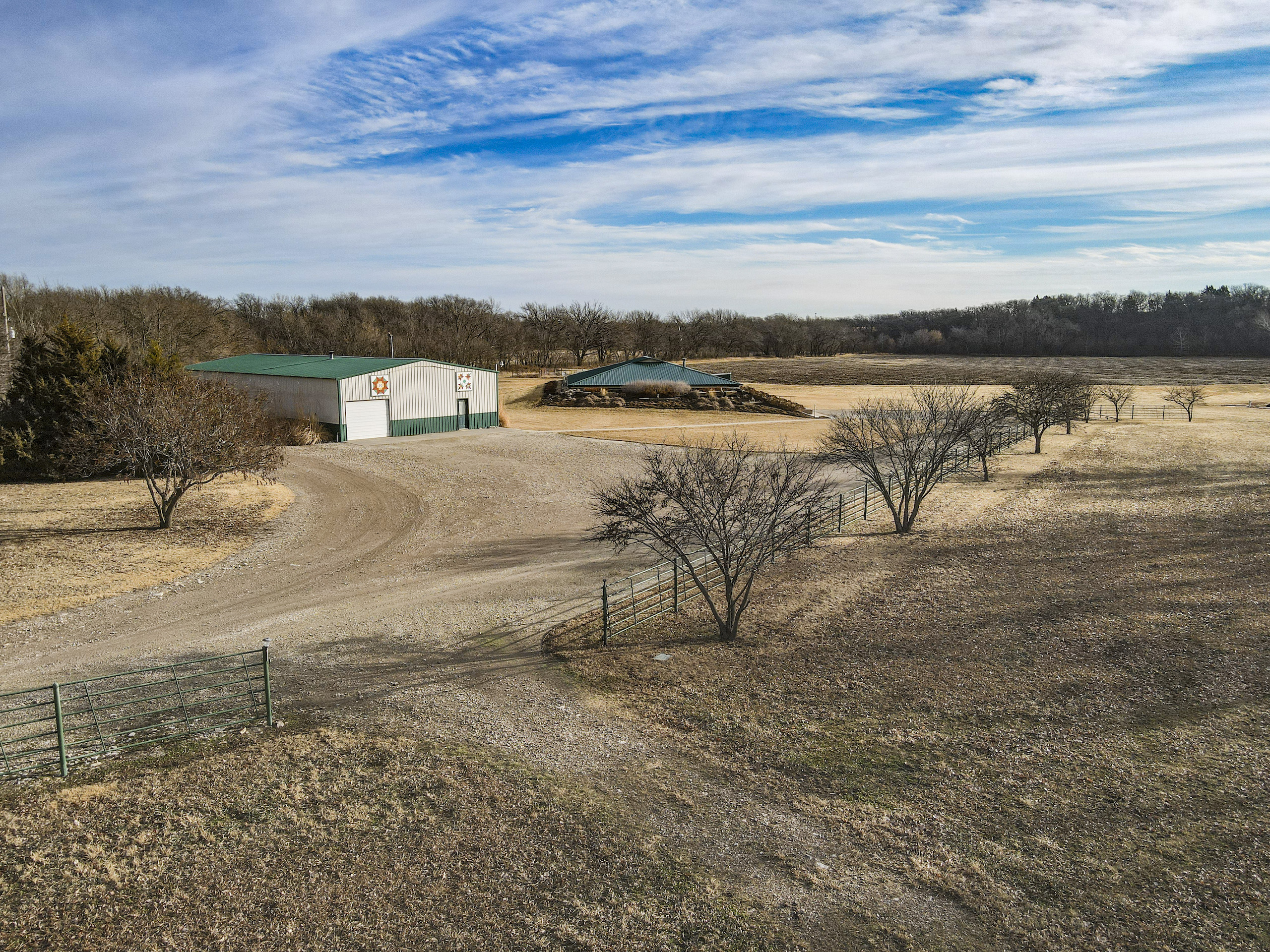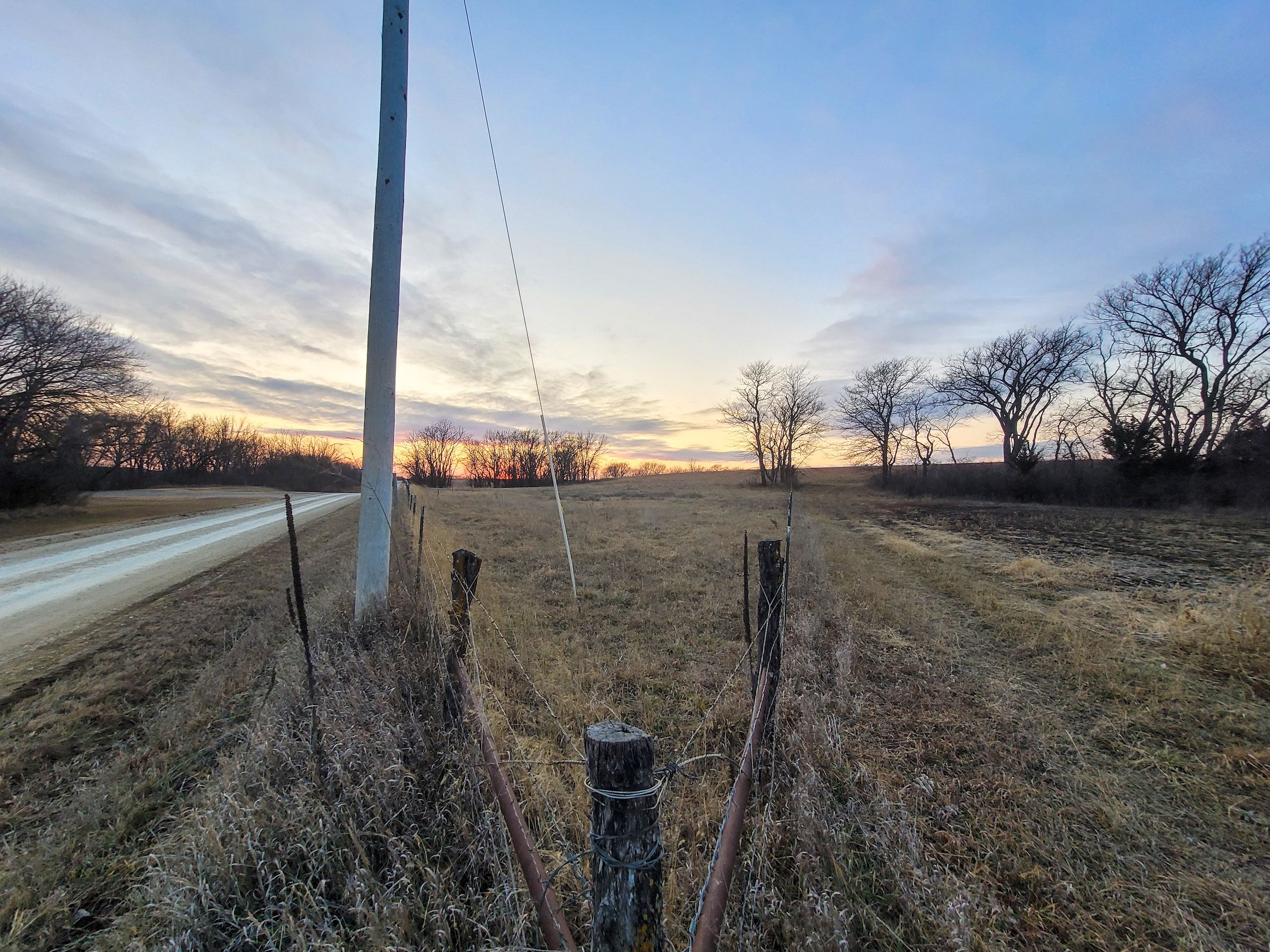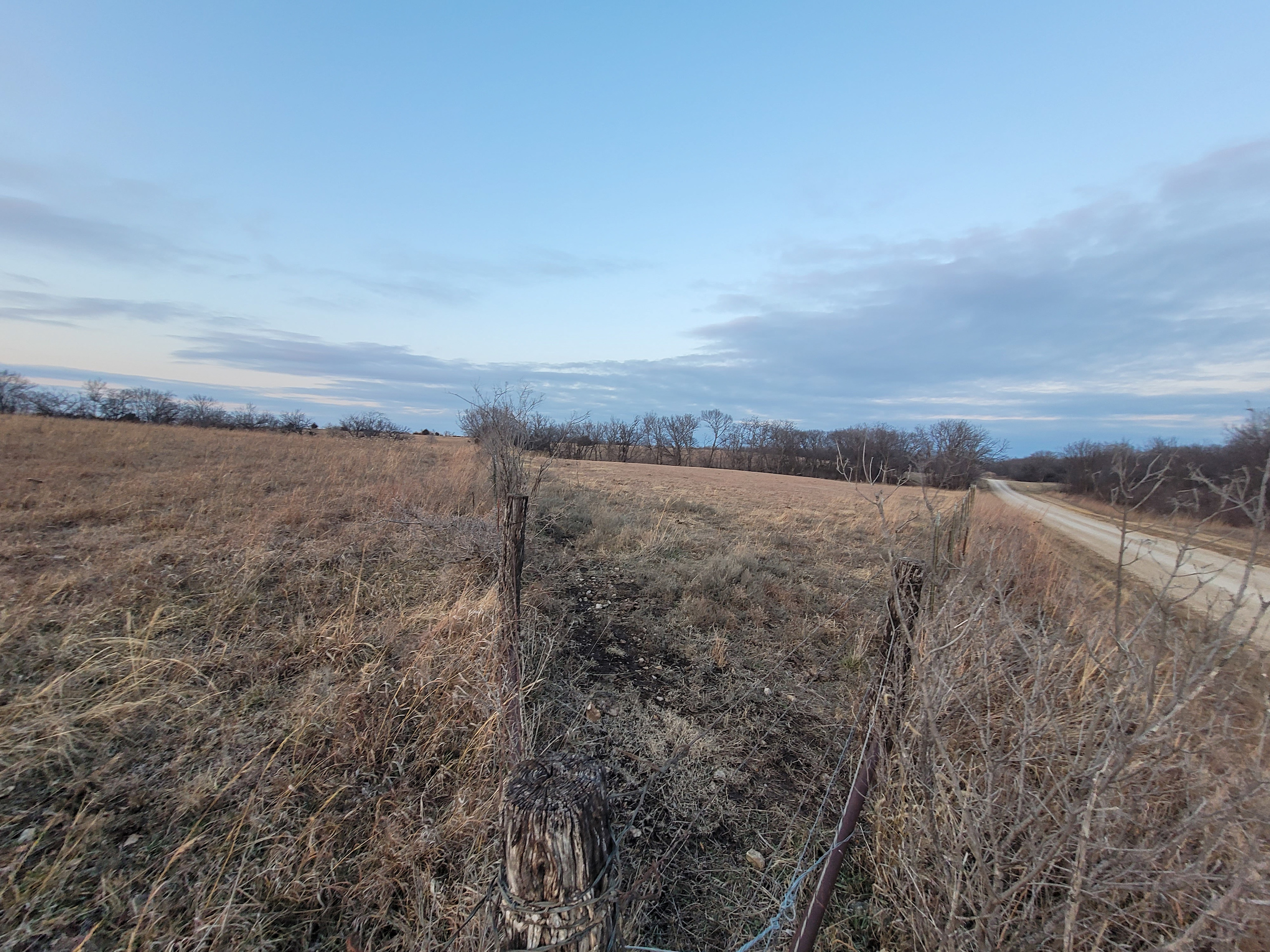 A set of corrals on the farmstead and a small native pasture west of the house provide accommodation for livestock. A pond and a well in the pasture provide an adequate water source, and the barbed wire perimeter fence is in good condition.