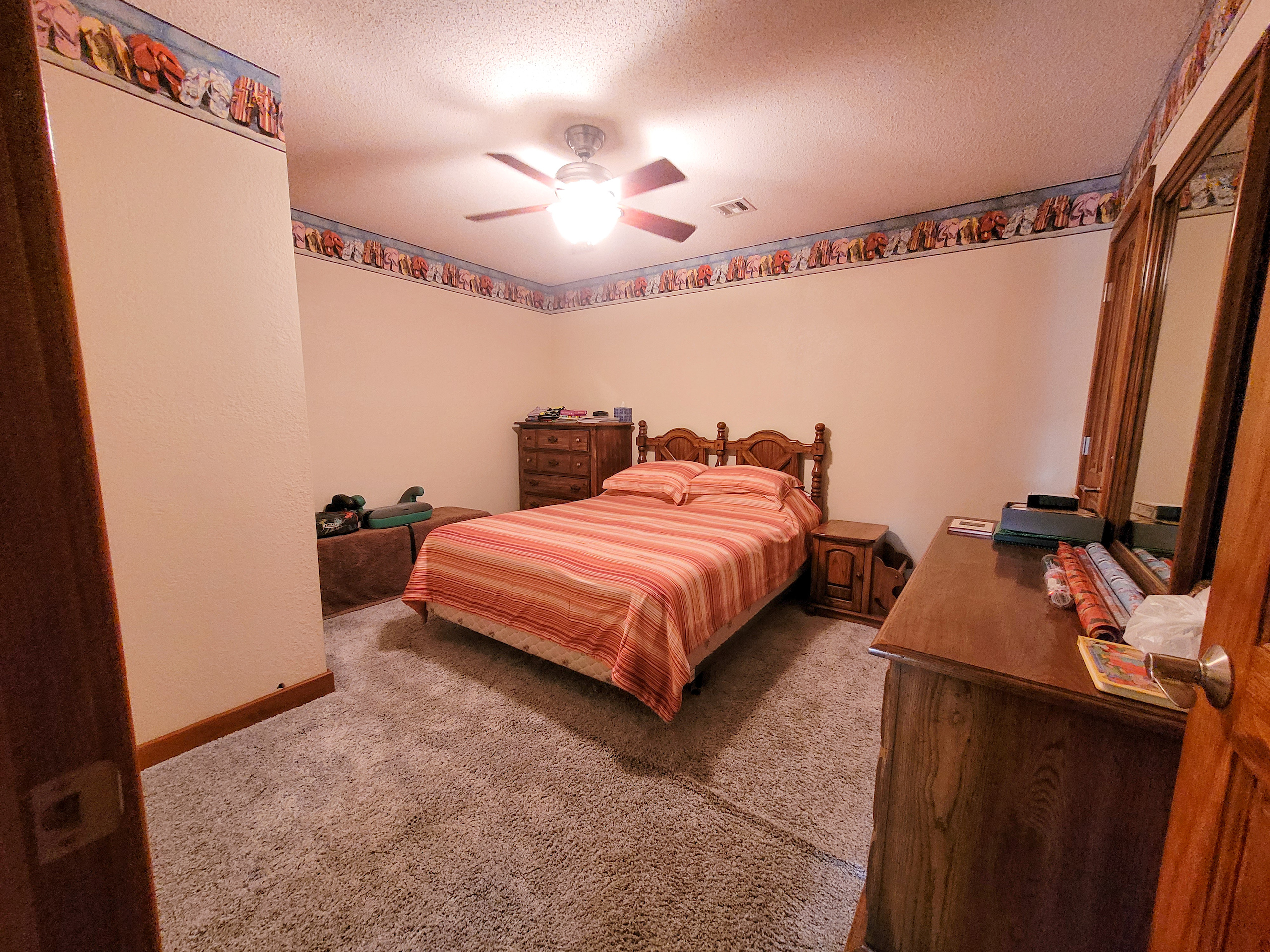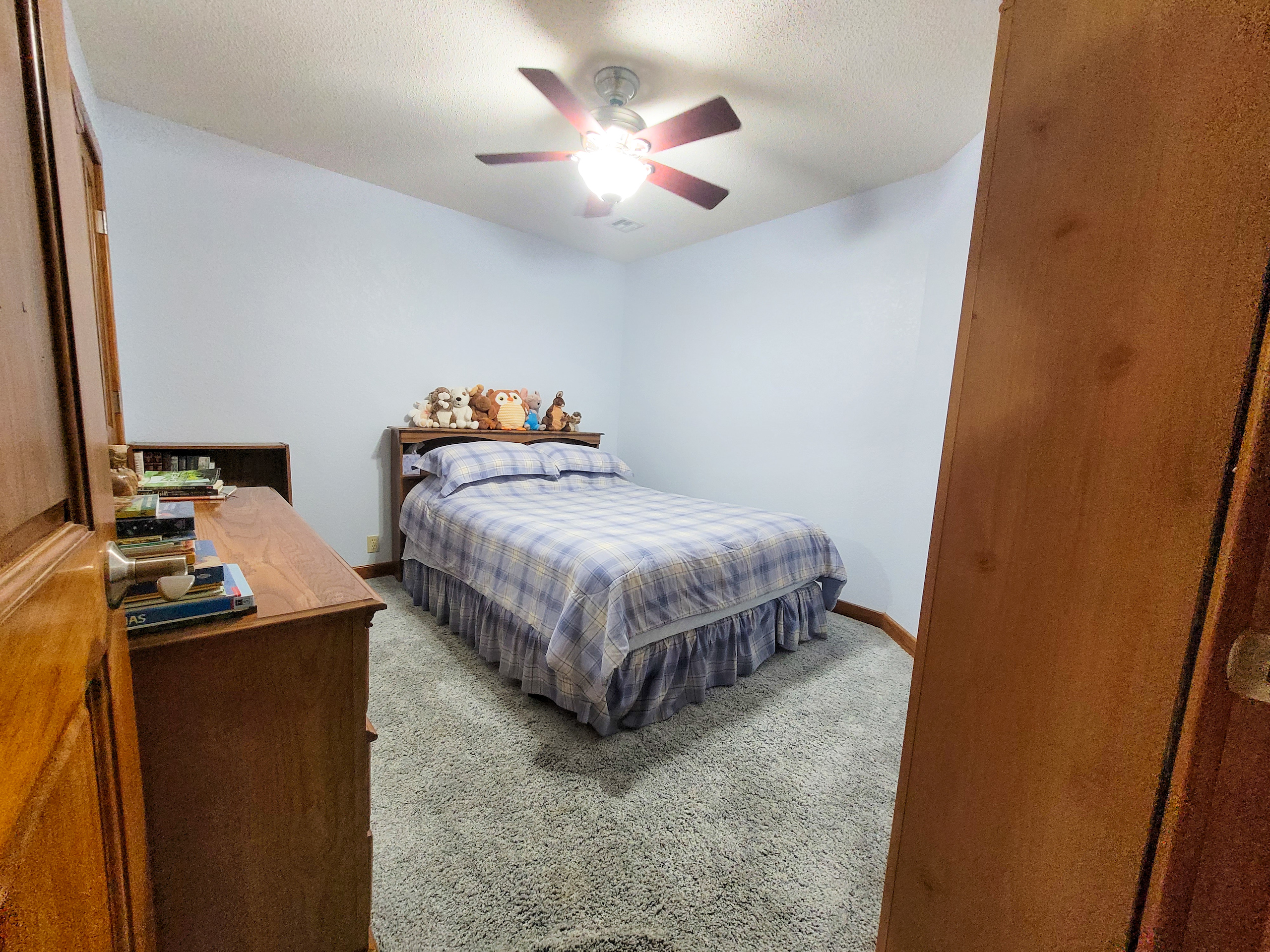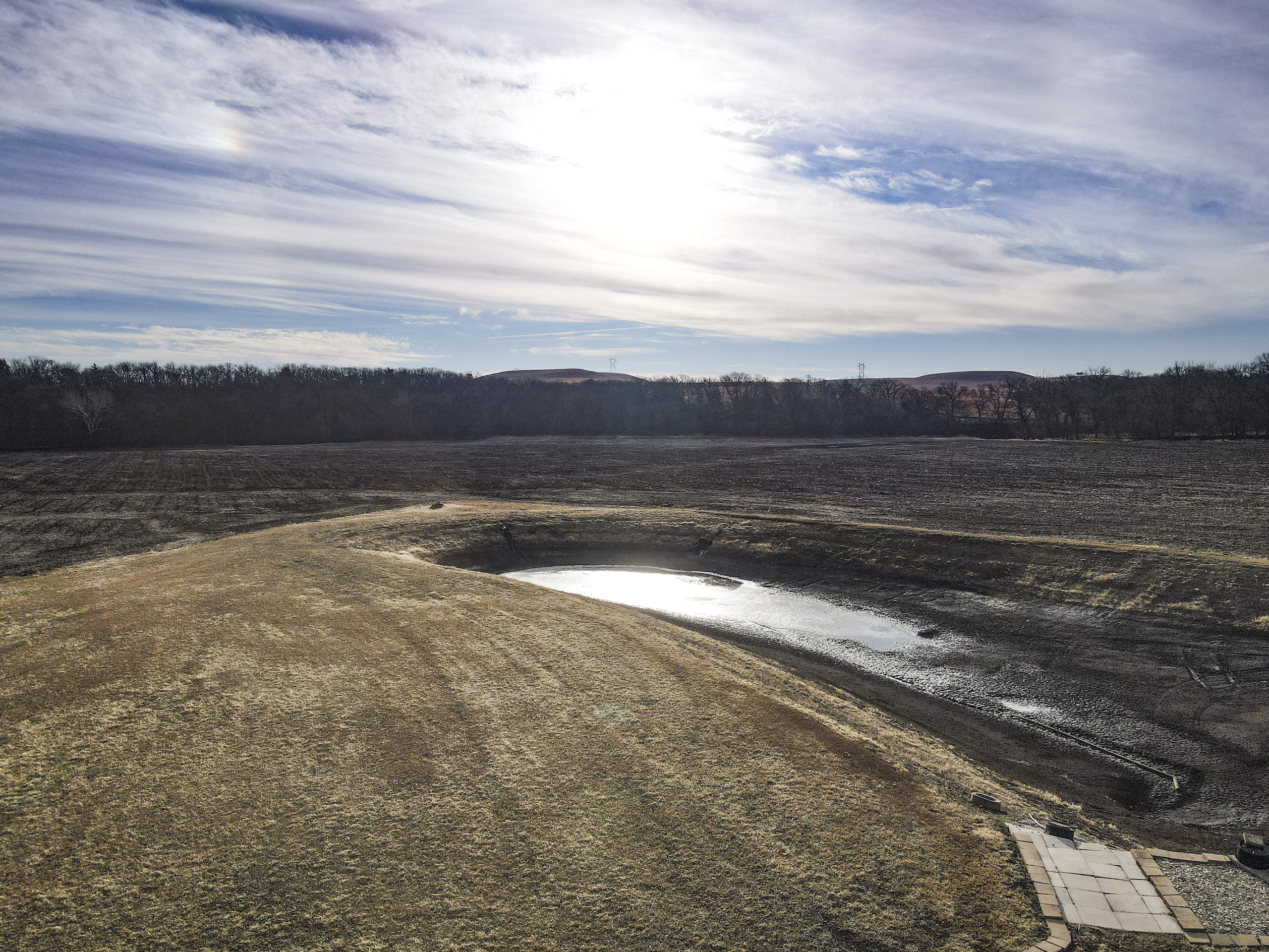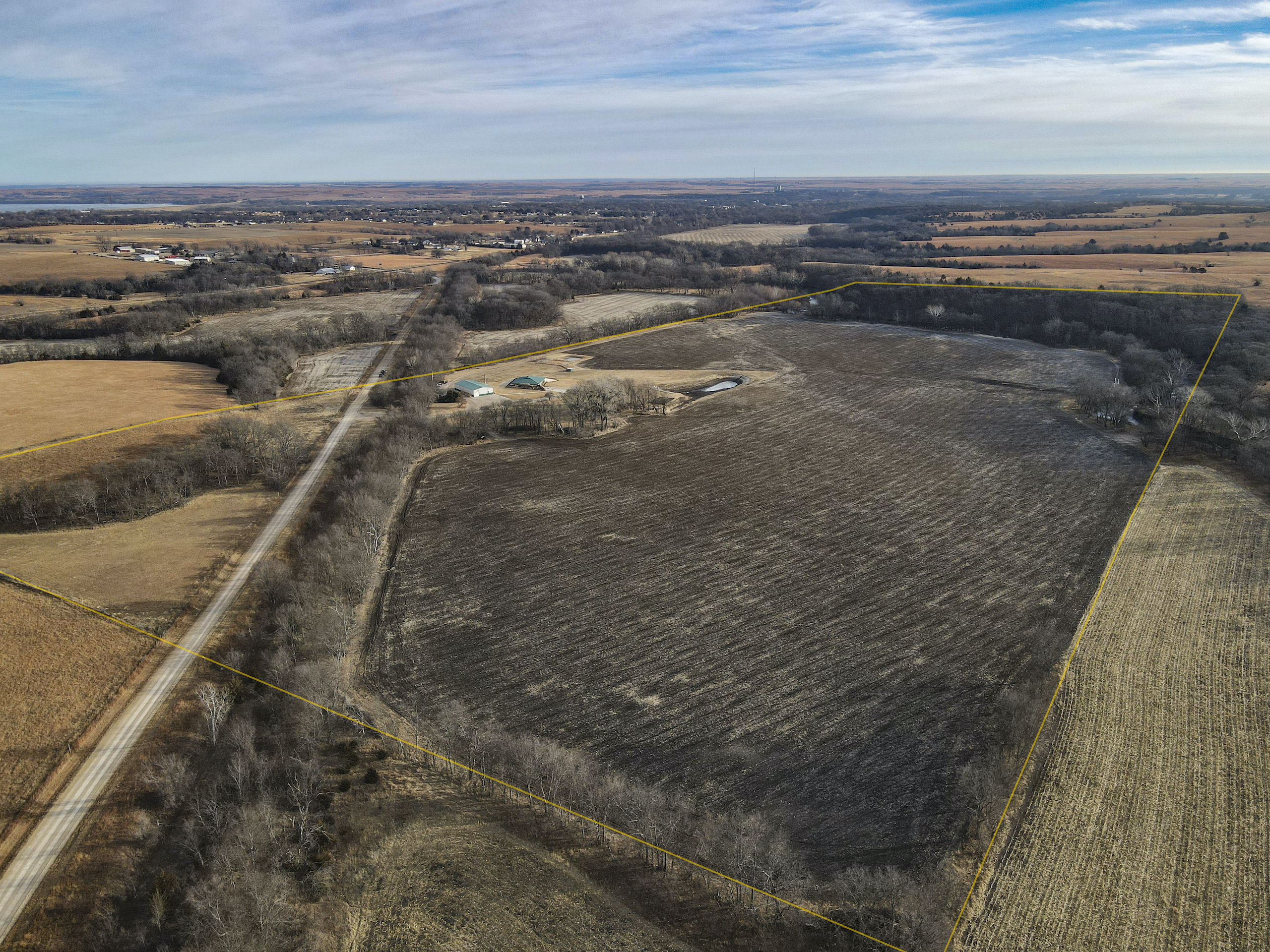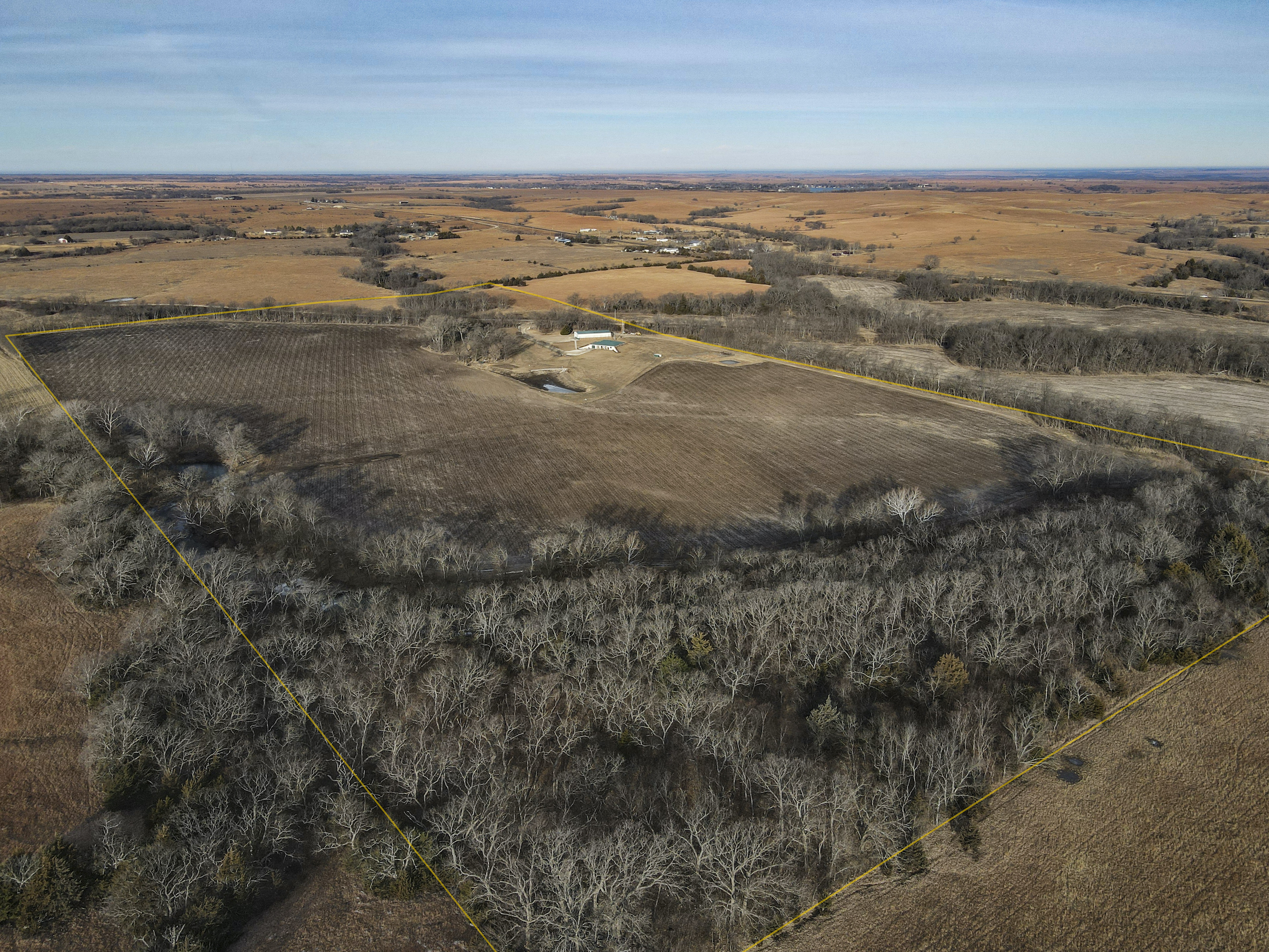 A set of corrals on the farmstead and a small native pasture west of the house provide accommodation for livestock. A pond and a well in the pasture provide an adequate water source, and the barbed wire perimeter fence is in good condition.