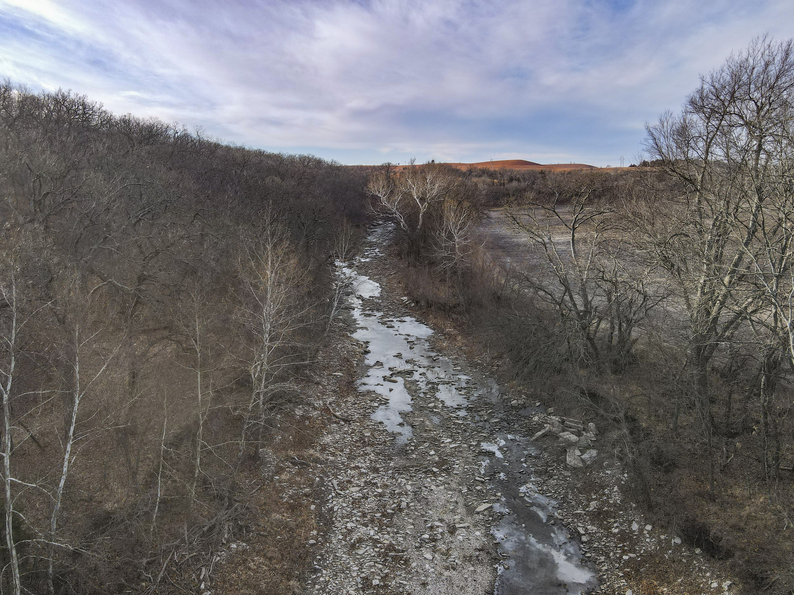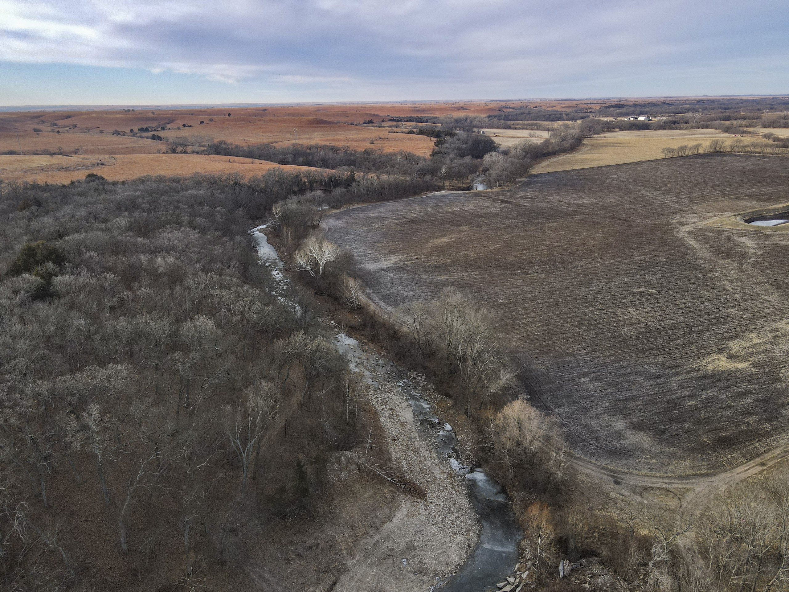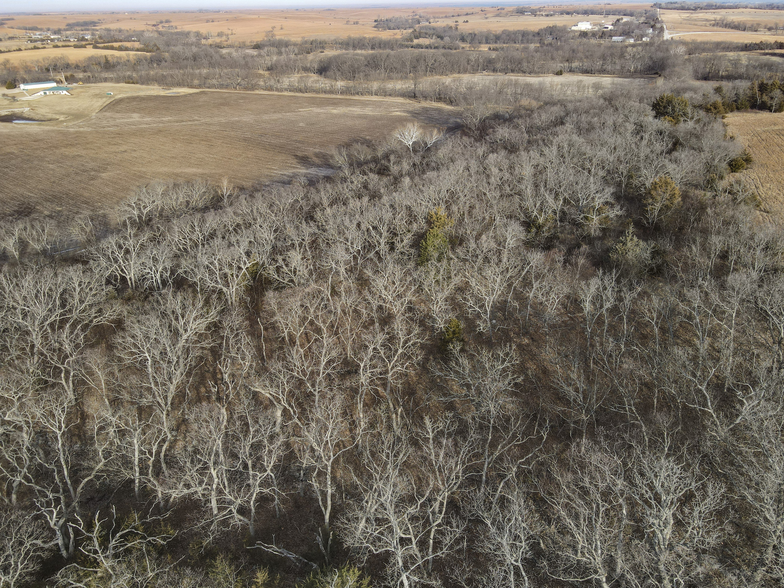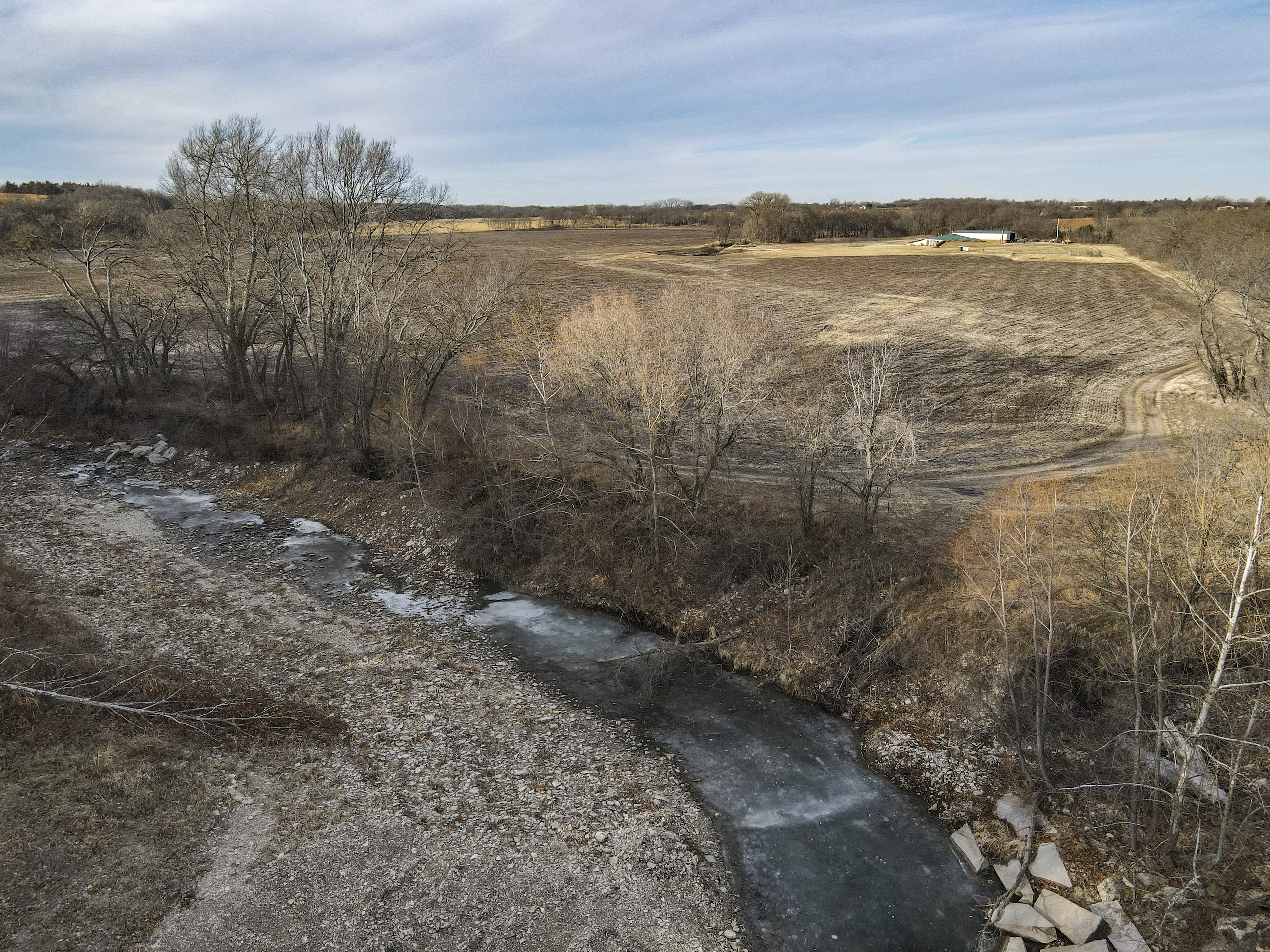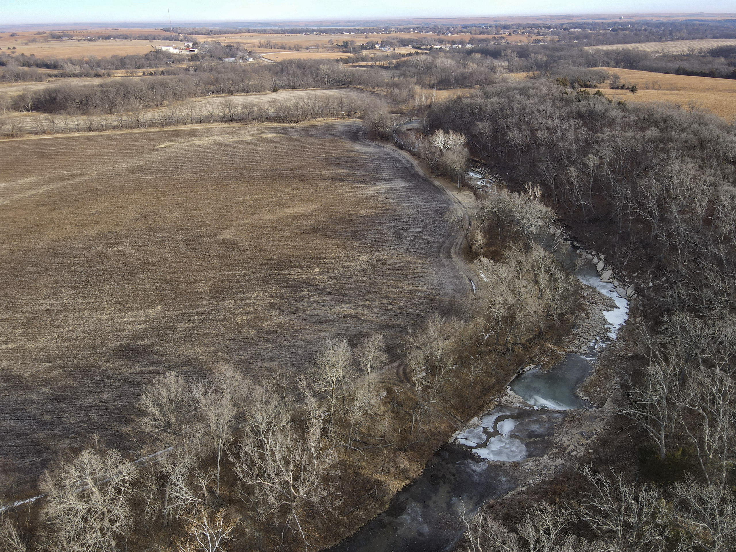 This farm has it all for the outdoor enthusiast! Elm Creek traverses across the south and east side of the property, providing opportunities for hunting, fishing, and riding ATVs or horseback. The picturesque creek has a small waterfall, and multiple deep pools provide quality fishing. A graveled trail traverses the boundary of the crop field adjacent to the creek allowing easy access to enjoy and explore. A trail going up the ridge provides access to the timbered ridgetop. To top it off, there is a pond near the house to enjoy and provide irrigation for the garden.