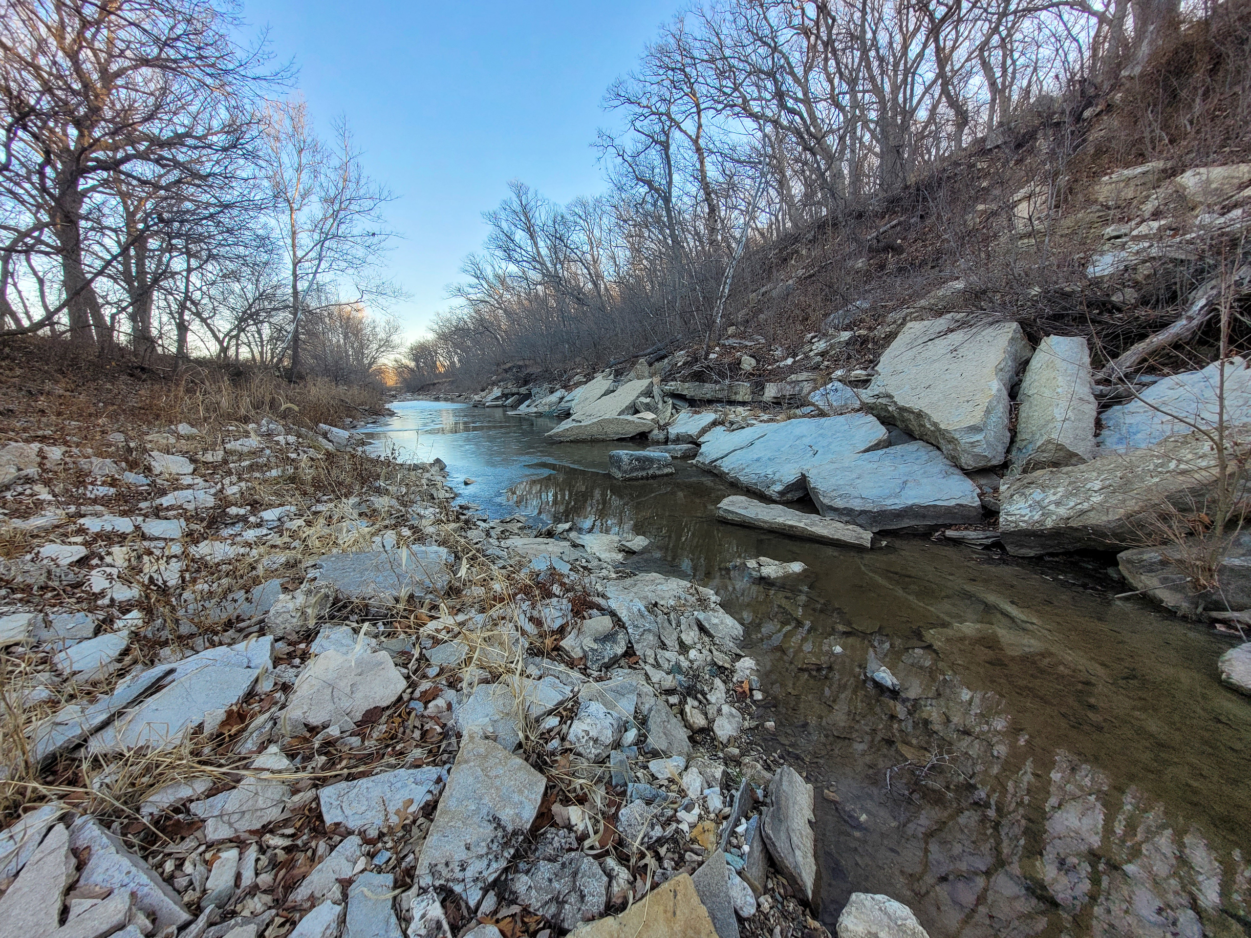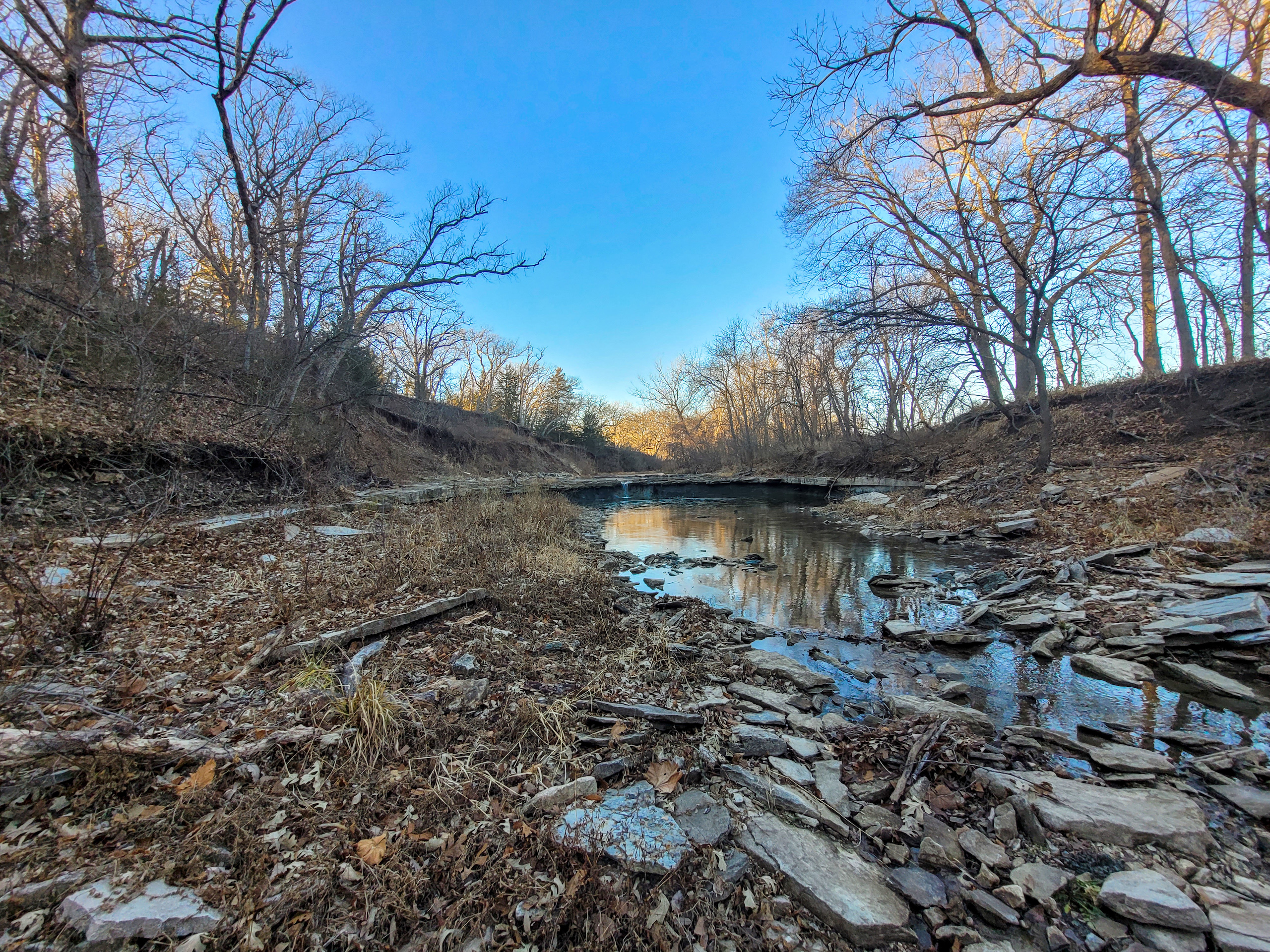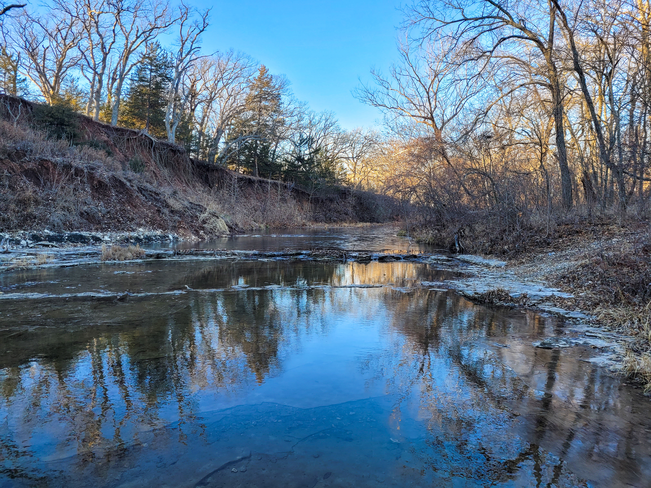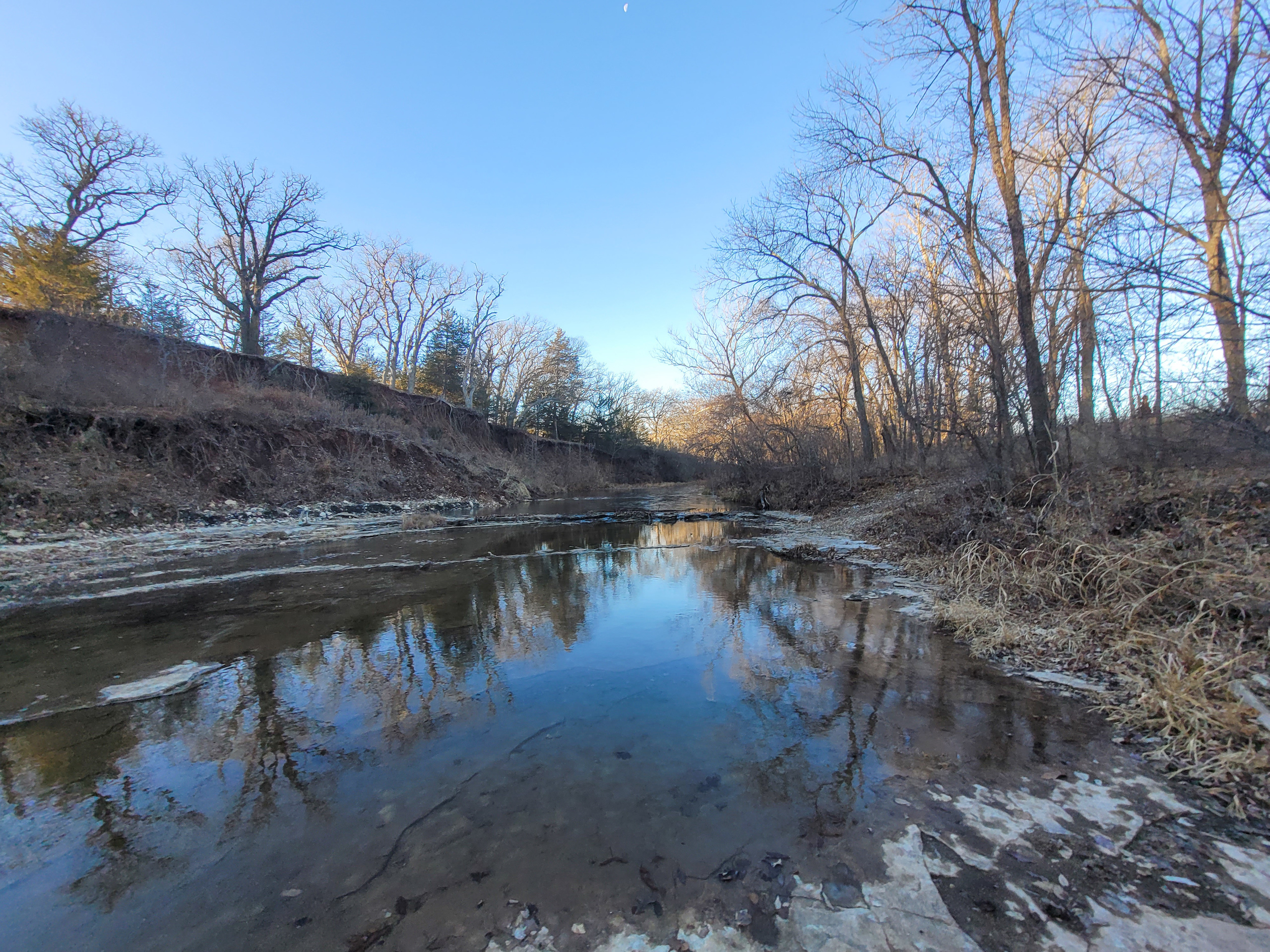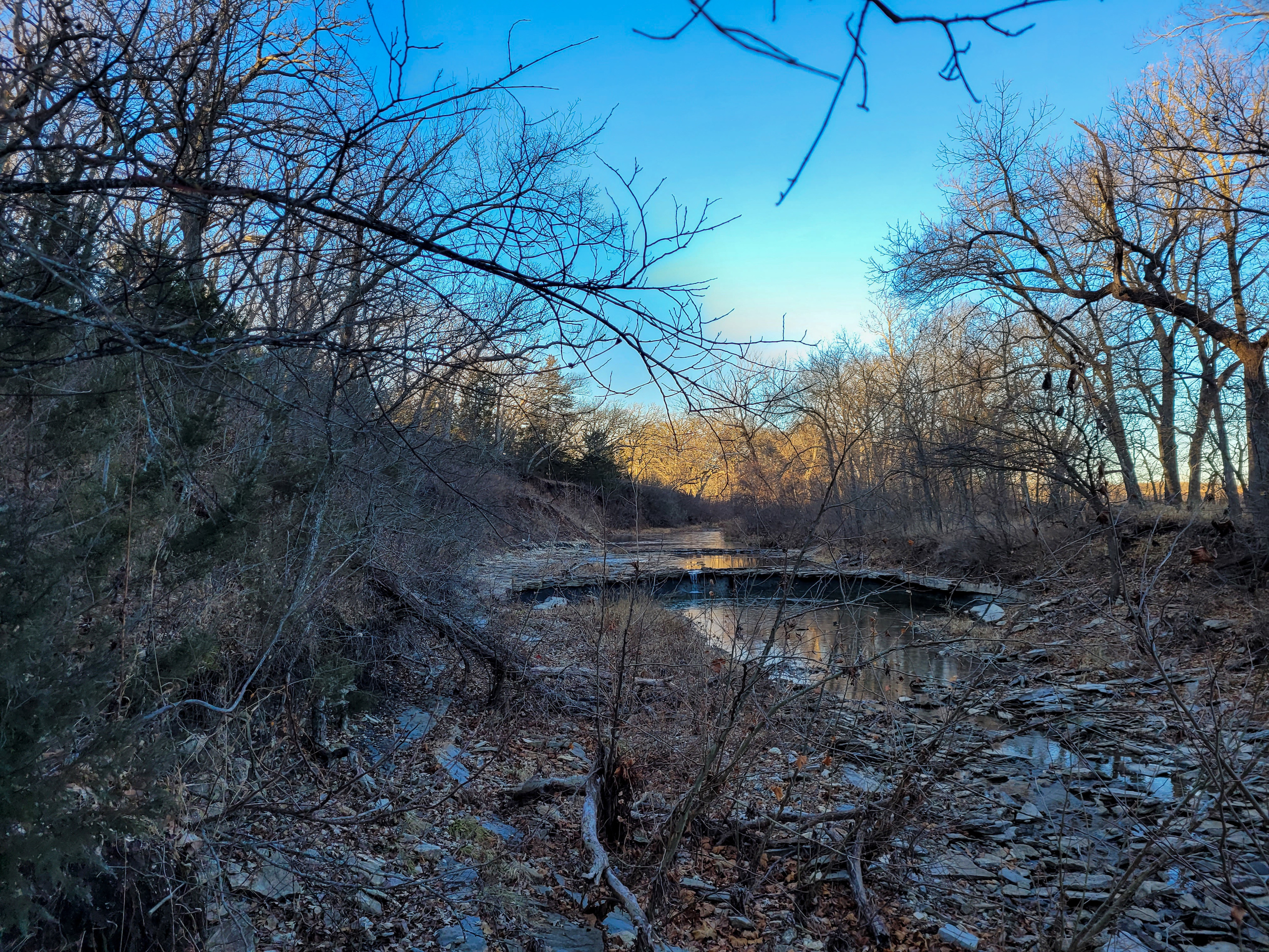 This farm has it all for the outdoor enthusiast! Elm Creek traverses across the south and east side of the property, providing opportunities for hunting, fishing, and riding ATVs or horseback. The picturesque creek has a small waterfall, and multiple deep pools provide quality fishing. A graveled trail traverses the boundary of the crop field adjacent to the creek allowing easy access to enjoy and explore. A trail going up the ridge provides access to the timbered ridgetop. To top it off, there is a pond near the house to enjoy and provide irrigation for the garden.