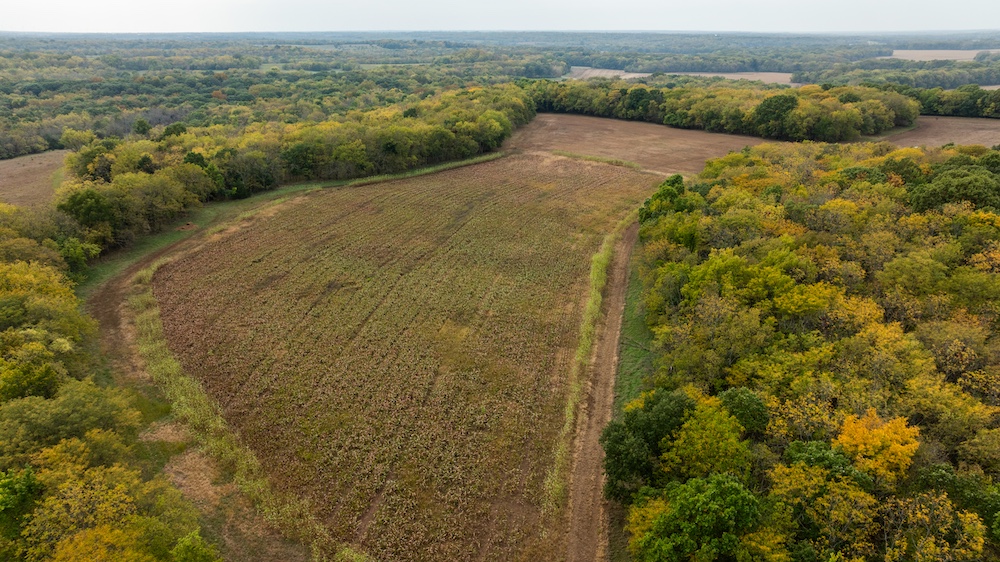 This wildlife sanctuary along the banks of the Marais Des Cygnes river feels and hunts like a farm twice its size. The elevations change nearly a hundred feet from the high beautiful bluffs down to the riverbank. The deer sign on this farm will get anyone excited, there are fresh rubs and scrapes everywhere you look. Multigenerational timber, brushy hillsides, and established food plots make up this beautiful farm. Due to the big river bluffs and elevation changes the farm almost reminds me of Pike County, Illinois. The natural travel corridor created by the river is sure to provide unforgettable memories during the November rut. The farm is accessed at the end of a dead-end road making it very remote and private. So, if you're in the market for a special farm that checks all of the boxes including being large enough for an over-the-counter buck tag, give me a call more info.