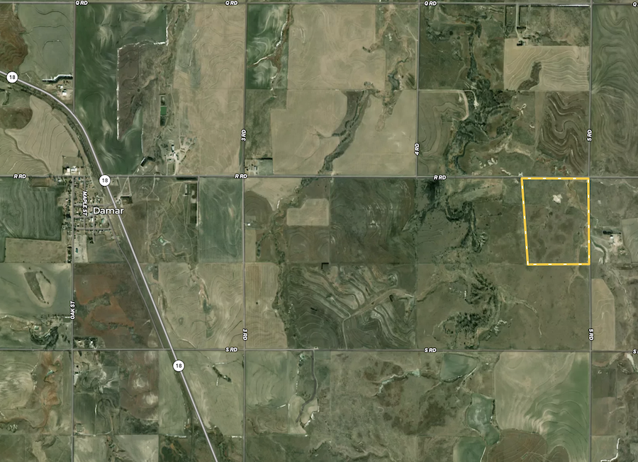 Located just 2 miles east of Damar, Kansas, and 4 miles southwest of Webster Reservoir, this exceptional property encompasses approximately 112 acres of native grass pasture land, surrounded by a sturdy 4-strand barbed wire fence that secures the entire perimeter. The ranch offers rural water directly on the property, providing reliable livestock watering, with electricity available along the adjacent county road for convenience.
