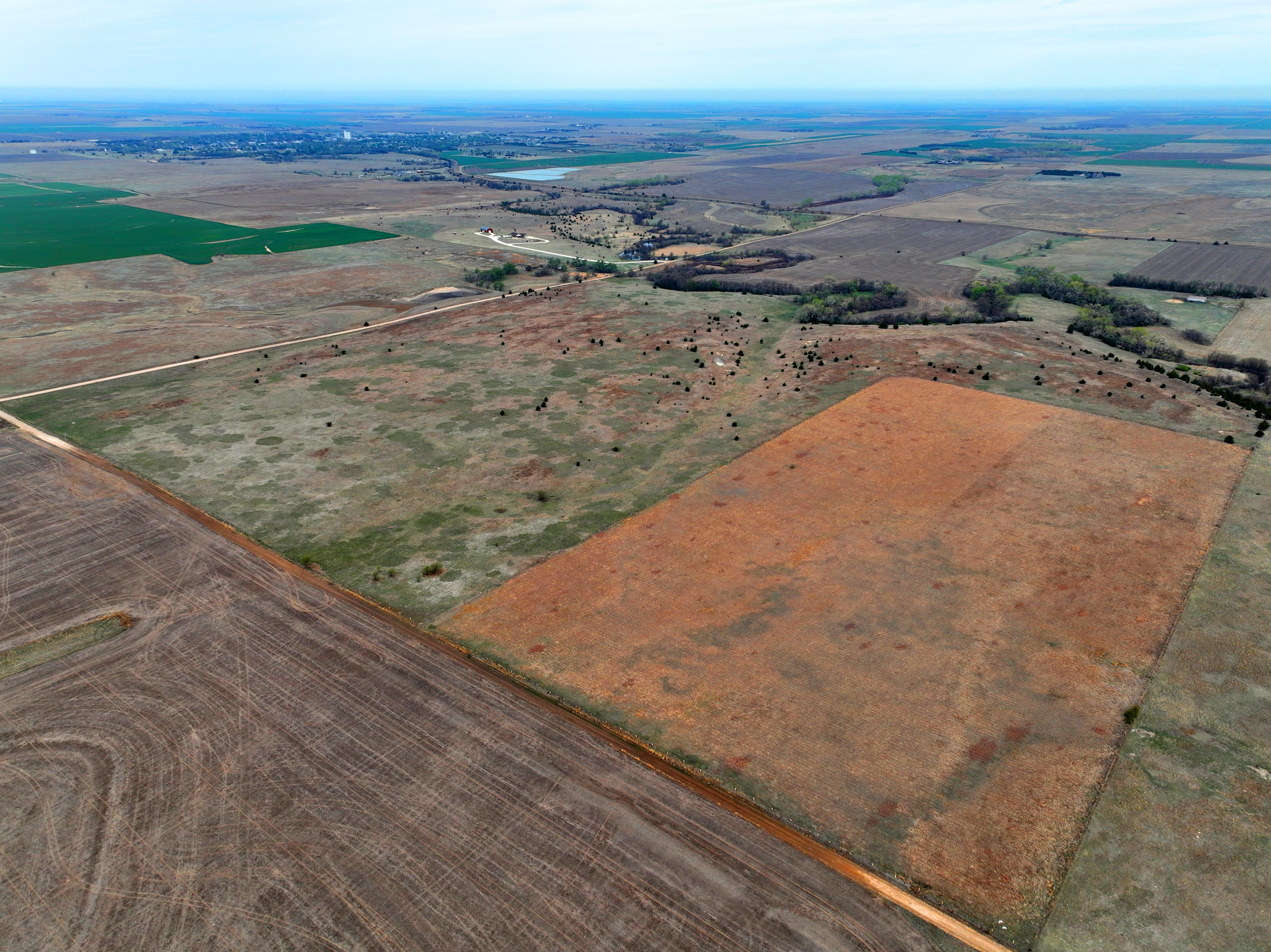 Located only 2 miles outside of La Crosse, Kansas, on County Road 270, you will find this excellent quarter of pastureland with great views as the sand creek runs through the very northern end. This property would be a picture-perfect farm to build a house. Currently, this property is being grazed for cattle as approximately 112 acres are fenced and fully functional with a water well and mature grass. A windmill well with great water is located at the northern end of the farm. The tenant owns the pump and solar panel. The southeastern portion of this farm is enrolled in a CRP program consisting of 36 acres enrolled for another 9 years, paying approximately $38 per acre. The pasture fence is in good shape, with rock posts still being used. La Crosse is famous for being the post-rock and barbed-wire capital of the world. Make sure to check out the museum in town while visiting the property. The legal description to the property is the SW/4 of Section 1, Township 18 South, Range 18 West in Rush County, Kansas. The seller’s mineral rights will be included with this sale; the seller believes to own 100% of the minerals. Call one of the listing agents, Mitch Keeley or Adam Hann, today before this property goes under contract!