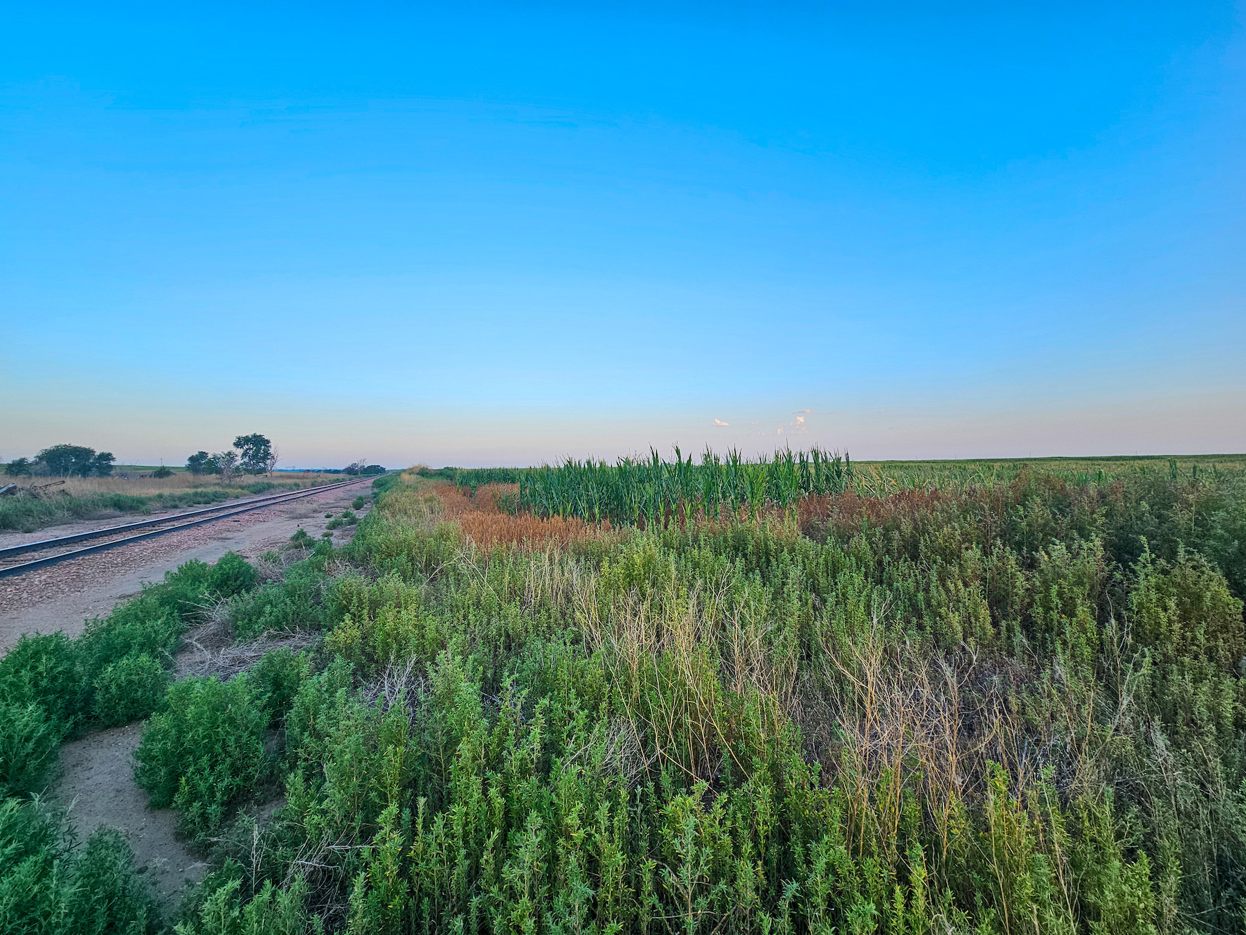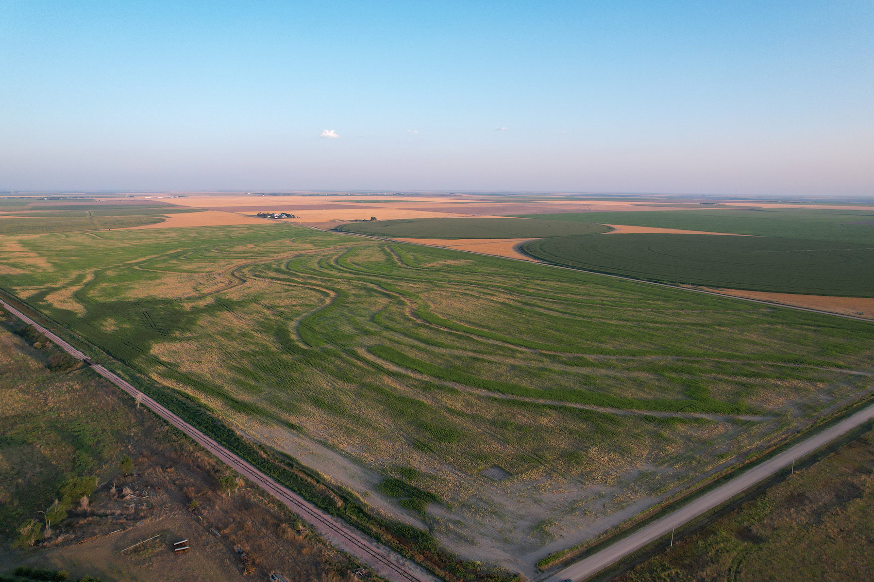 While this isn't your typical recreation farm opportunities still exist. While photographing the acreage I saw several herds of mule deer, pheasants and lots of mourning doves in the area The grassed waterway and railroad right a-way on the south boundary provide habitat that pheasants, deer and other wildlife will utilize.