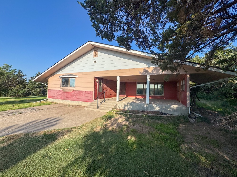 This charming country home and acreage offers a perfect blend of spacious living and agricultural potential, set on over 154 acres just 4 ½ miles northeast of Ogallah, Kansas, and only 5 miles from the Interstate 70 exit ramp. The home, built in 1964, features 3,144 square feet of living area spanning the main floor and basement, providing ample space and comfort. Inside, the main level is a spacious primary bedroom complete with a cozy sitting area, large bay window, and closet. Two additional bedrooms on the main floor offer plenty of room for family members or guests. The main bathroom features a shower and tub combination, a spacious vanity, and ample cabinet space for added convenience.