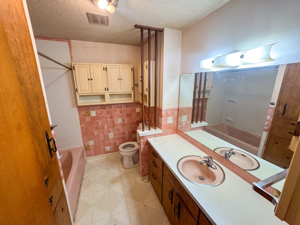 ● Main Bathroom: The main bath features shower and tub combo, large vanity, and plentiful cabinet space