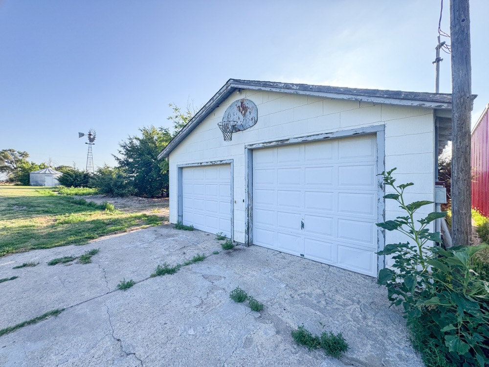 Outside, a large, detached two-car garage complements the home, while the farm buildings include a 100 by 50-foot machine shed with a dirt floor and an 80 by 40-foot roundtop quonset with a concrete floor, ideal for storage of large farm equipment. The farmstead’s 9 acres are enhanced by corrals, hydrants, and mature windbreaks, making it well-suited for raising livestock and small animals in a secluded and secure setting. Utilities are well established with a water well, septic system, and central heat and air conditioning to ensure year-round comfort.