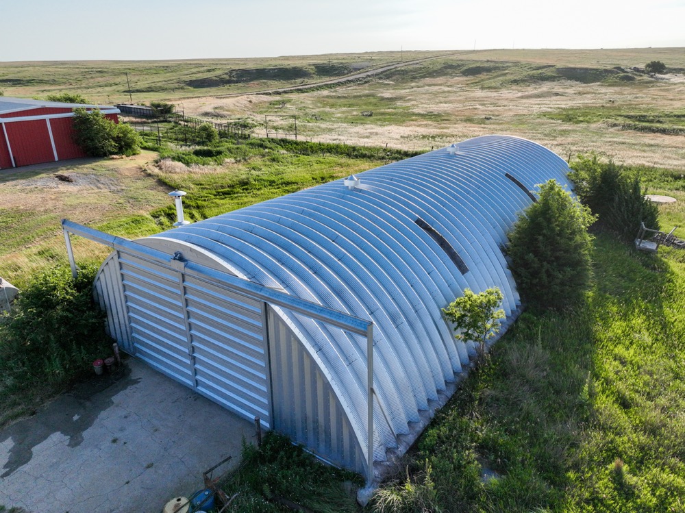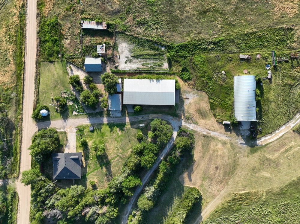 ● Farm Buildings: 100 x 50 machine shed (dirt floor) and 80x40 roundtop quonset (concrete floor)
