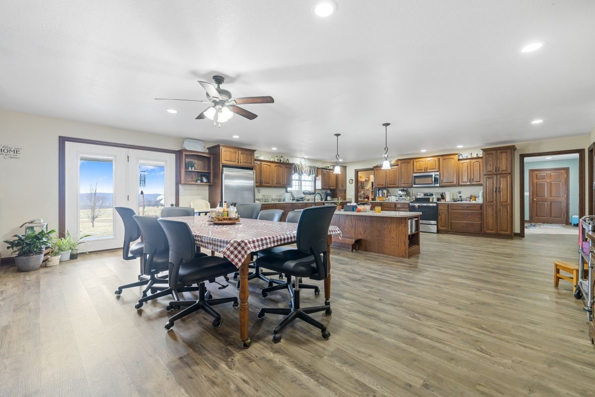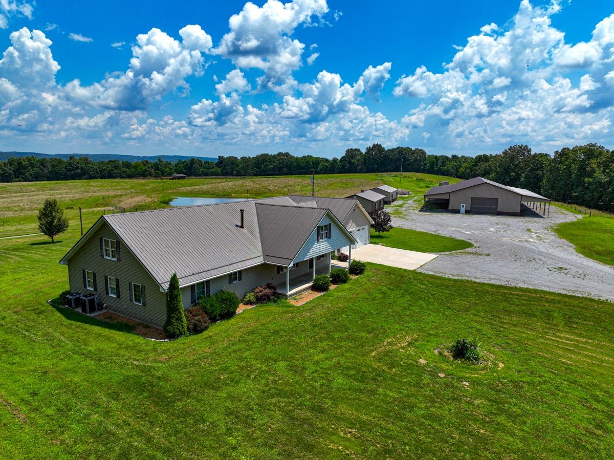 This 10.62+/- acre property in Caldwell County, KY, features a beautiful home, multiple outbuildings, and a fully operational livestock setup. Built in 2014, the 4,251 S.F. home offers 6 bedrooms, 3.5 baths, and a spacious layout with an additional 2,834 S.F. unfinished basement. A 900 S.F. attached 2-car garage provides convenience, while the landscaped yard, shade trees, and garden area add to the rural charm. The property is well-improved with a large 5,280 S.F. shop that includes water, electric, a concrete floor, and two 1,980 S.F. side sheds. Additional metal buildings provide versatile use, including one with a large water holding tank that supports livestock waterers, and all outbuildings. Another 1,152 S.F. building serves as a livestock facility with electric, concrete floors, and ample space for animals. The land itself includes 4+/- acres of pasture with fencing, cross-fencing, and gates, ideal for livestock. A large pond provides water and recreational appeal. The property has 875 feet of road frontage and a gravel drive with a spacious parking area. With a strong blend of residential comfort, agricultural function, and rural beauty, this property is well-suited for those seeking a turn-key livestock operation with an exceptional home and improvements. Give us a call today and schedule your private tour!