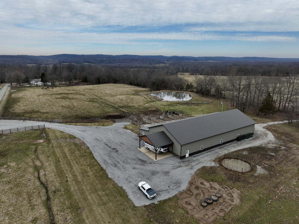 The property is well-equipped for livestock operations, featuring 90+/- acres of fenced and cross-fenced pasture, a large pond, and multiple gated entry points. An additional 15+/- acres of open ground provides plenty of hay production. Supporting infrastructure includes a top-notch 9,360-square-foot horse barn, built in 2023, with an enclosed 2,160-square-foot concrete floor area, 8 stalls, a tack room, a washroom and a 7,200-square-foot riding arena. Additionally, there is a 5,280-square-foot shop (built in 2014) with two 1,980-square-foot side sheds, concrete floors, water, and electricity, along with two metal buildings (each 1,152 square feet) for storage and livestock needs. The well pumps water to a large holding tank, which supplies water to the home, all buildings, and livestock waterers.