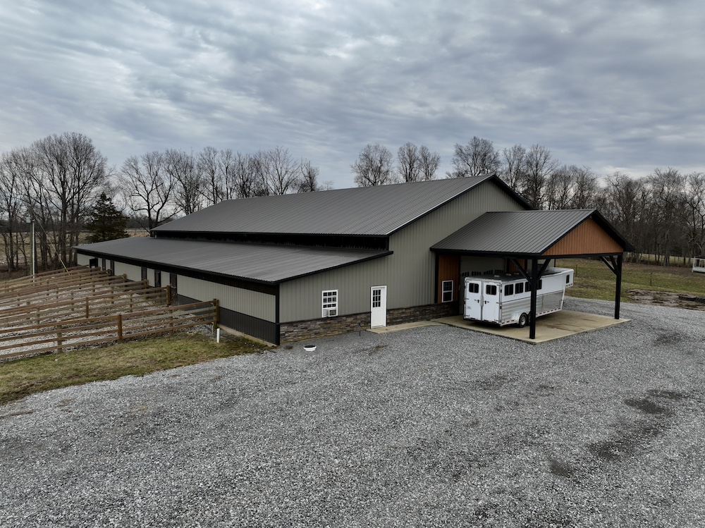 This well-equipped livestock property features a top-notch horse barn, built in 2023, with 9,360 square feet of space. The barn includes a 2,160-square-foot section with a concrete floor, 8 stalls, a tack room, a washroom, and a 7,200-square-foot riding arena. With electric and county water already in place, this facility is fully functional for equestrian or livestock operations.