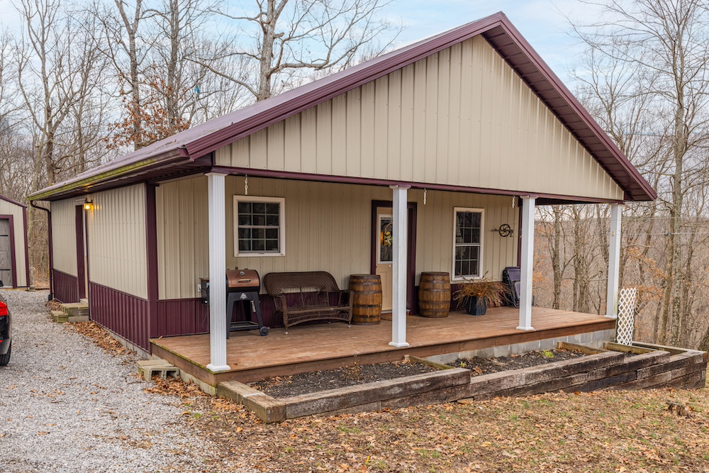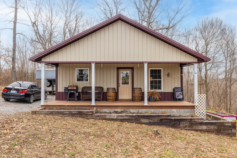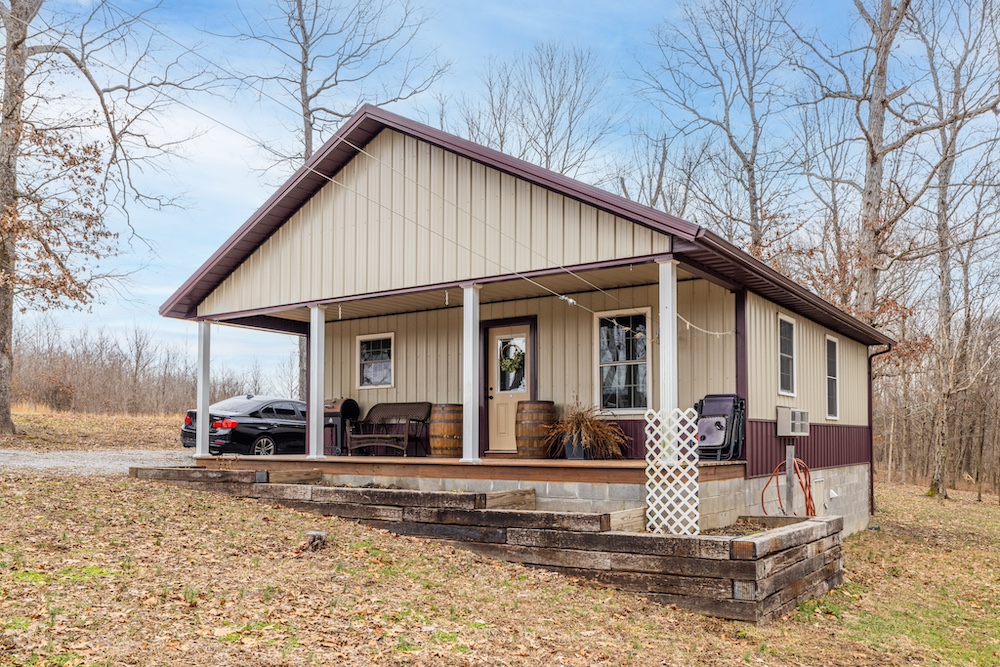 This secluded property features a 2BR, 1BA, 784-square-foot home with a covered porch, a detached garage, and a gravel drive with ample parking. The surrounding timbered landscape offers privacy, scenic views, and excellent hunting opportunities.