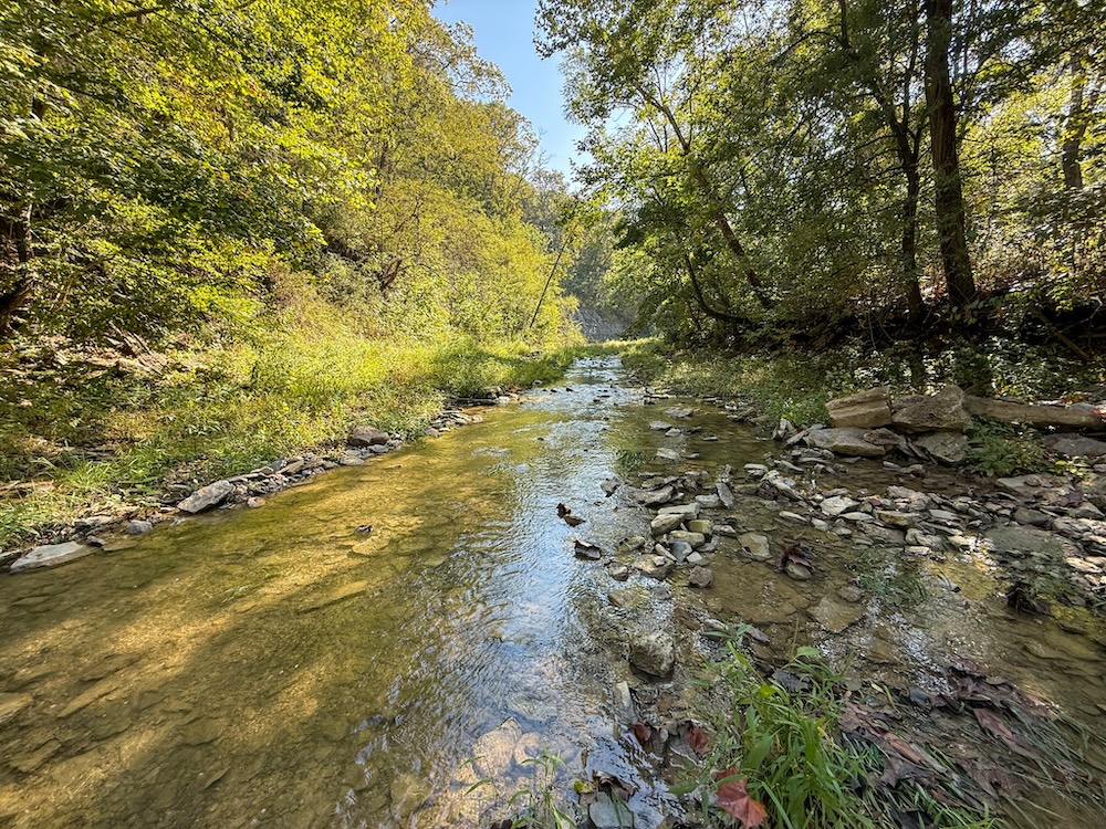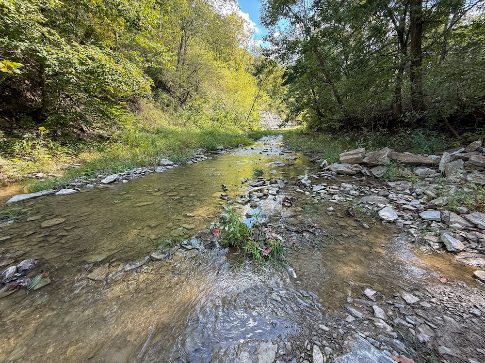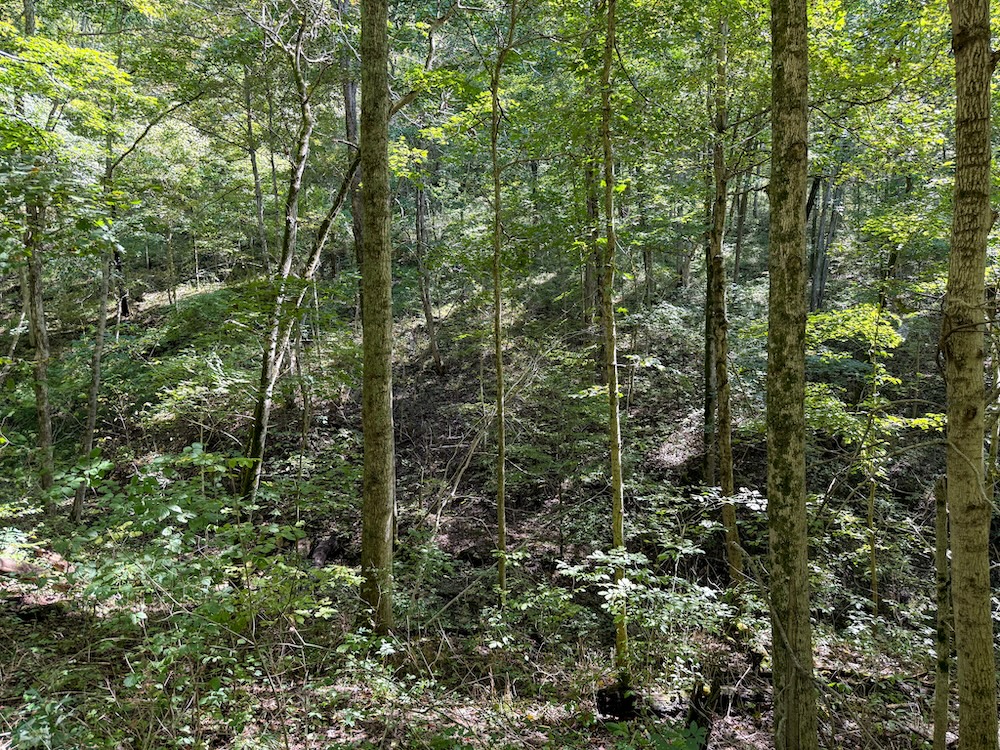 The topography varies across the property, featuring approximately 310 feet of elevation change from ridge to creek bottom. This variation creates multiple vantage points, scenic views, and natural travel corridors for wildlife. The combination of ridges, hollows, and creek frontage provides a diverse and engaging landscape for recreational users and land managers.
