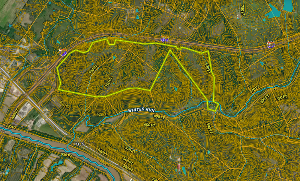 This +/- 240.68-acre property located at 1113 Whites Run Road in Carrollton, Kentucky, offers a large and versatile tract with an excellent mix of open ridge tops, wooded cover, and water features. Conveniently positioned just off Interstate 71, this farm provides easy access from Louisville, Cincinnati, and Lexington, while offering a private setting with substantial acreage and proven wildlife habitat.