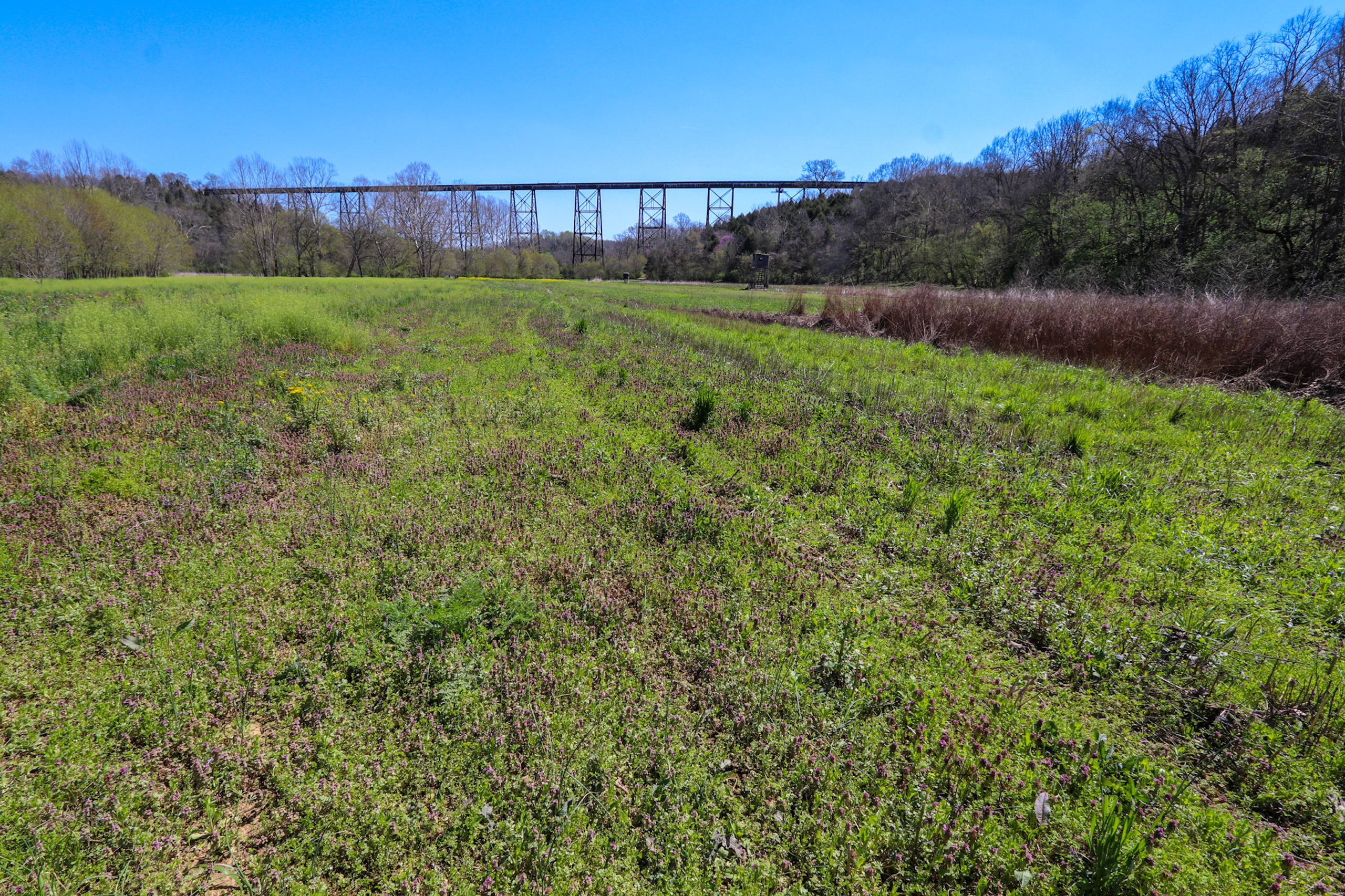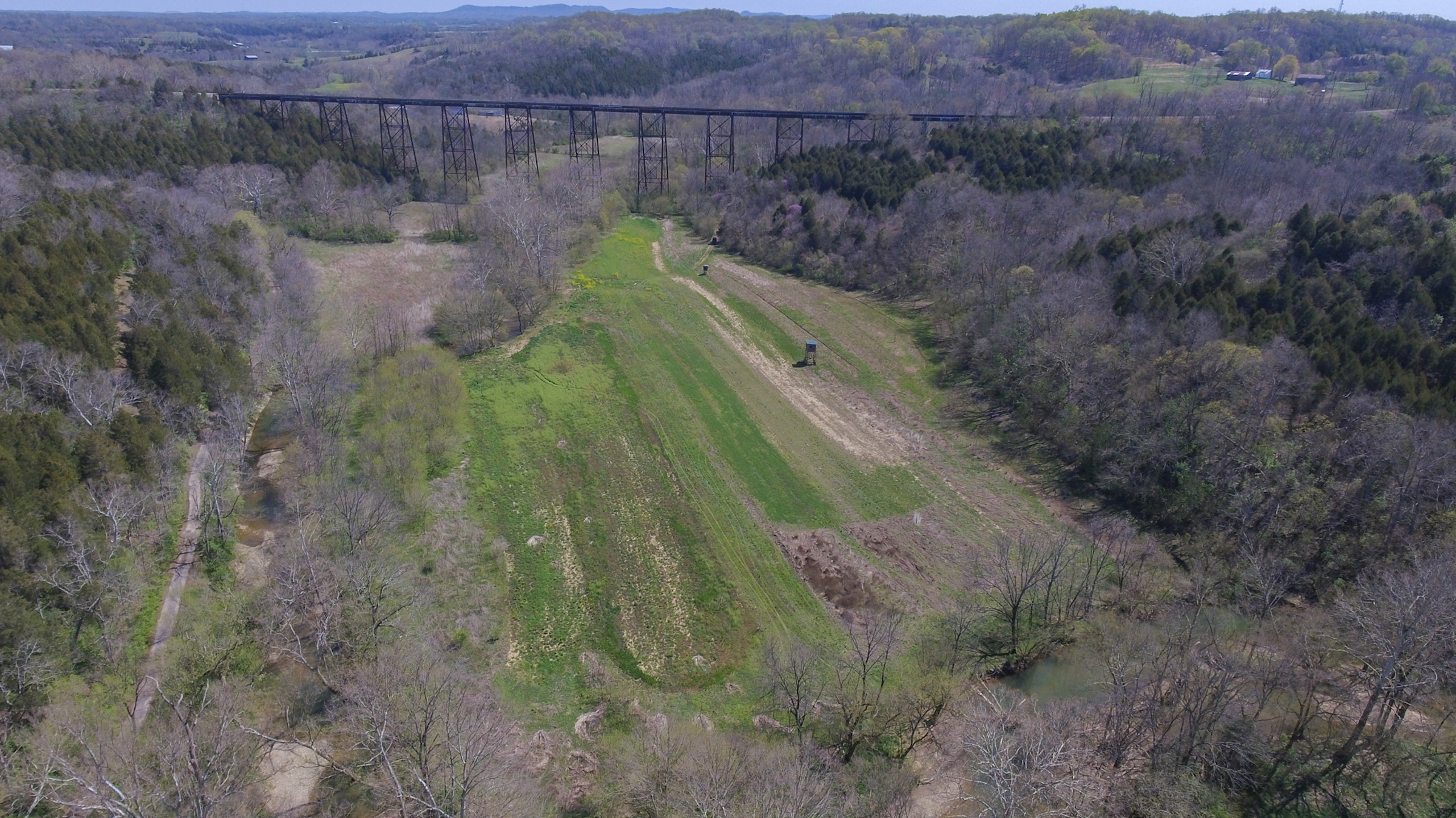 Welcome to country living at its finest on this gorgeous 75-acre property in Clark County, KY. Situated at the end of Midway Road, just minutes east of Winchester, is P.O. Box 1331. As you reach the end of the blacktop, experience the feeling of privacy and security that only end-of-the-road rural living can bring. This farm-style property boasts two tobacco barns, two ponds, fruit trees, and a nice stand of walnut trees, making it a perfect farm/country retreat for those who love nature, wildlife, and the outdoors. With tillable/pasture ground and harvestable timber, this property offers an excellent opportunity for those looking to engage in farming, homesteading, or virtually any forest-related activities. One very unique feature of this property is the towering railroad bridge, which adds to its charm and character. This property is also a tremendous trophy deer and turkey hunting property, with hunting blinds and food plots already in place. The property adjoins a 3,200-acre sanctuary of un-hunted land owned by Kentucky Utilities, allowing bucks the protection they need to reach full maturity and maximize their full antler potential. The property's north boundary features over 1/2 mile of beautiful, meandering Howard Creek stream frontage, providing liquid life to all resident wildlife species. The 3 BR/ 1 bath old farmhouse built in 1965 is a 1 1/2 story structure, completely remodeled throughout 2021. The kitchen features granite countertops with an island and a gas range for perfectly preparing those country dishes, while the bathroom has a double vanity, tub, and tile surround. Furthermore, the large walkout concrete block basement provides additional living space and storage as needed. This property offers that perfect blend of farm, hunting, and country retreat feeling, making it an ideal investment for those looking to escape the hustle and bustle of city life and embrace the serenity of rural living. This property offers an outstanding recent history of ABnB success for those looking to make an ROI, or utilize it as a second home. Don't miss out on this opportunity to own a unique piece of country living at its finest between Winchester and the infamous Red River Gorge.