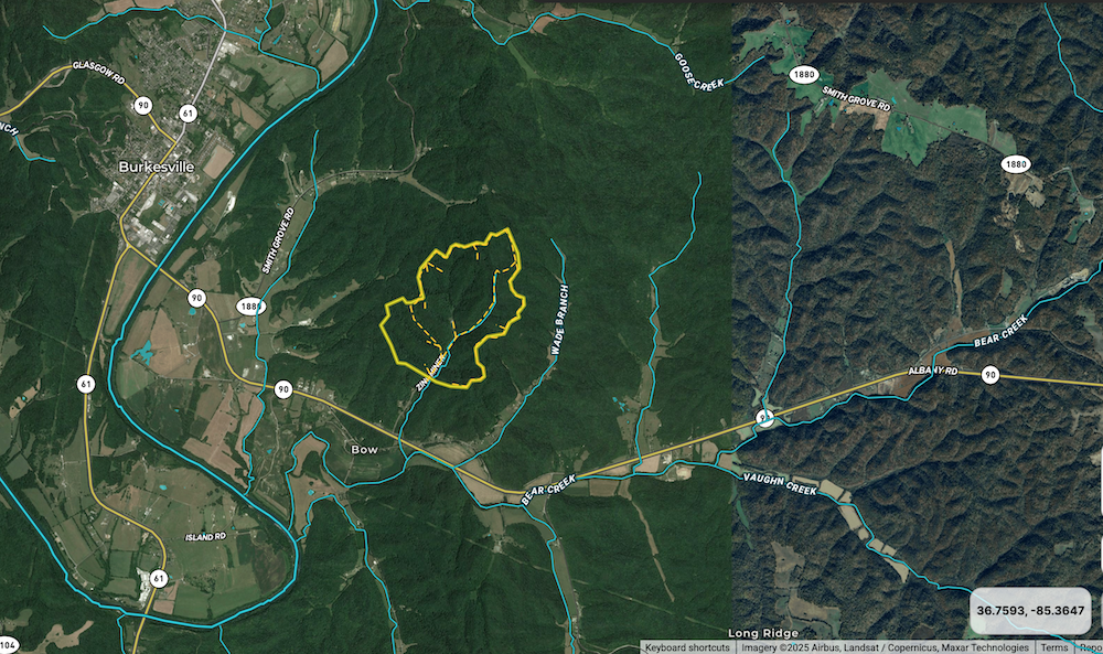 The nearest town, Burkesville, lies less than 5 minutes from the property and provides grocery stores, restaurants, fuel, and other basic services. Albany is approximately 25 minutes away, and Glasgow can be reached in about 50 minutes. Bowling Green is roughly 1 hour and 30 minutes from the tract for larger regional access.